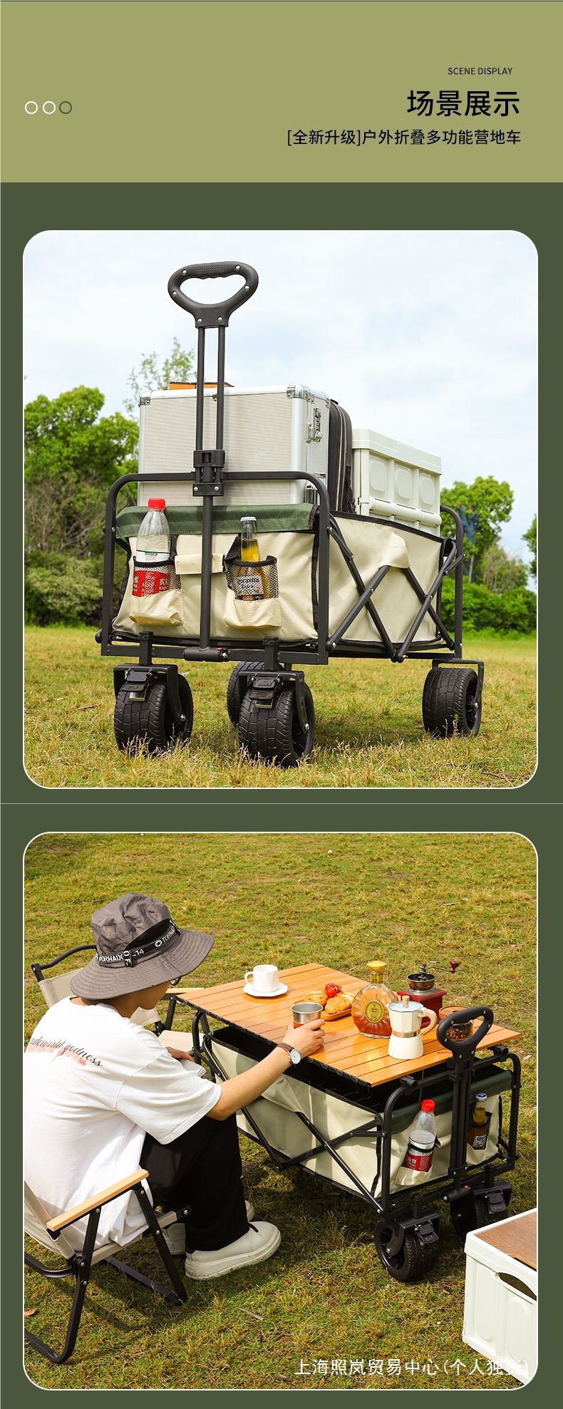• 캠퍼밴 + 접이식 테이블 - 대형 트레일러 탱크 휠(카키색)