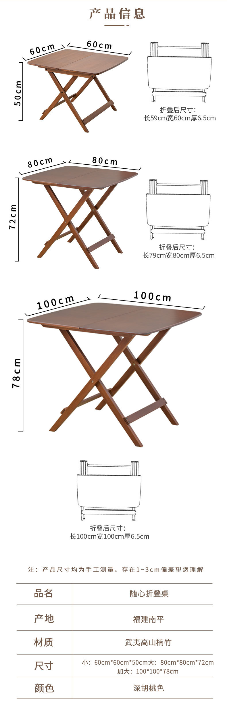 • 접이식 테이블 100*100 (월넛색상)