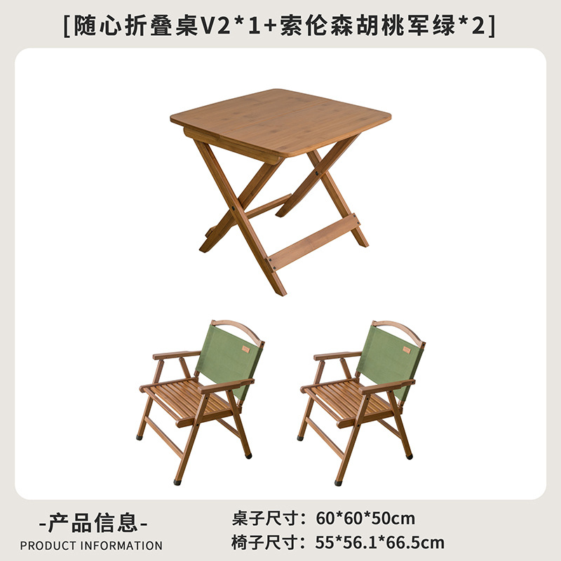 • (60세이지 접이식 테이블 + 솔렌슨 접이식 의자 - 밀리터리 그린*2) 월넛 컬러