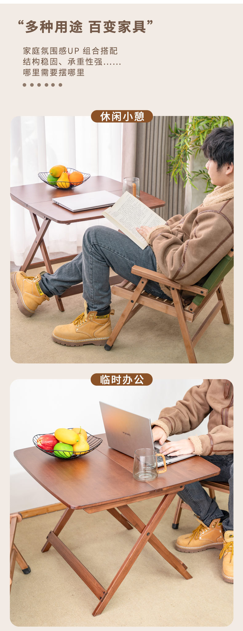 • (수신 접이식 테이블 60+치차오 접이식 의자*2) 월넛 컬러