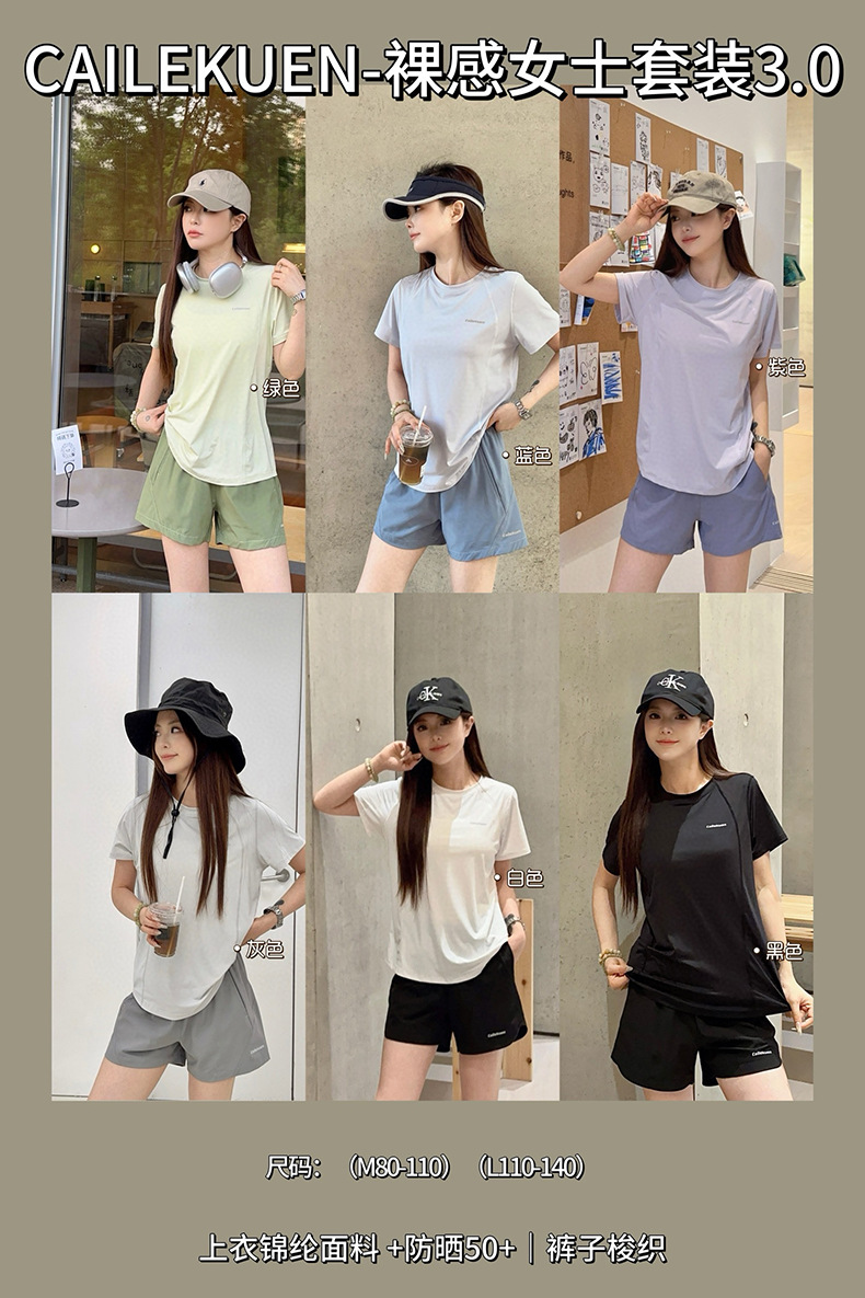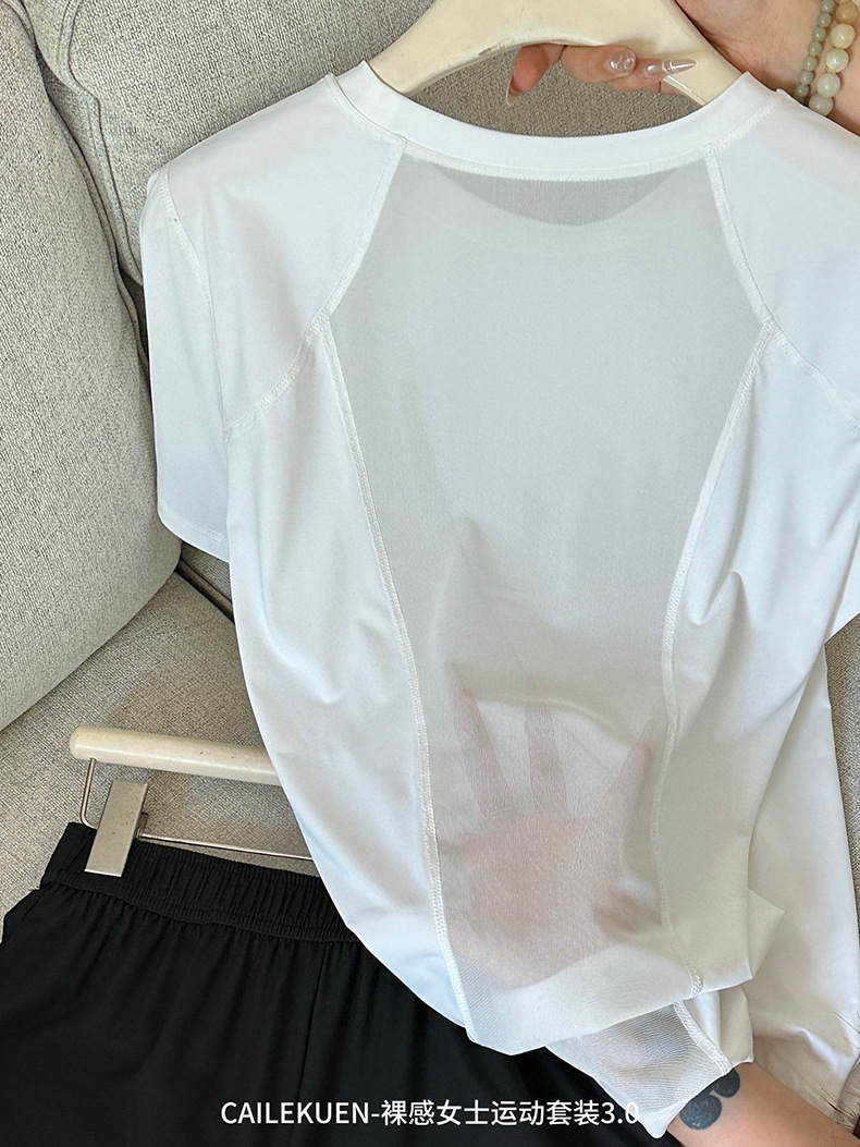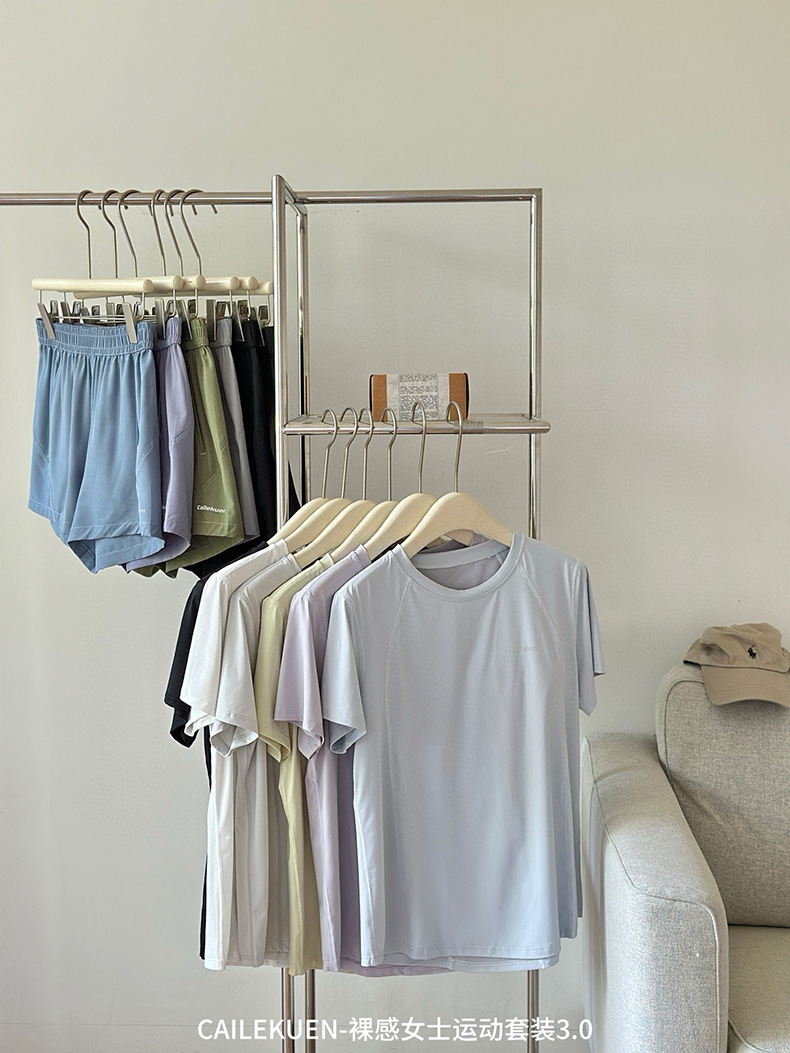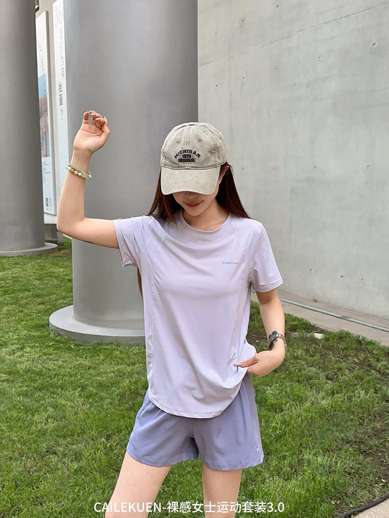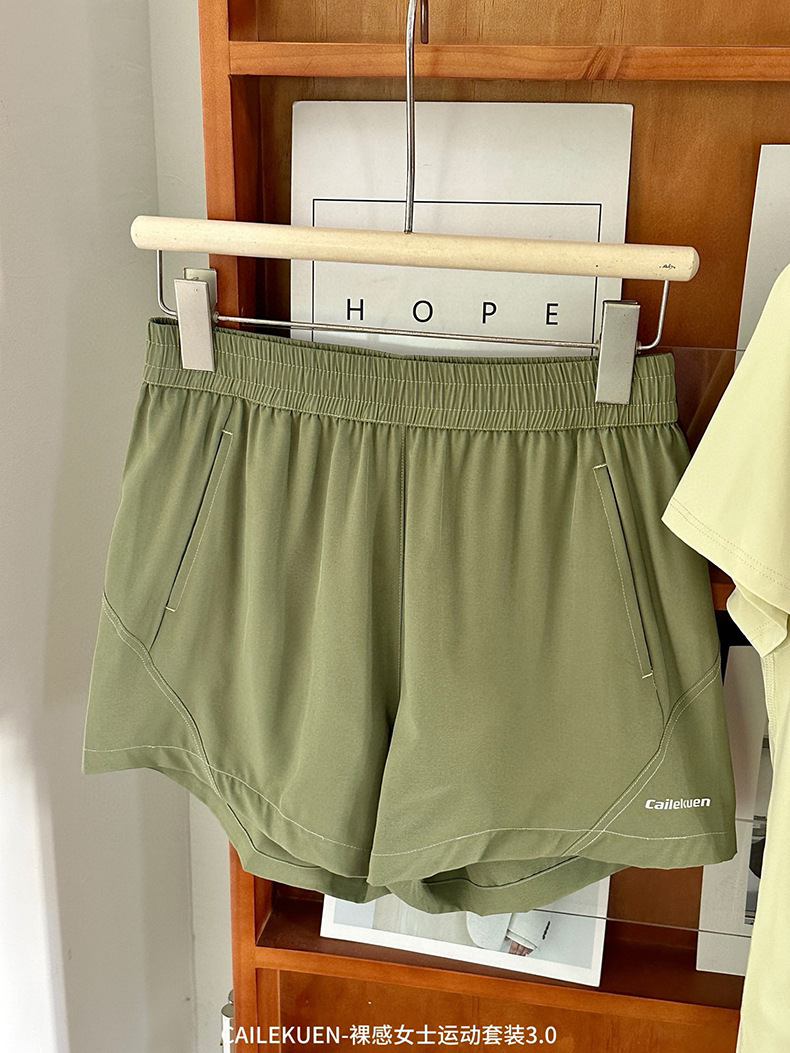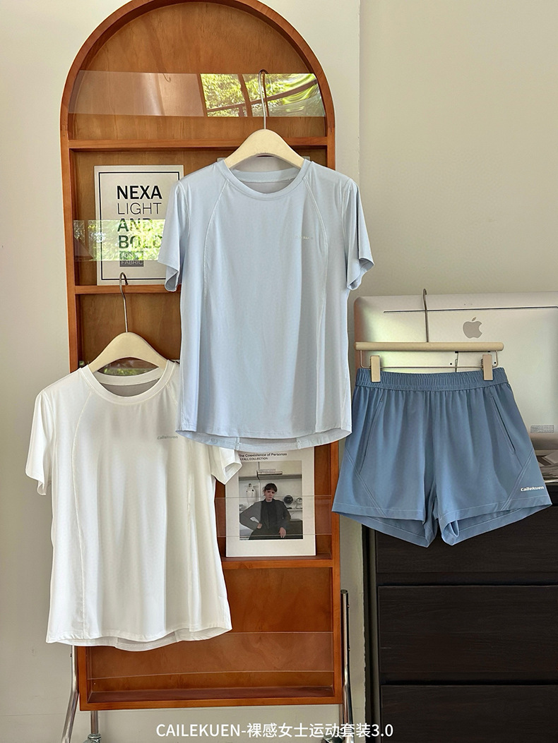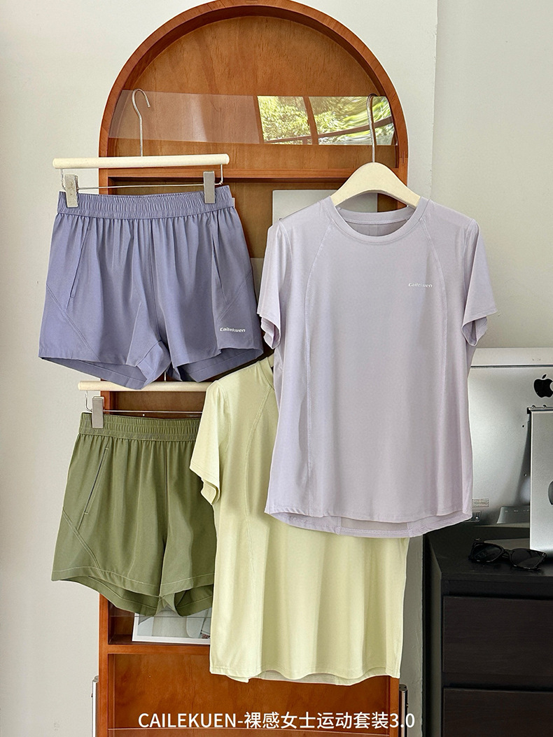 여름 누드 여성 스포츠 슈트 3.0 속건성, 가볍고 통기성이 뛰어나며 심플한 라운드 넥 얇은 피트니스 러닝 반바지스토어 가기