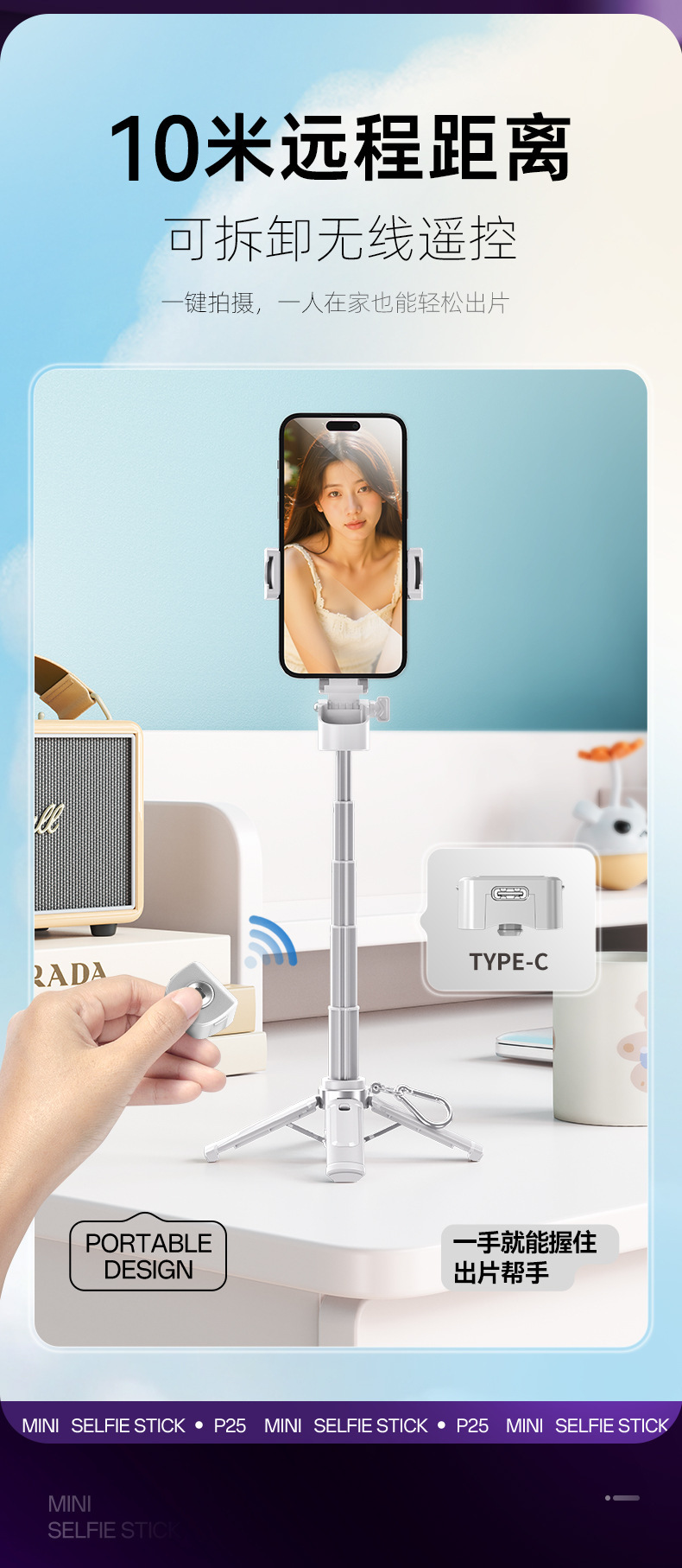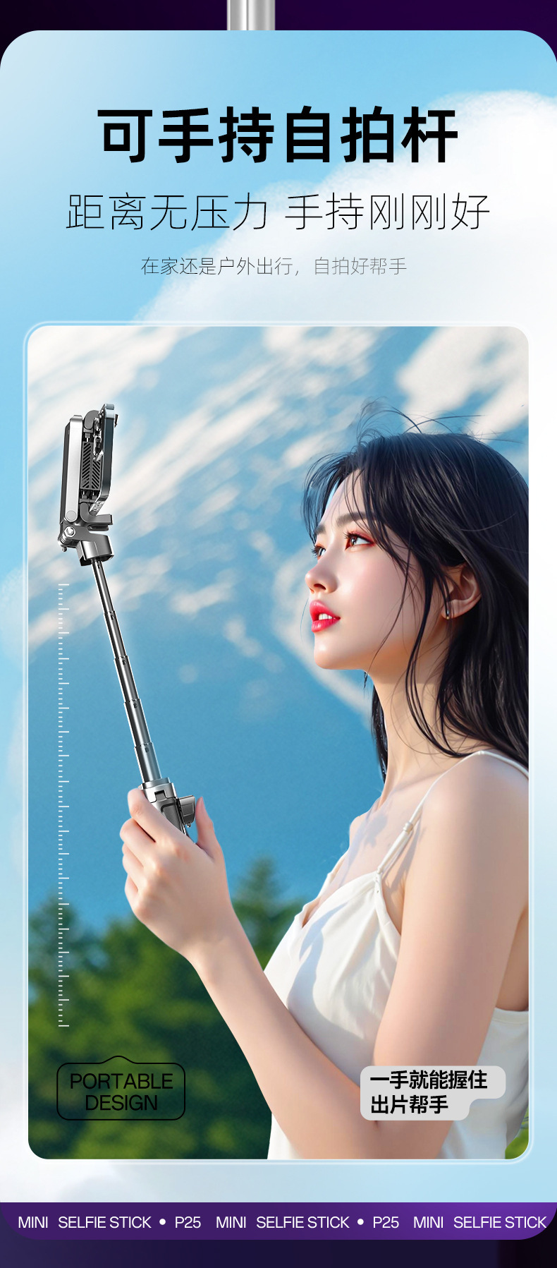 국경 간 새로운 P25 소형 휴대용 블루투스 셀카 스틱 야외 여행 미니 개폐식 손떨림 방지 사진 유물스토어 가기