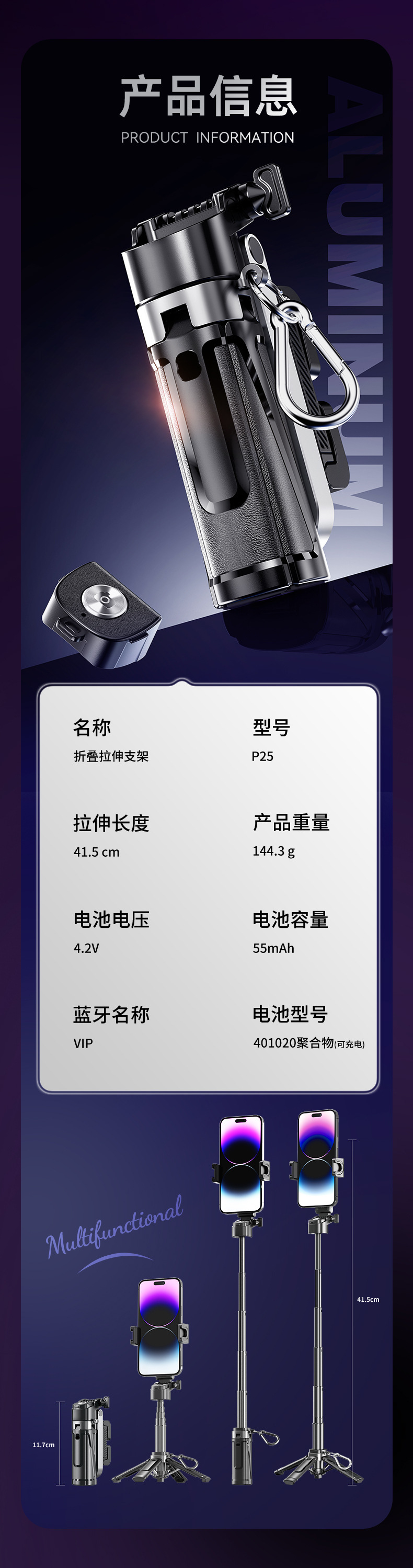 국경 간 새로운 P25 소형 휴대용 블루투스 셀카 스틱 야외 여행 미니 개폐식 손떨림 방지 사진 유물