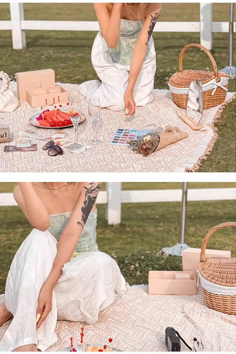 피크닉 매트 프랑스 문학 인 민족 스타일 야외 캠핑 방수 및 방습 매트 두꺼운 피크닉 천 인터넷 연예인 사진스토어 가기