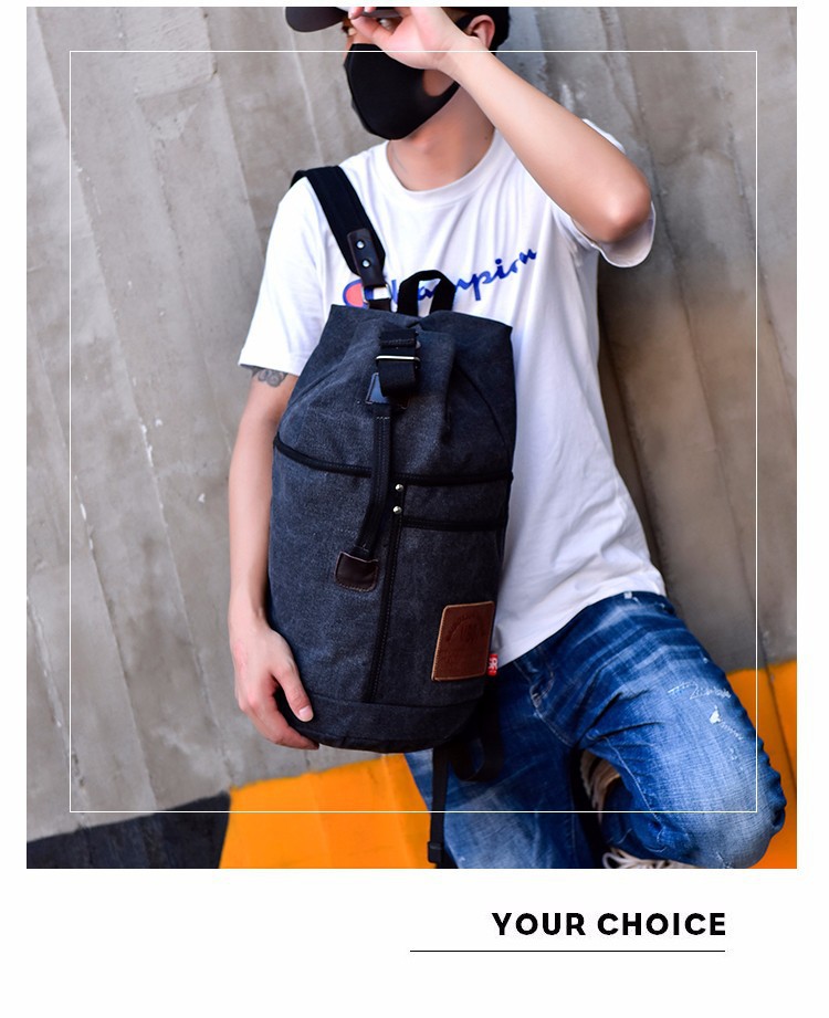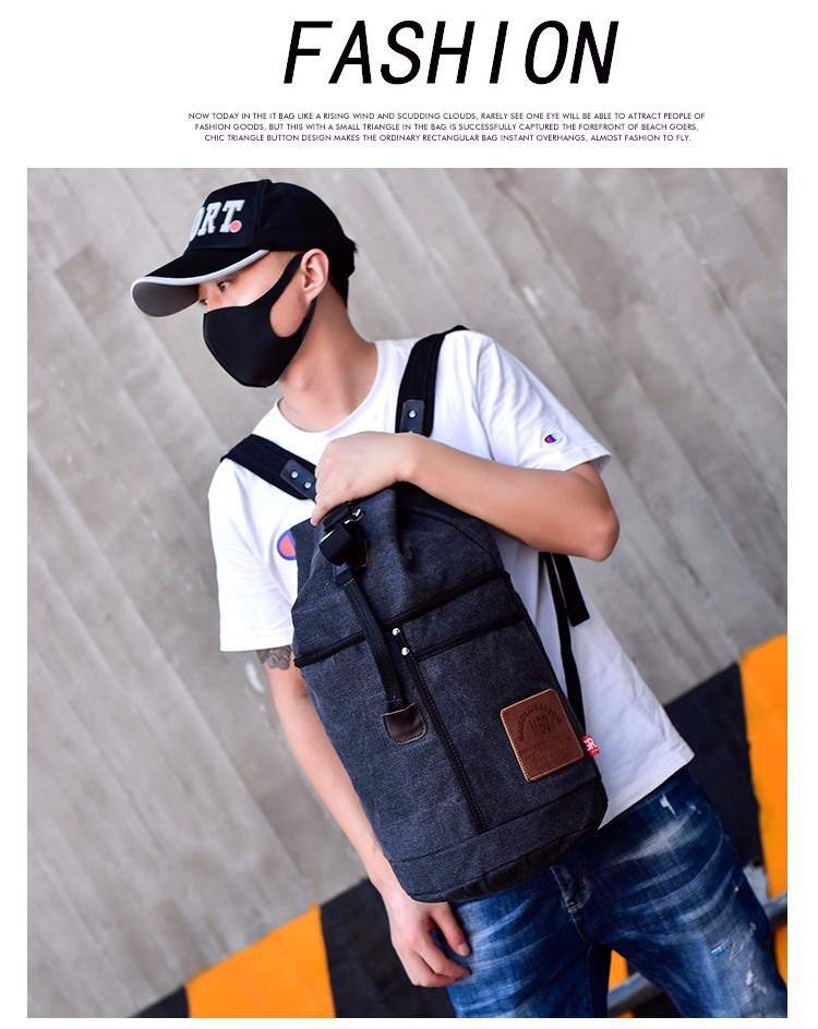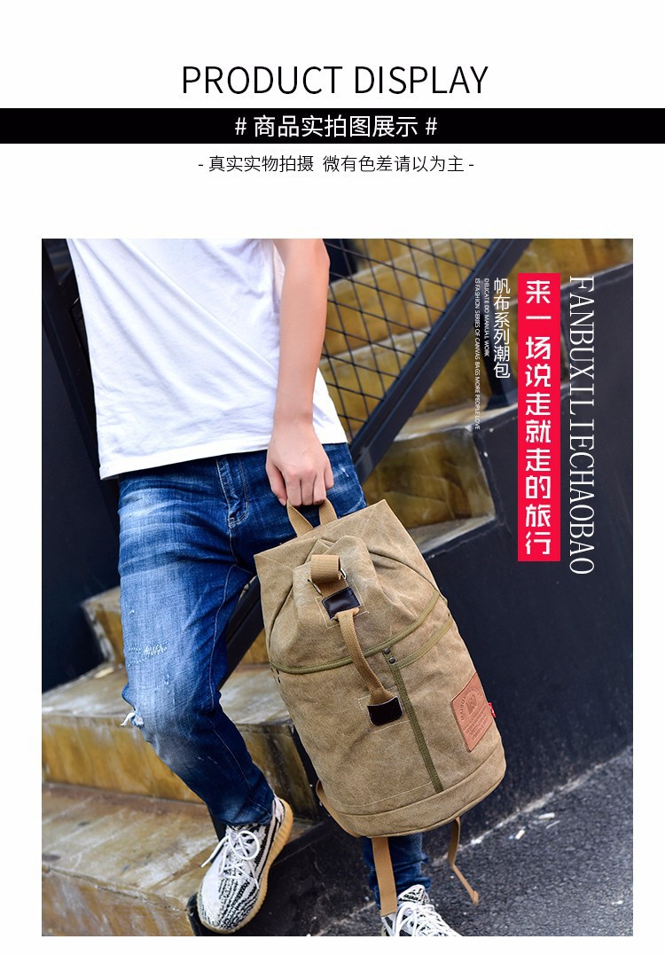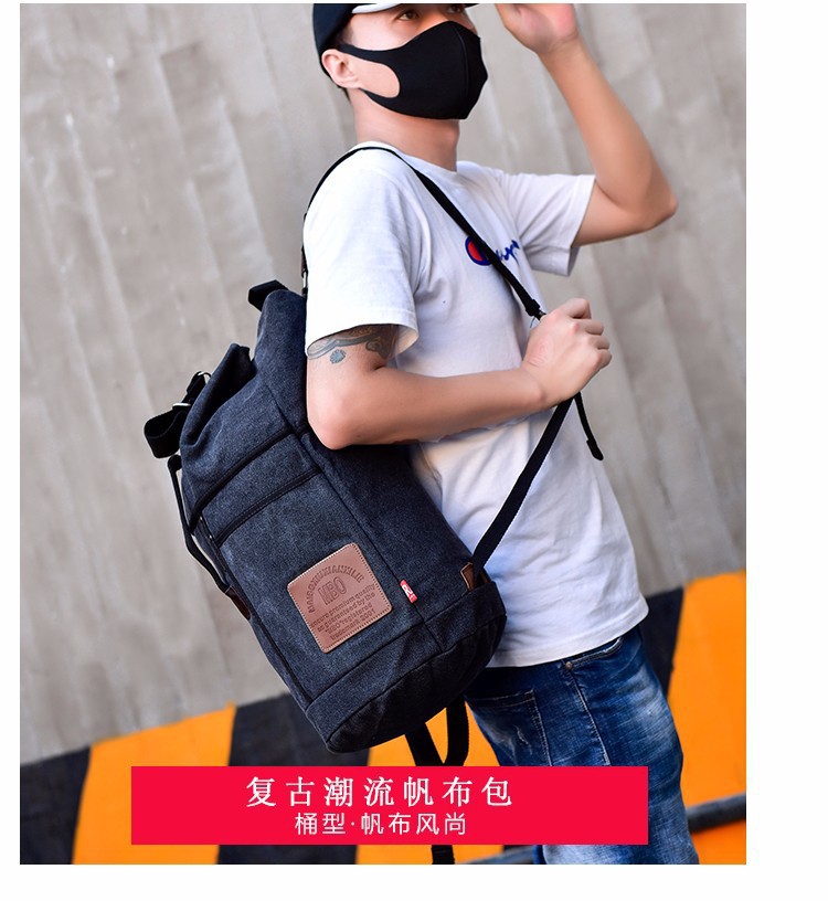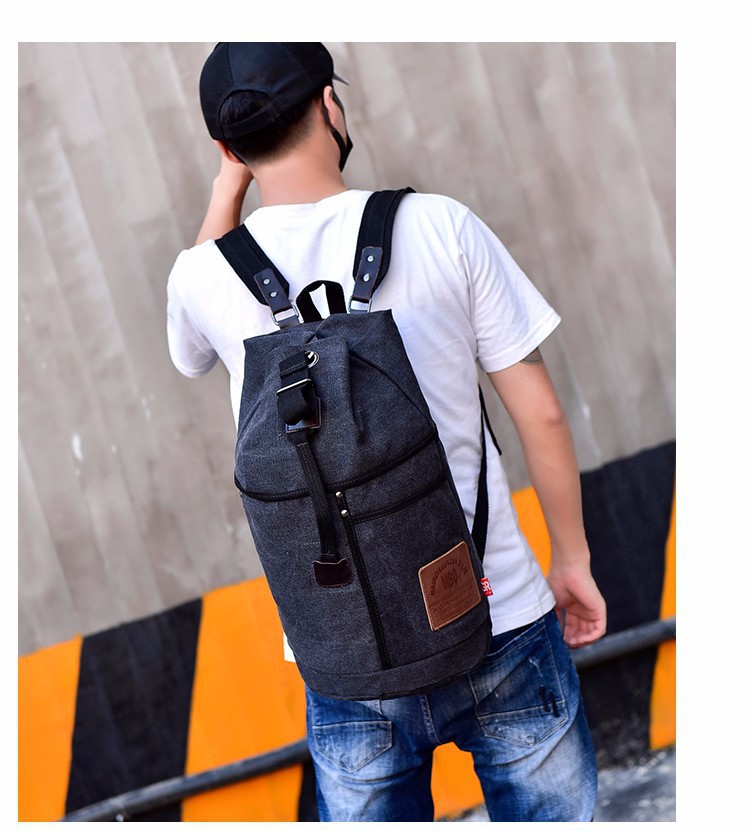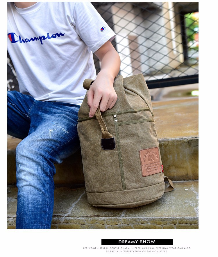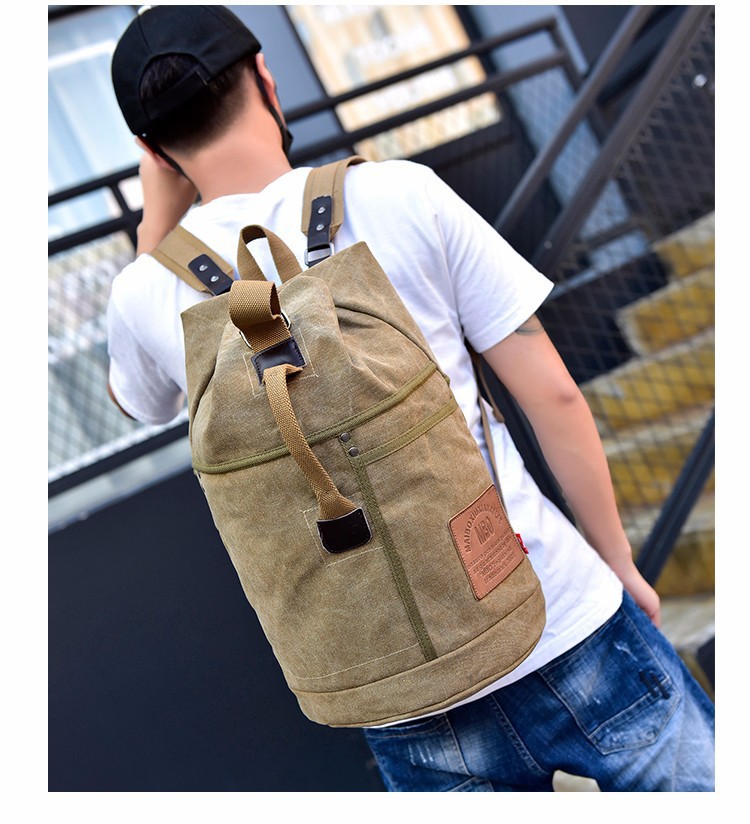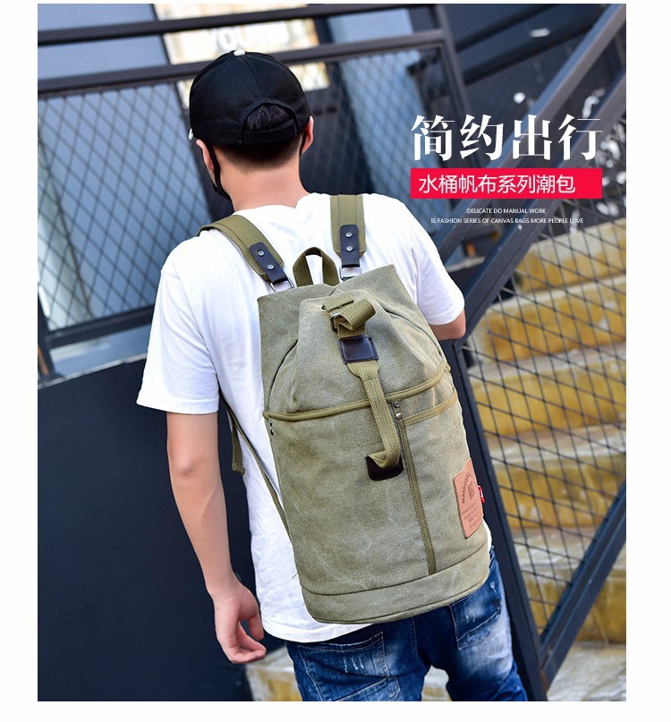 대용량 여행 남자 가방 실린더 배낭 패션 다기능 배낭 캔버스 크로스 바디 백 배럴 핸드백
