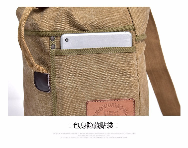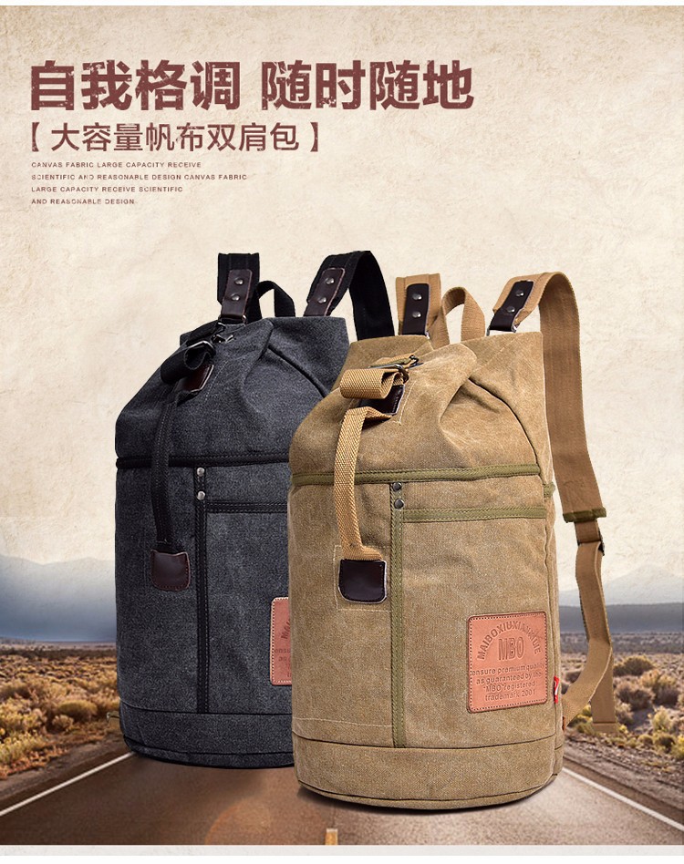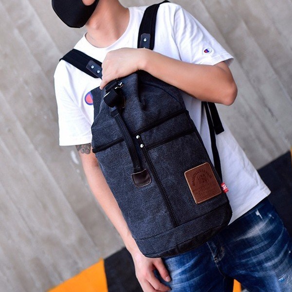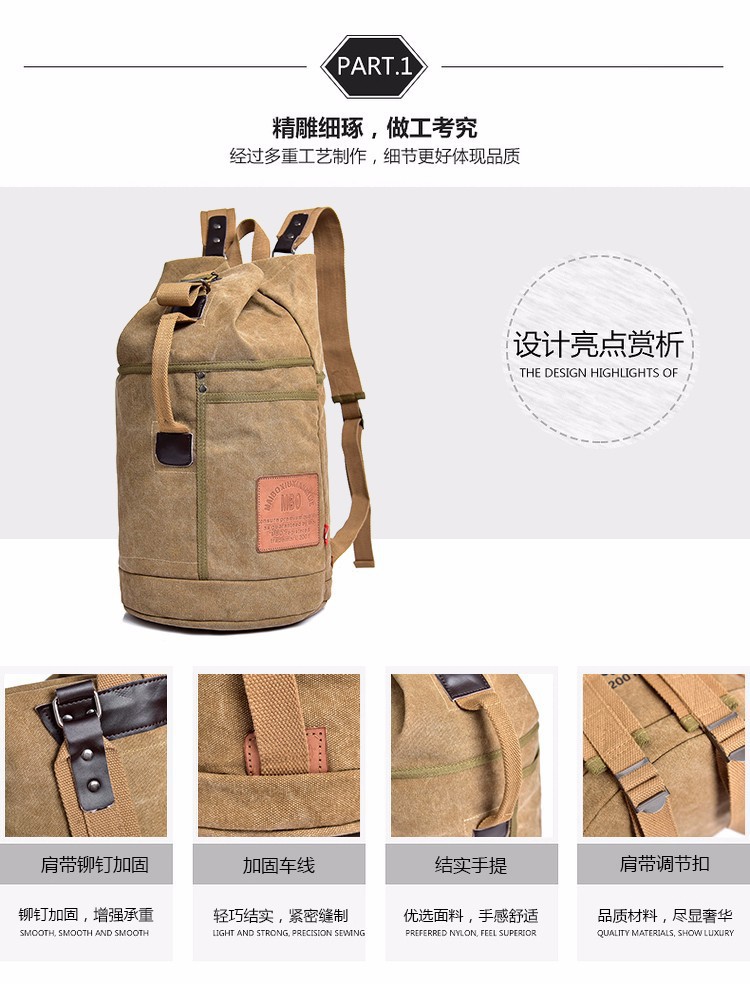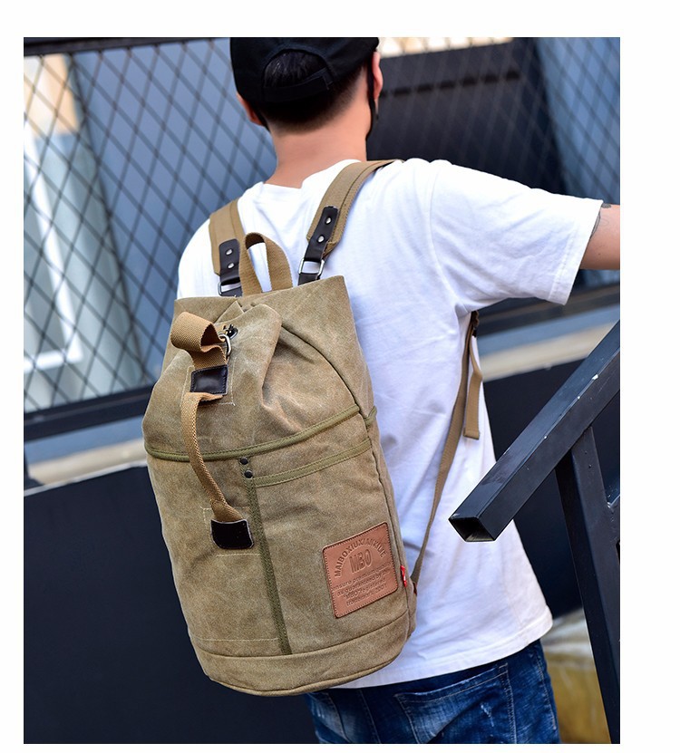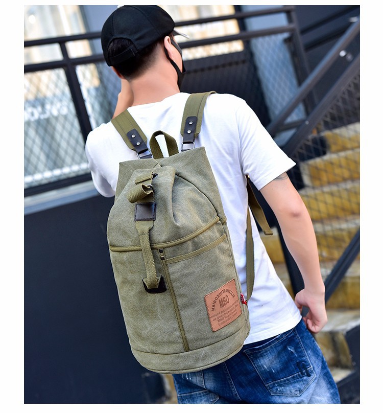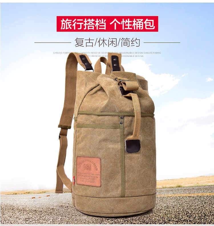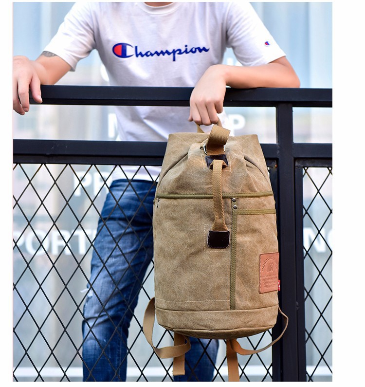 대용량 여행 남자 가방 실린더 배낭 패션 다기능 배낭 캔버스 크로스 바디 백 배럴 핸드백