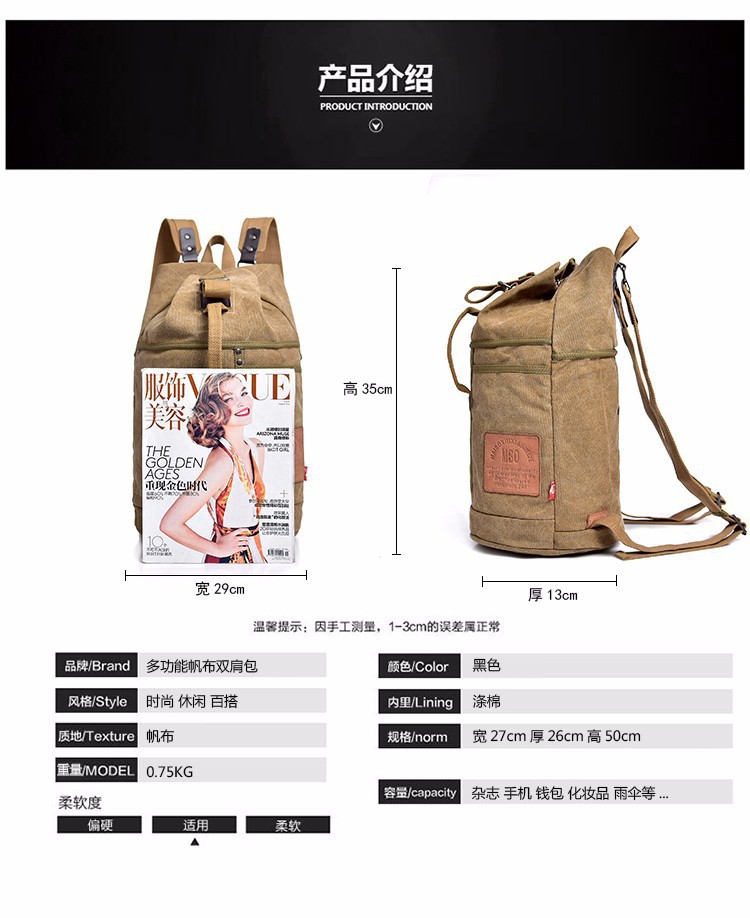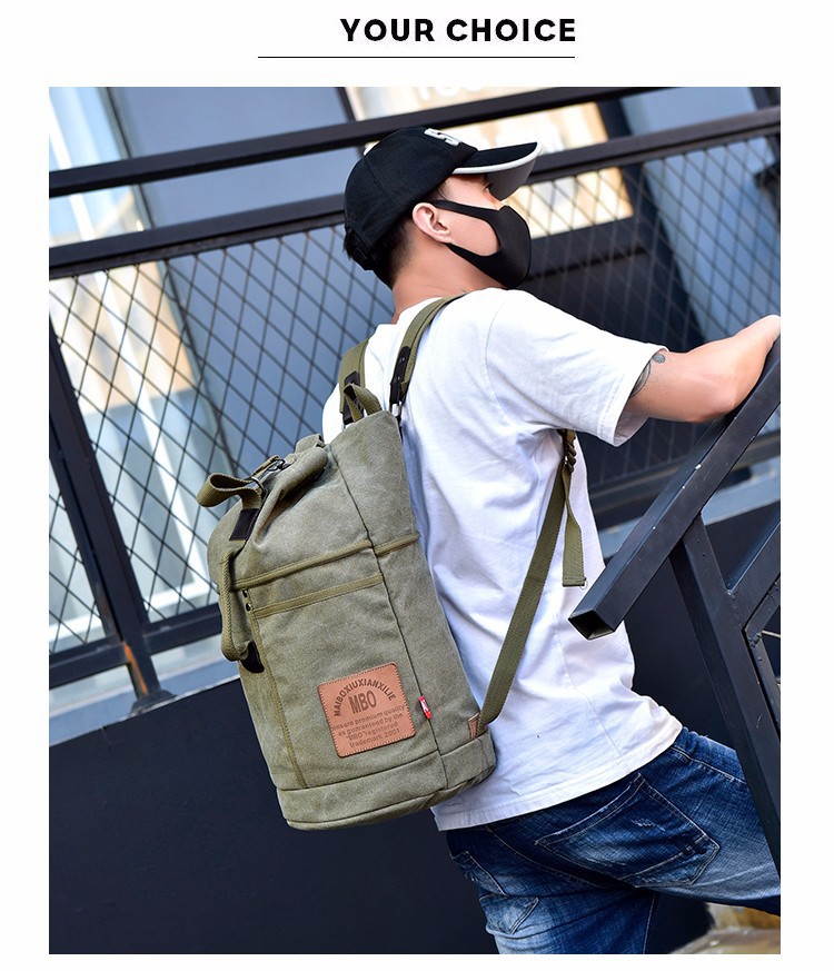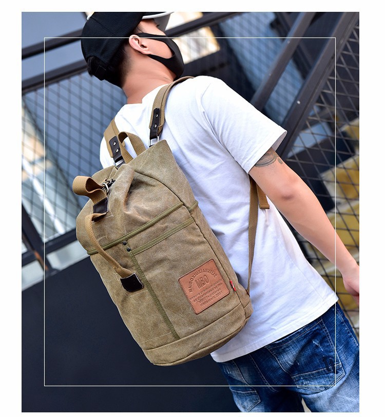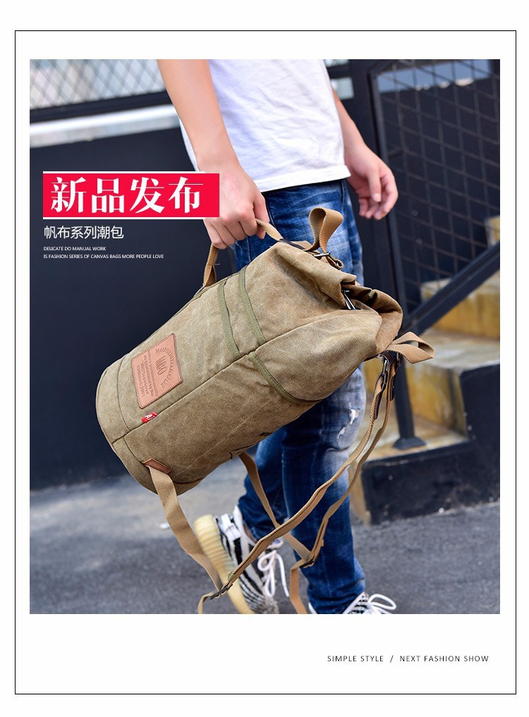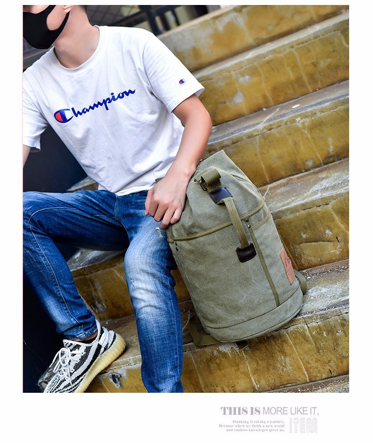 대용량 여행 남자 가방 실린더 배낭 패션 다기능 배낭 캔버스 크로스 바디 백 배럴 핸드백스토어 가기