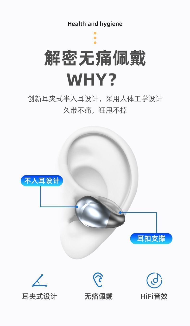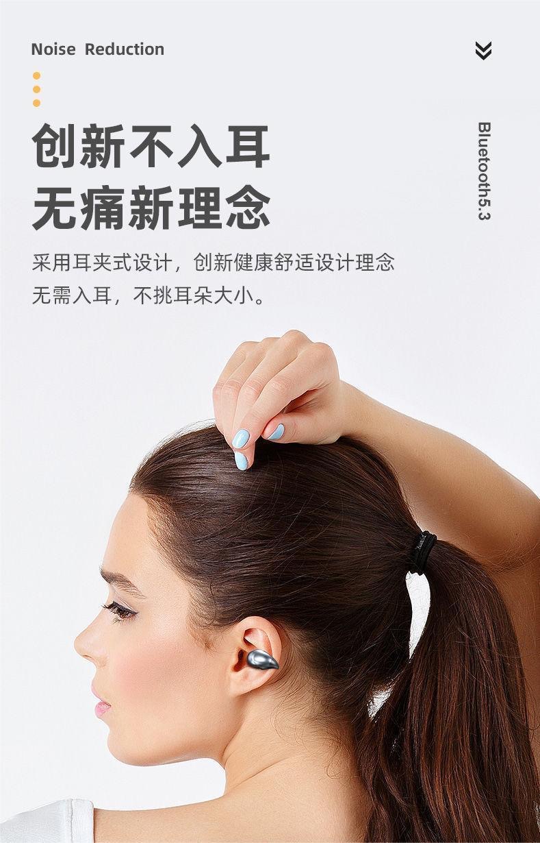 신혼부부를 위한 독점 골전도 컨셉 블루투스 헤드셋, 남녀공용 무선 이어클립 스포츠 귀걸이형 이어폰