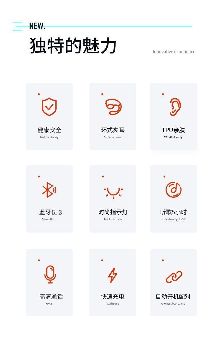신혼부부를 위한 독점 골전도 컨셉 블루투스 헤드셋, 남녀공용 무선 이어클립 스포츠 귀걸이형 이어폰스토어 가기