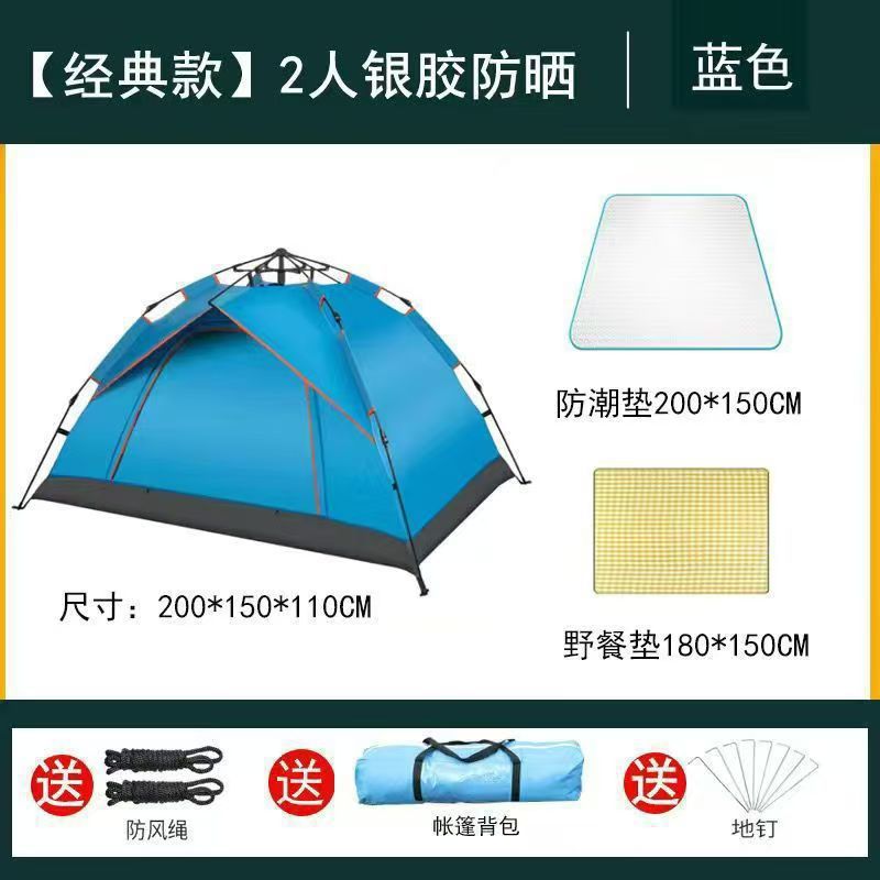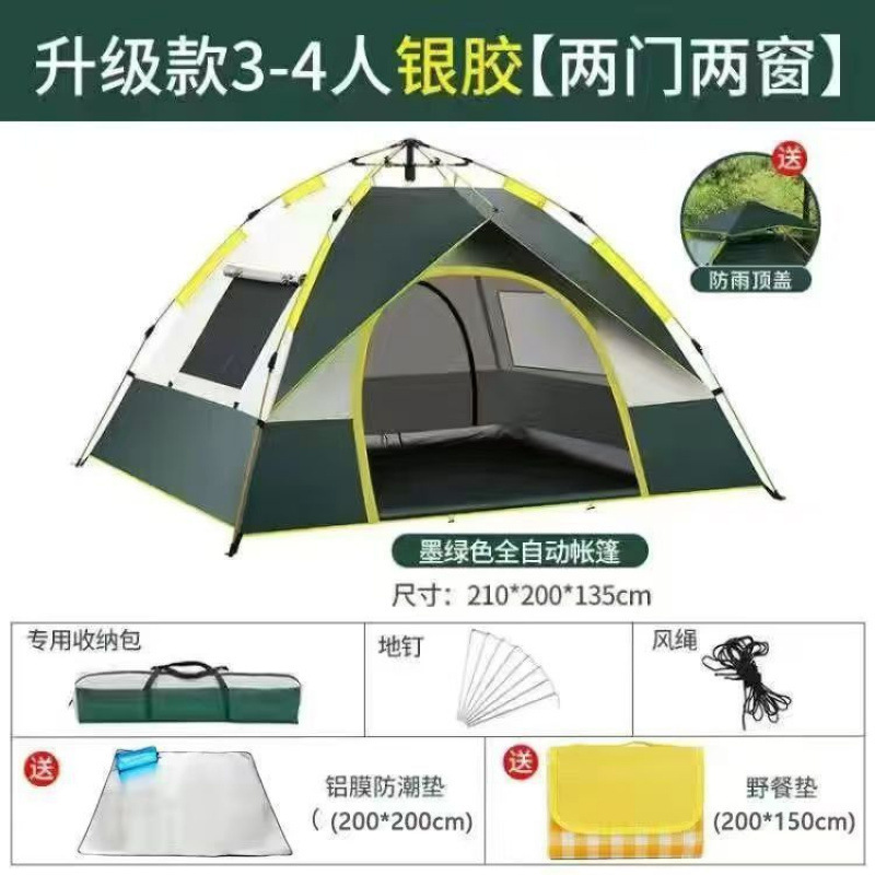 텐트 야외 접이식 휴대용 야외 캠핑 장비 캠핑 밤새도록 두꺼워진 완전 자동 원클릭 개폐 전체 세트