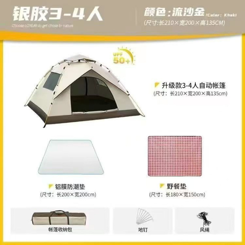 텐트 야외 접이식 휴대용 야외 캠핑 장비 캠핑 밤새도록 두꺼워진 완전 자동 원클릭 개폐 전체 세트스토어 가기