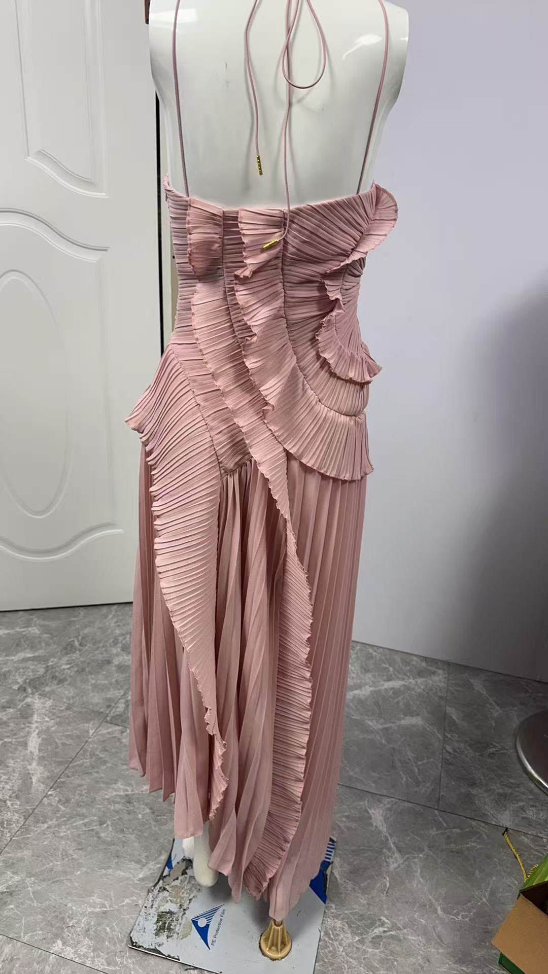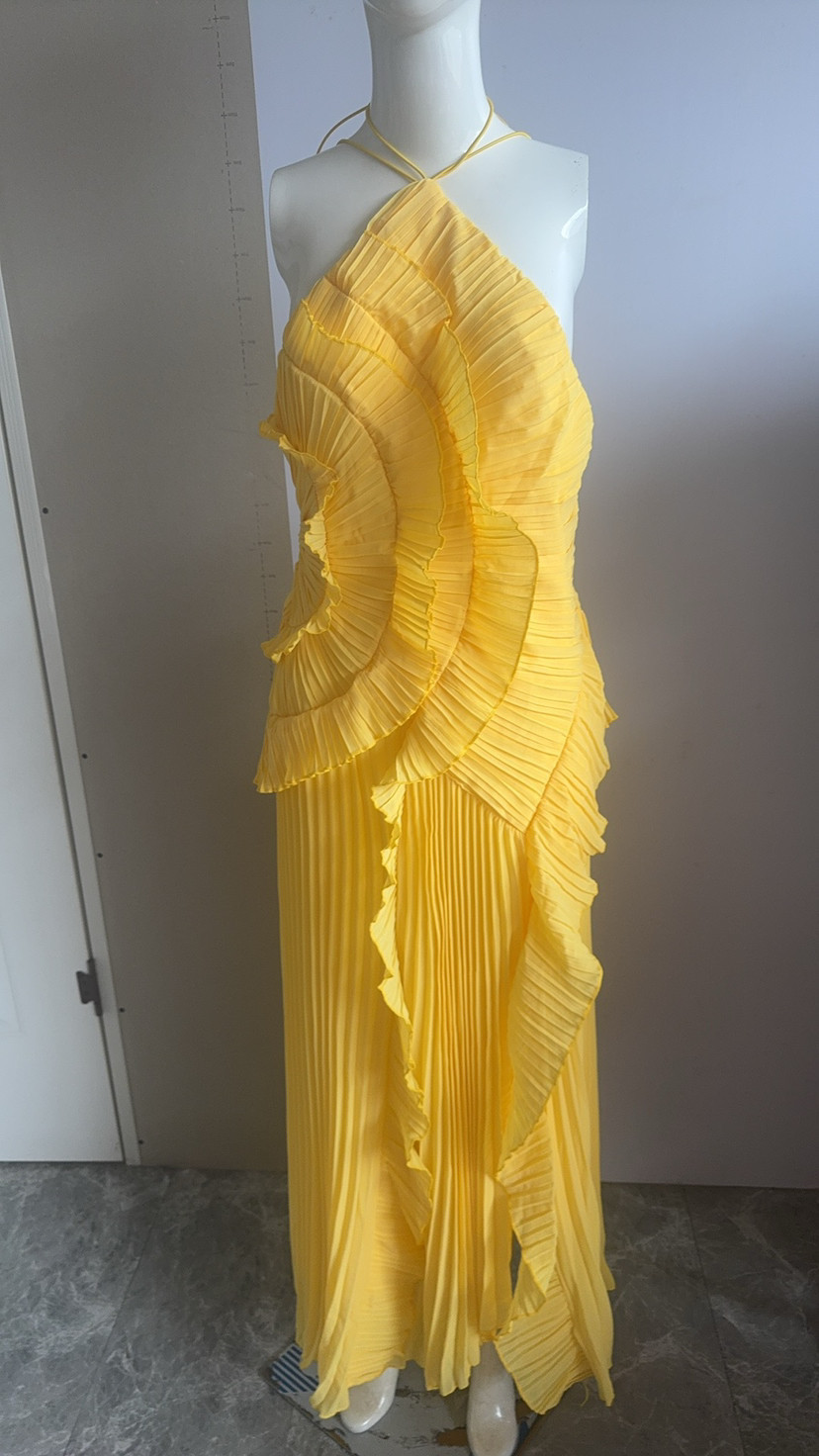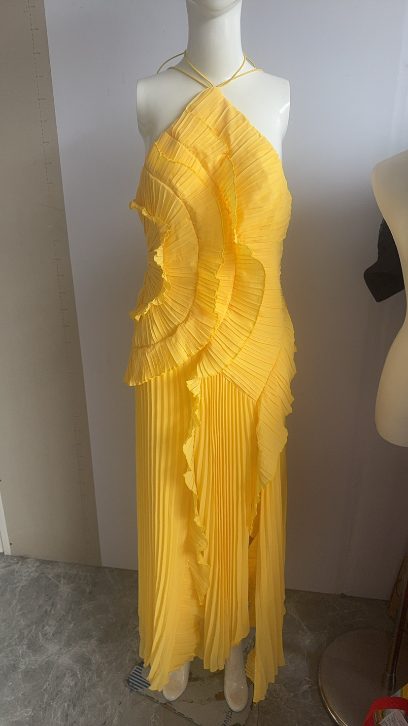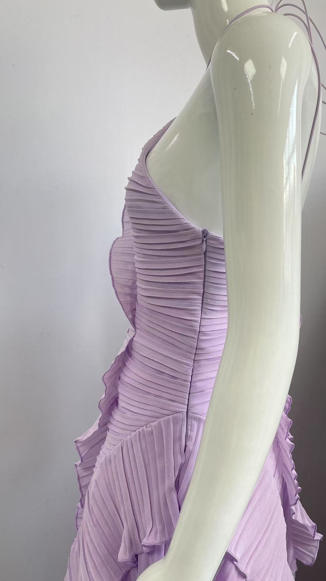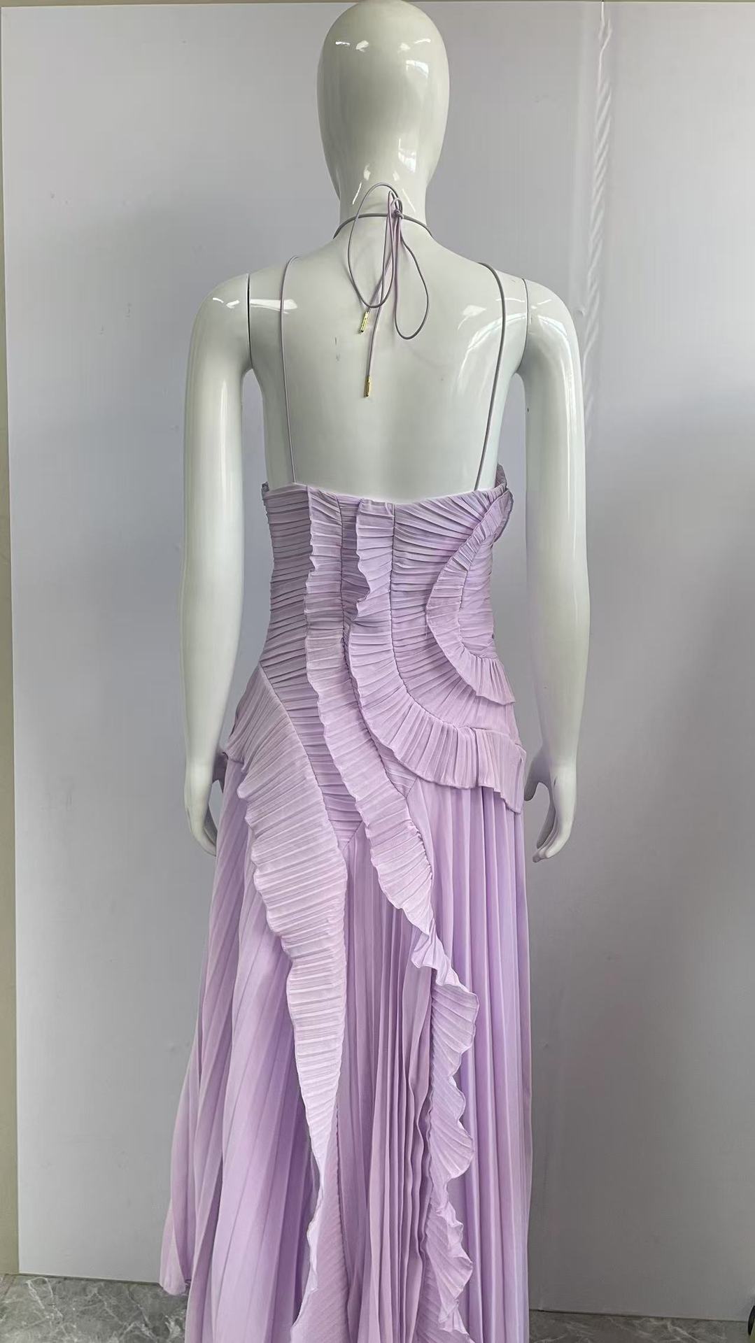여성용 고급 쉬폰 드레스, 러플 주름 디자인, 슬리밍 중간 길이 스커트, 유럽 및 미국 패션스토어 가기