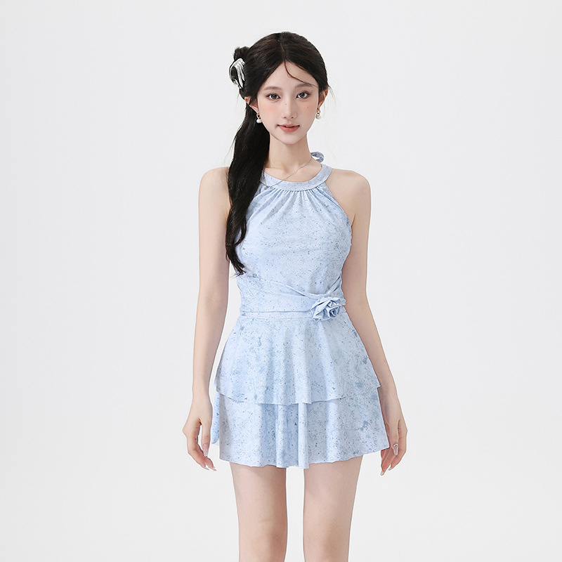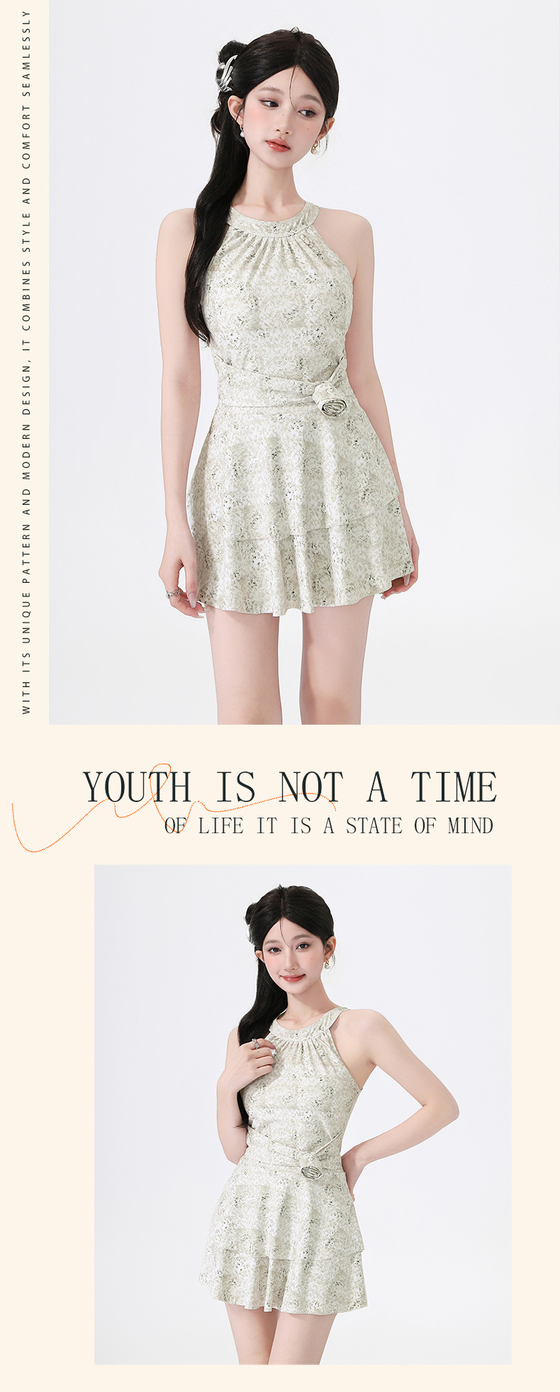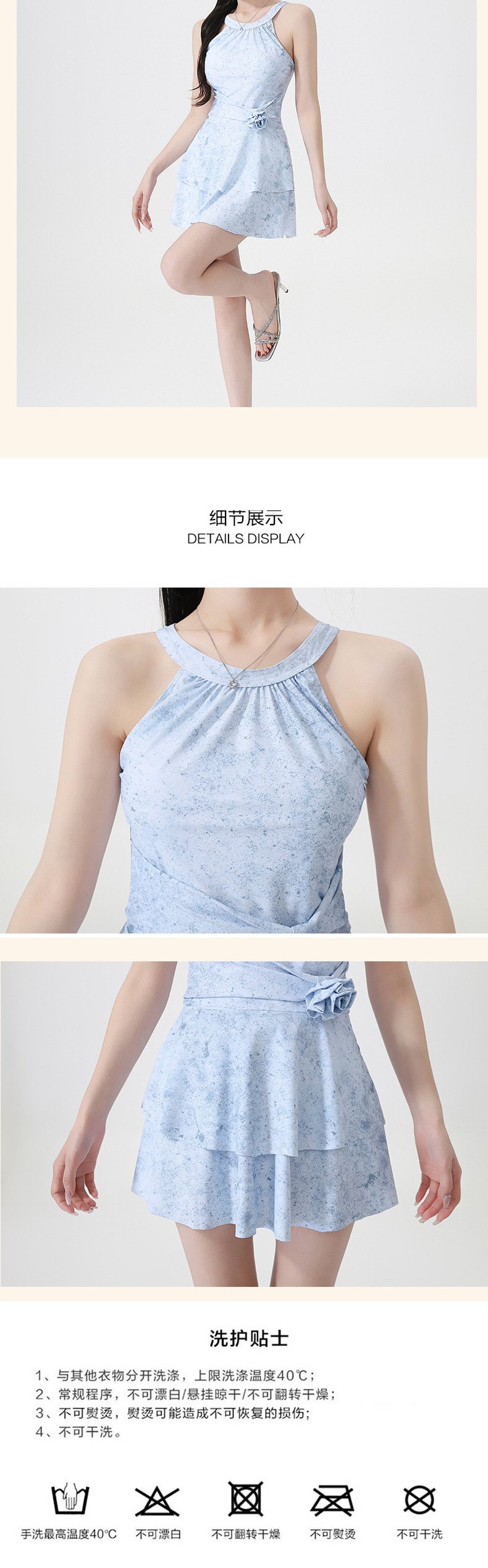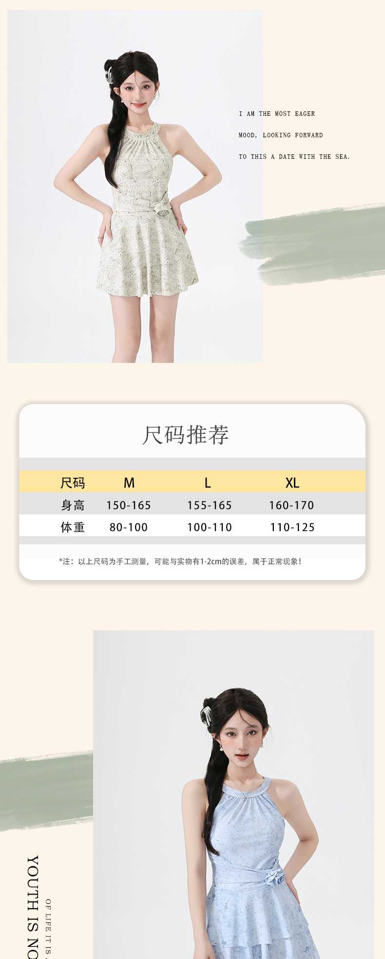2025 핫걸 짧은 치마 여름 허리 슬림핏 비치 홀터넥 민소매 레트로 원피스 수영복 여성 스포츠 스타일 꽃무늬