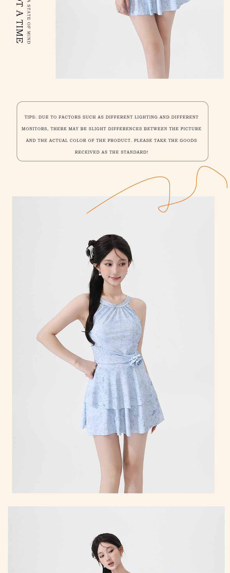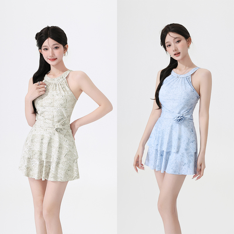 2025 핫걸 짧은 치마 여름 허리 슬림핏 비치 홀터넥 민소매 레트로 원피스 수영복 여성 스포츠 스타일 꽃무늬스토어 가기