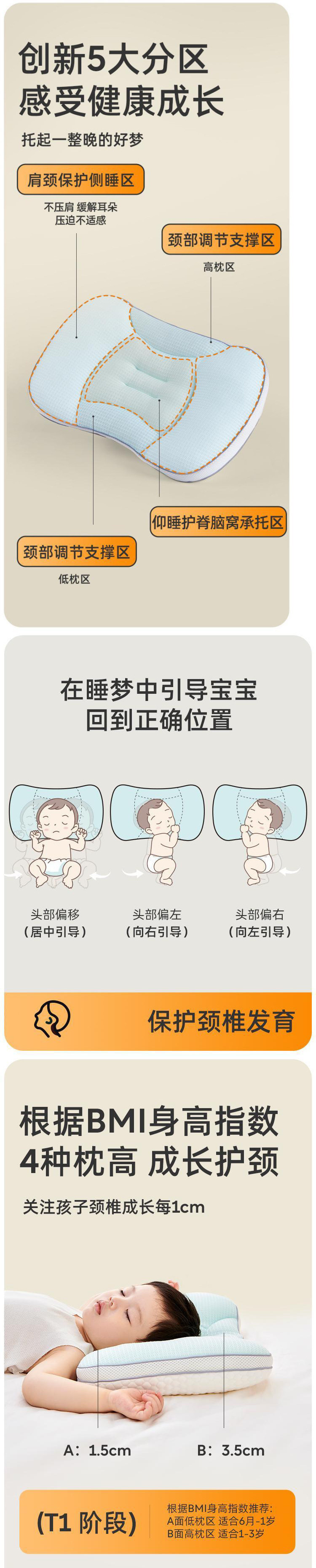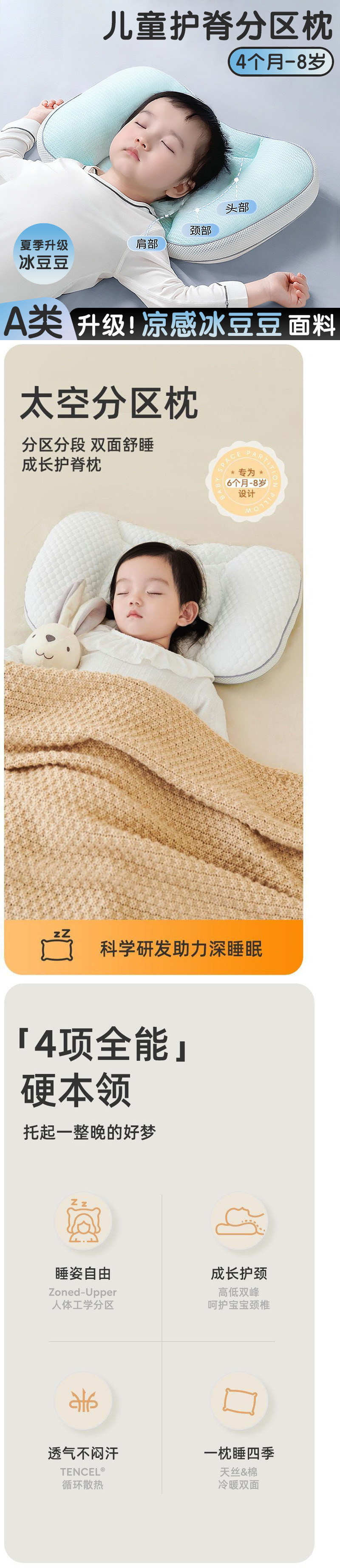 어린이베개, 공간분할목베개, 유아베개, 6개월, 3~8세, 여름철 척추보호구
