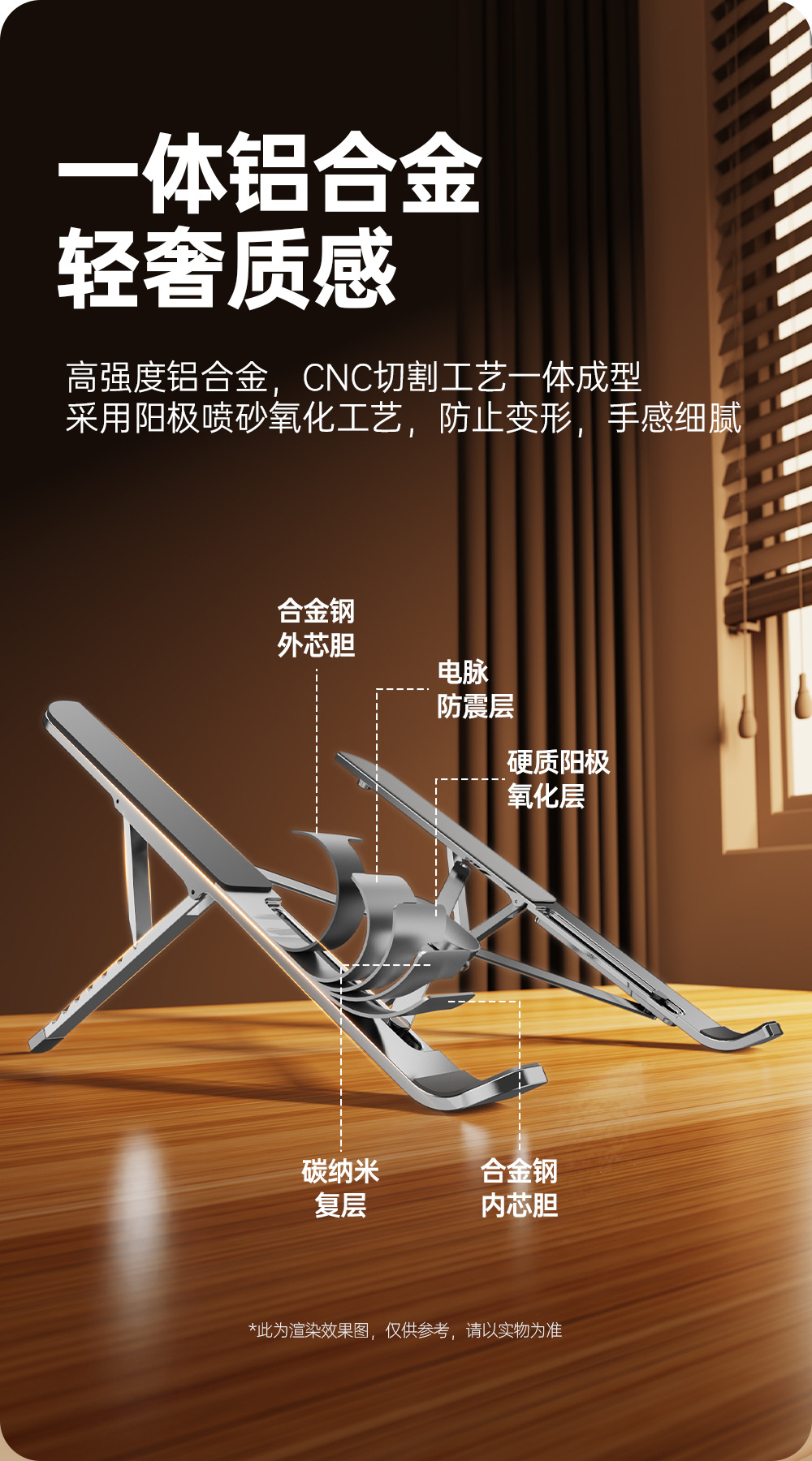 휴대 전화 태블릿 노트북 스탠드 접이식 휴대용 금속 범용 알루미늄 합금 데스크탑 높이 냉각 지원 스탠드스토어 가기