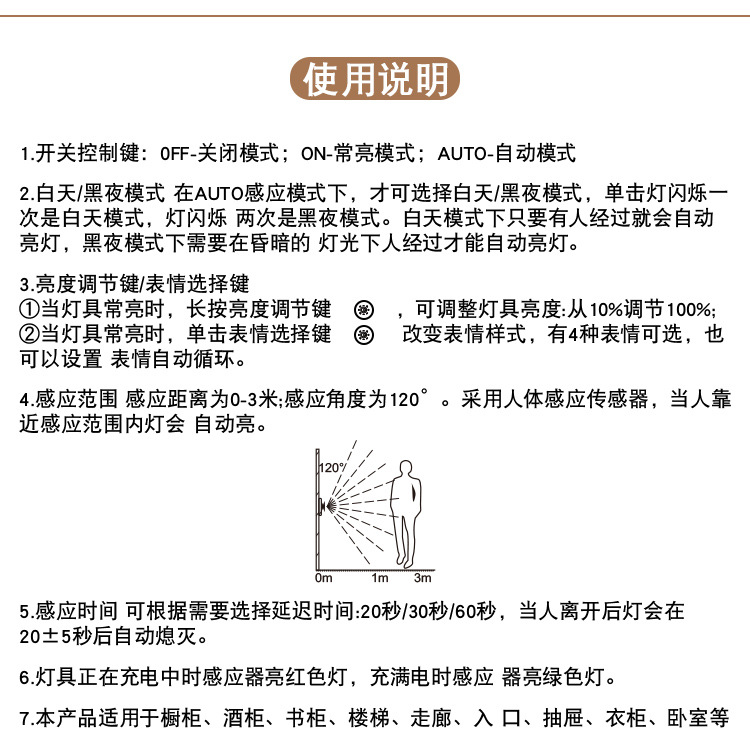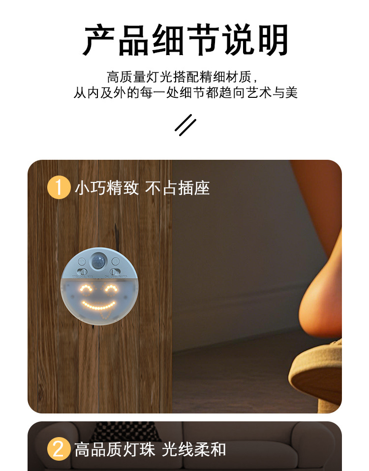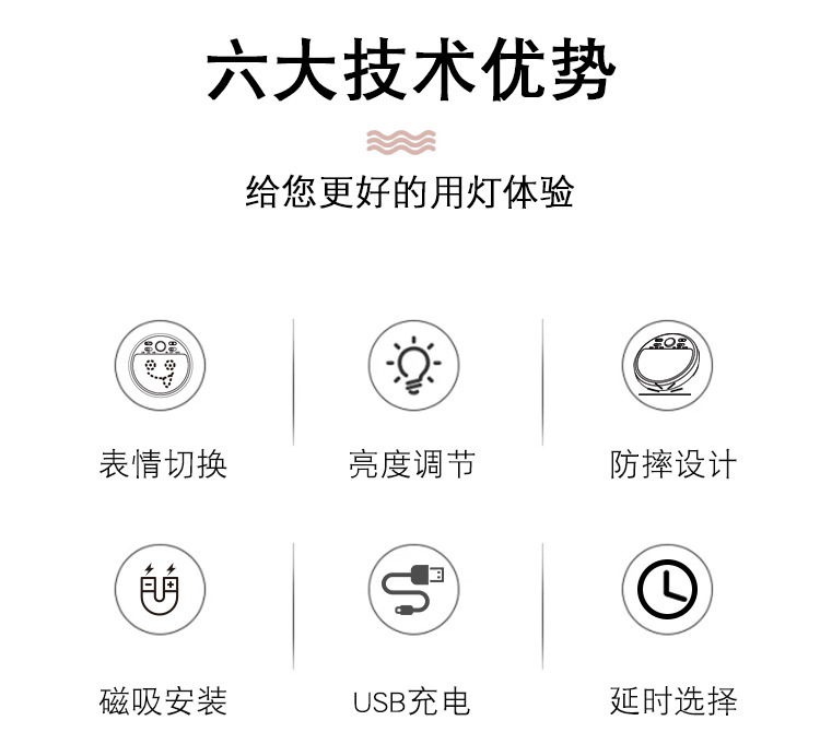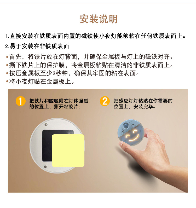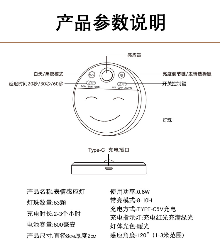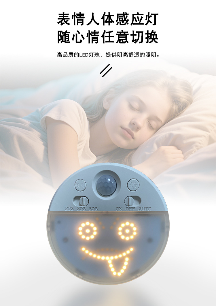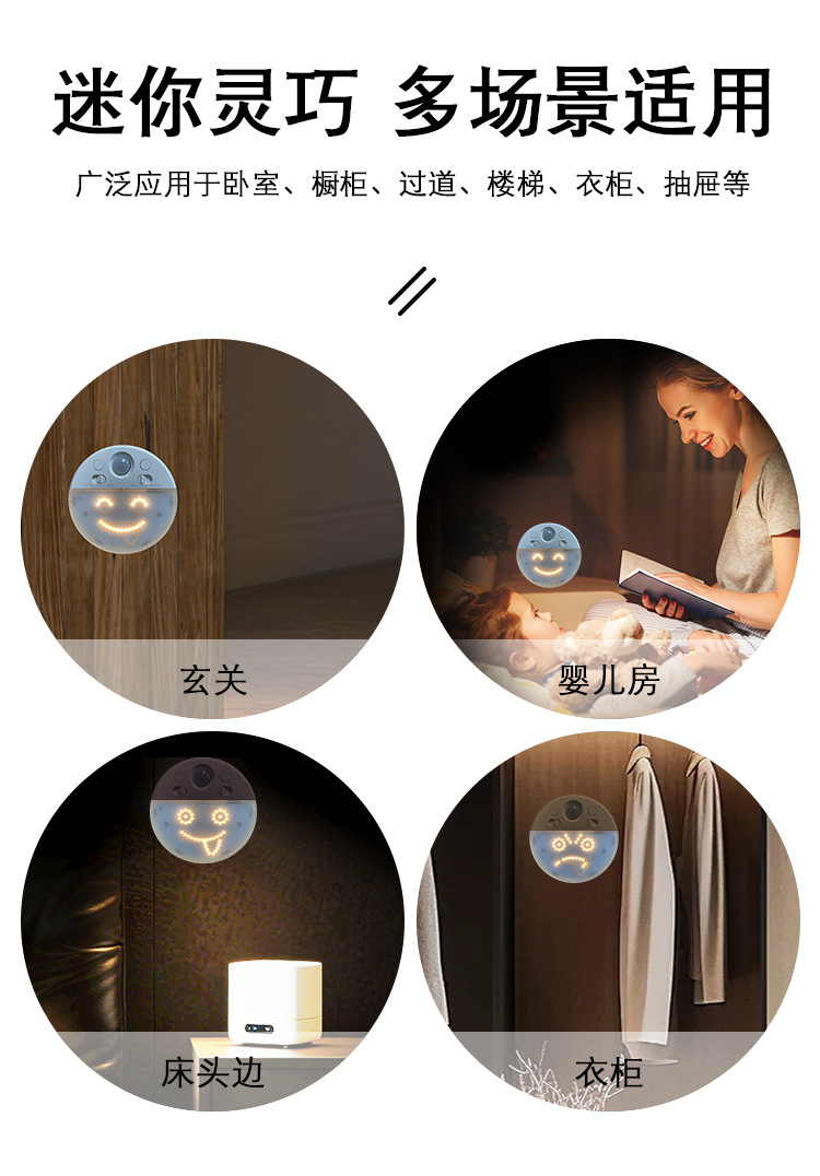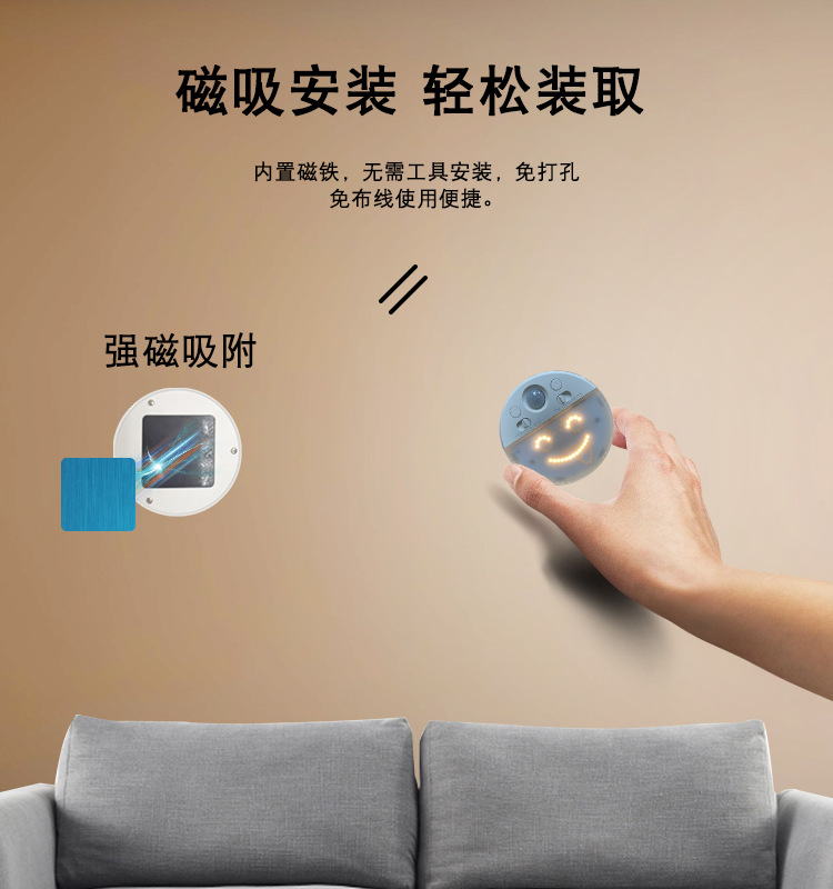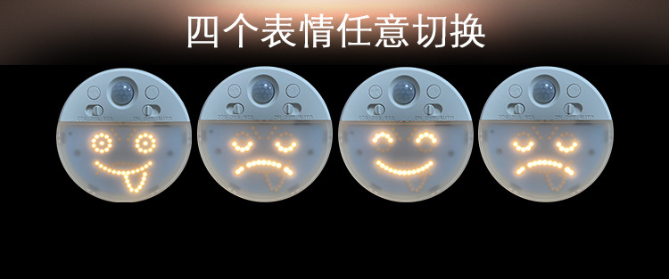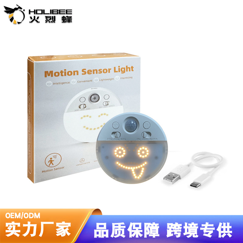 지능형 충전식 인체 유도 램프 표현 둥근 웃는 얼굴 야간 조명 자기 흡입 입구 침실 led 국경 간 공급스토어 가기