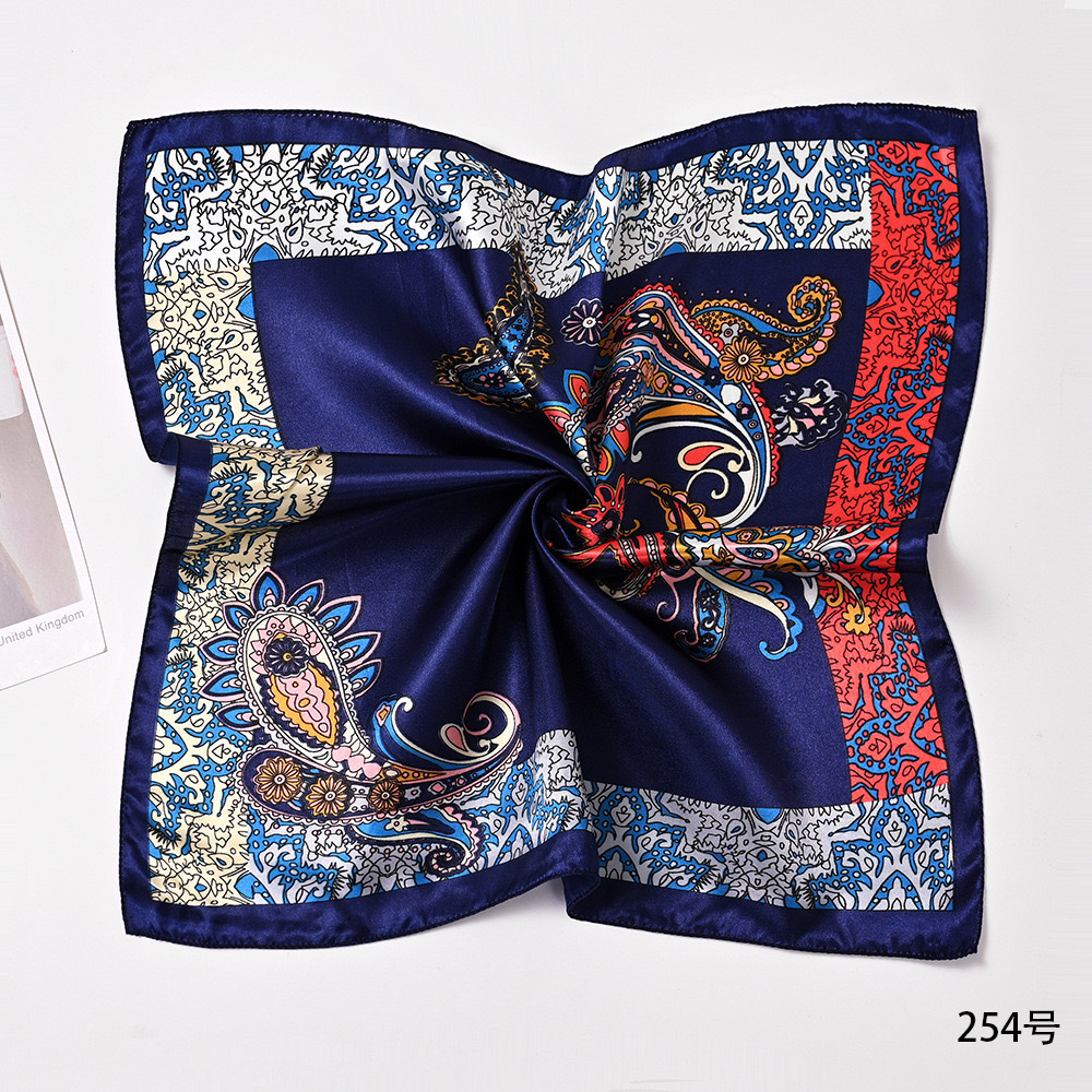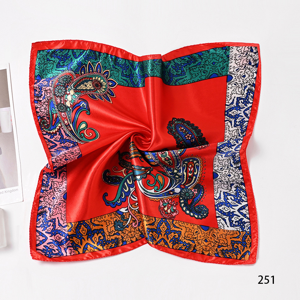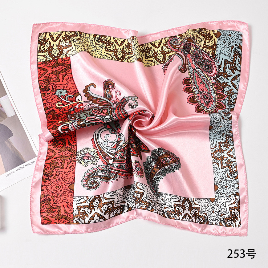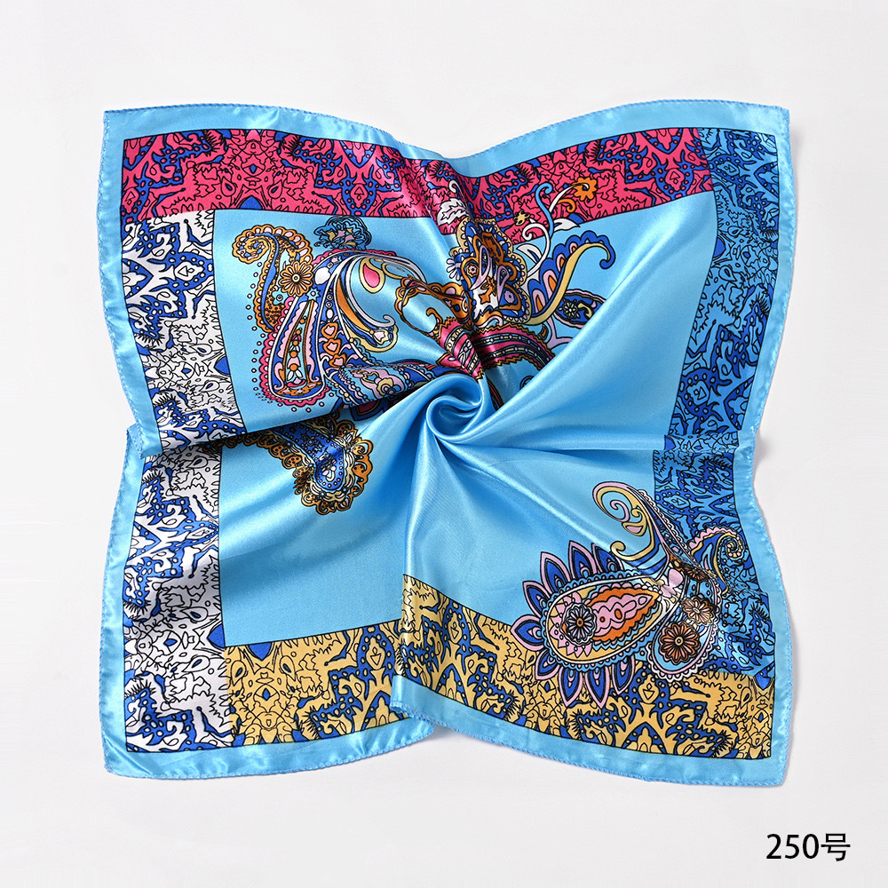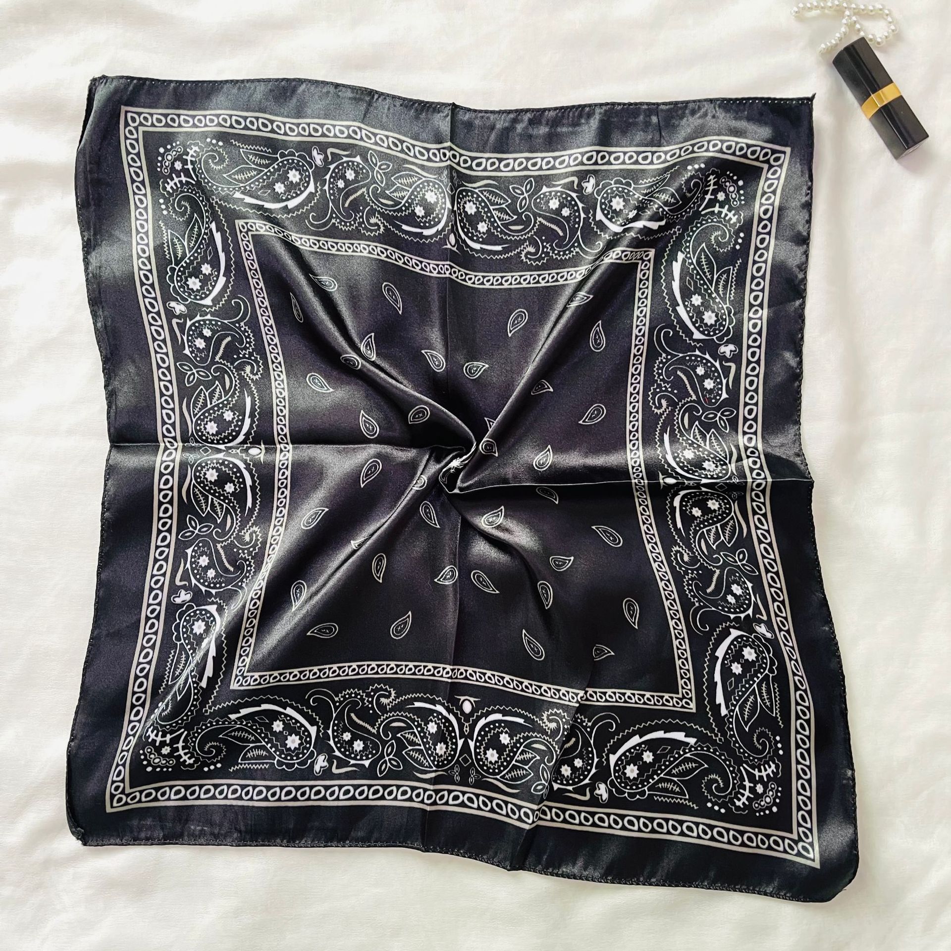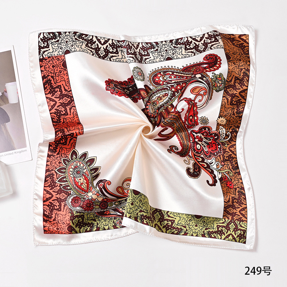 여성을위한 크로스 보더 50cm 새틴 캐슈 플라워 스퀘어 스카프 봄, 여름 유럽과 미국의 스트리트 힙합 장식 실크 스카프 프린트 스카프
