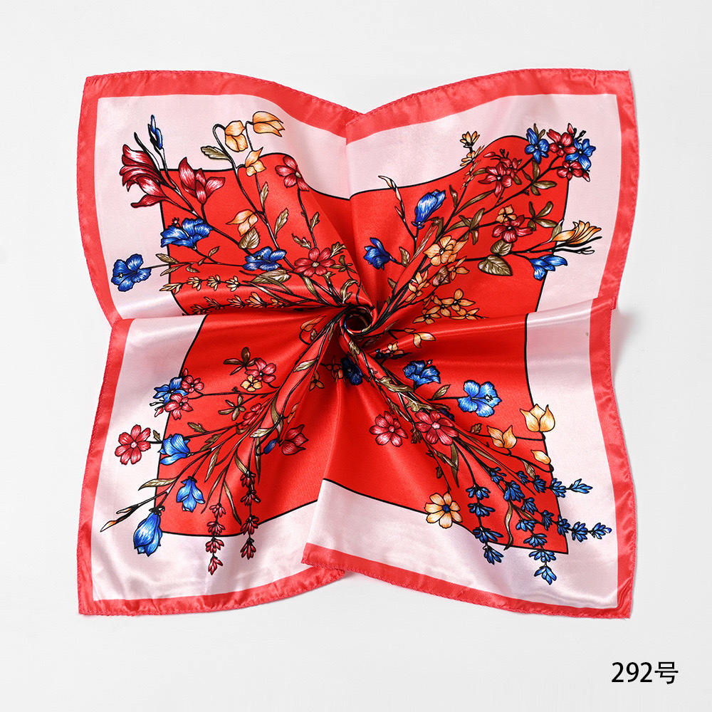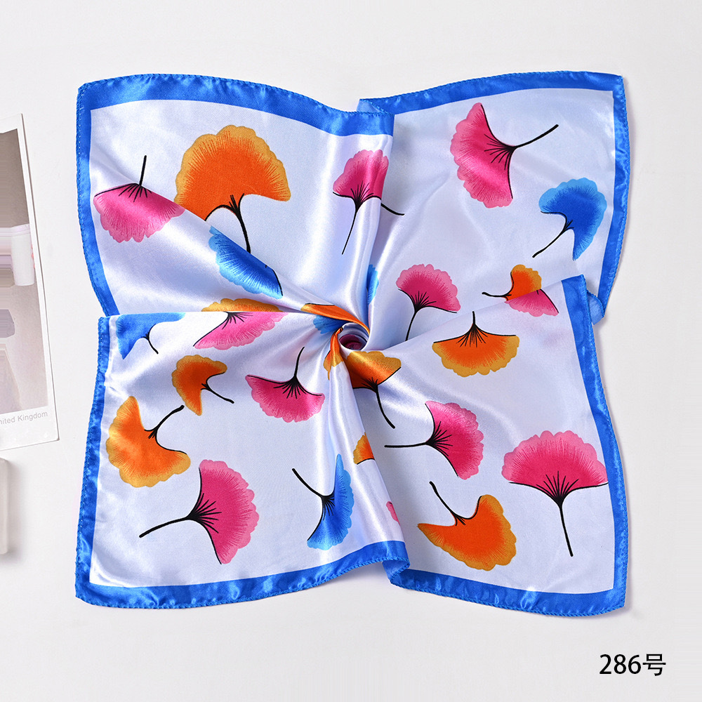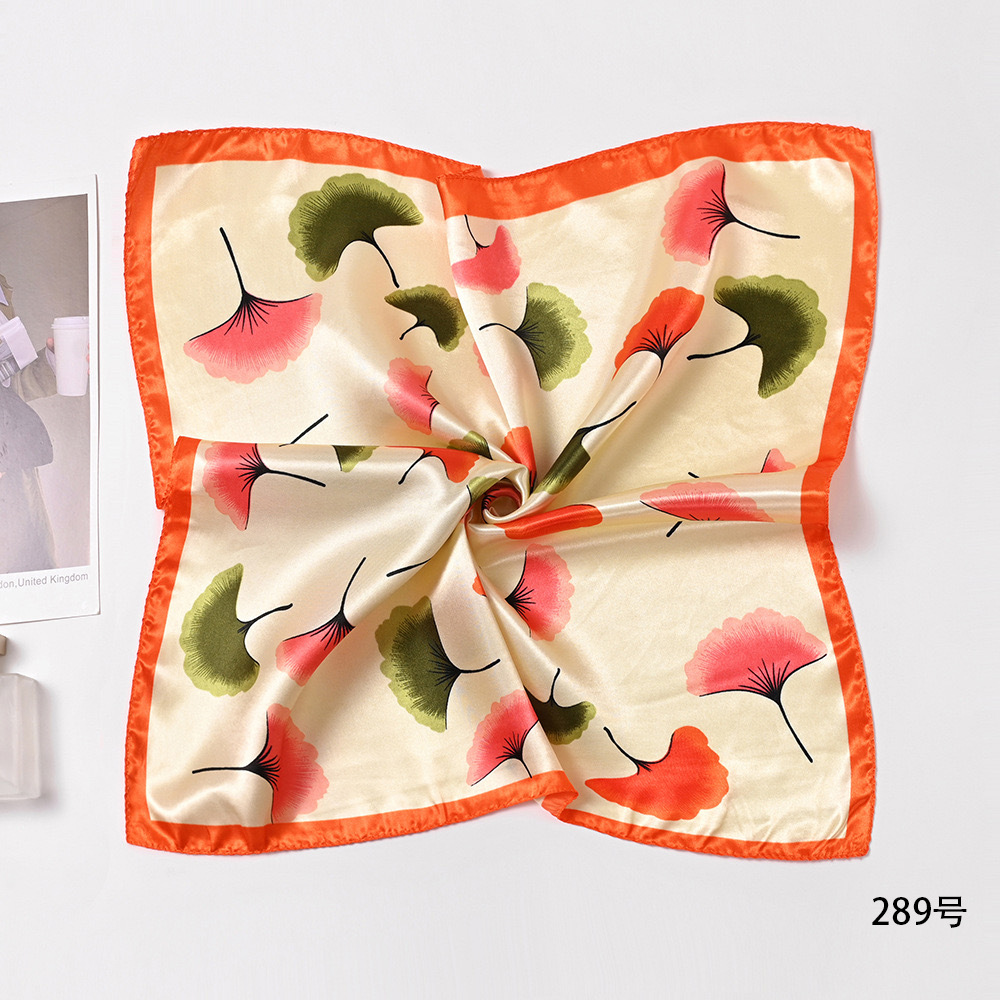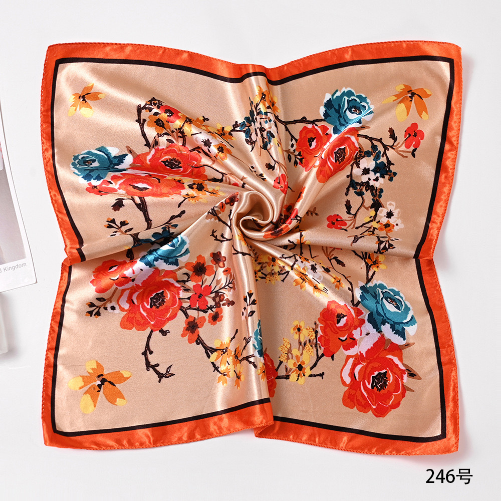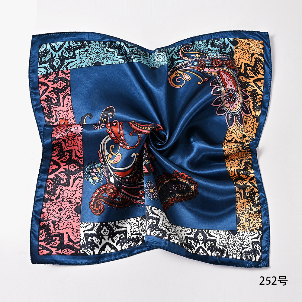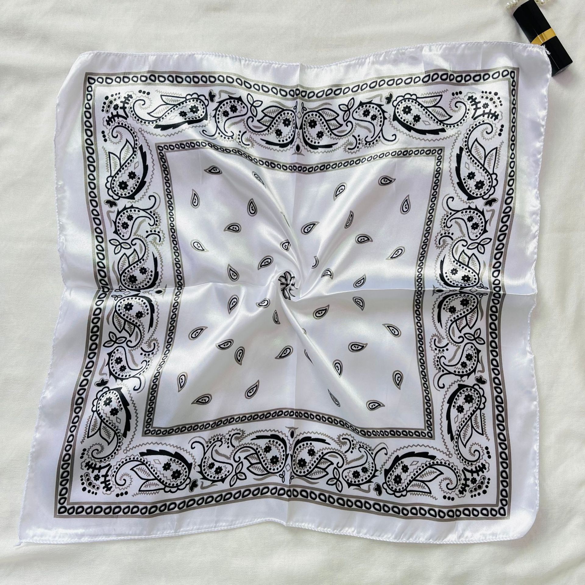여성을위한 크로스 보더 50cm 새틴 캐슈 플라워 스퀘어 스카프 봄, 여름 유럽과 미국의 스트리트 힙합 장식 실크 스카프 프린트 스카프