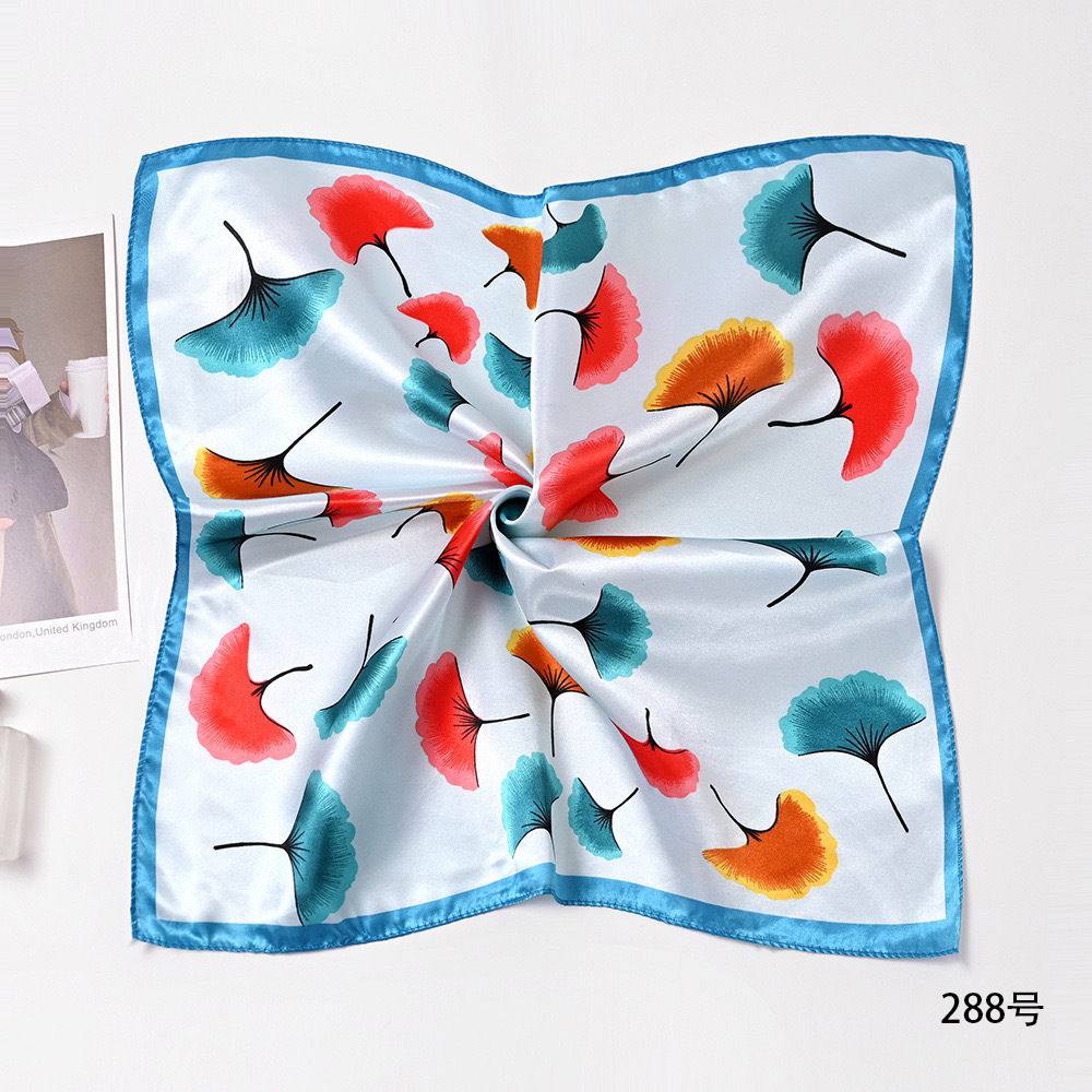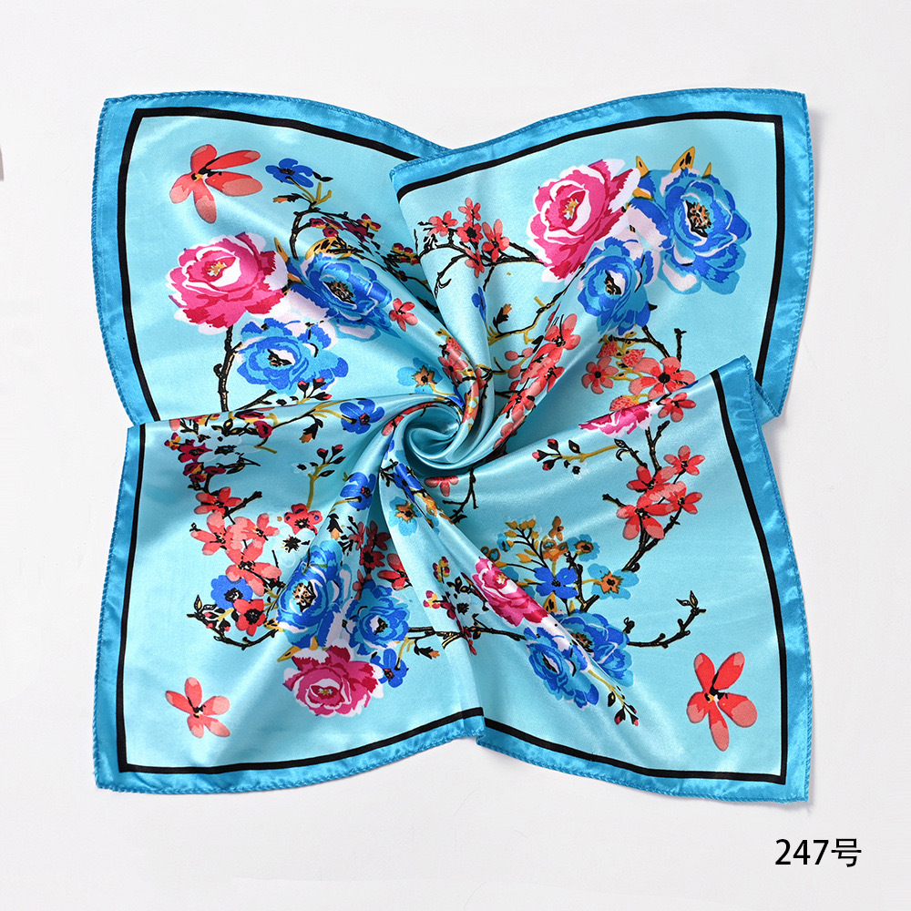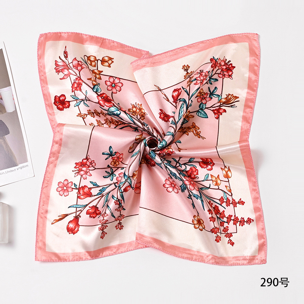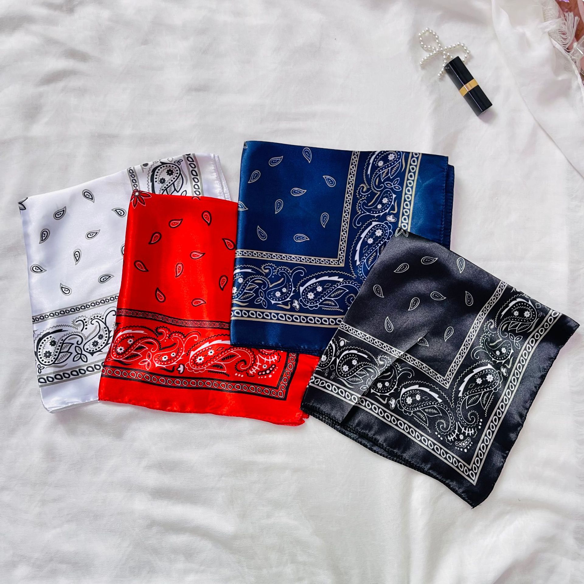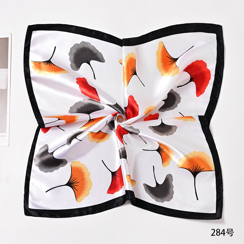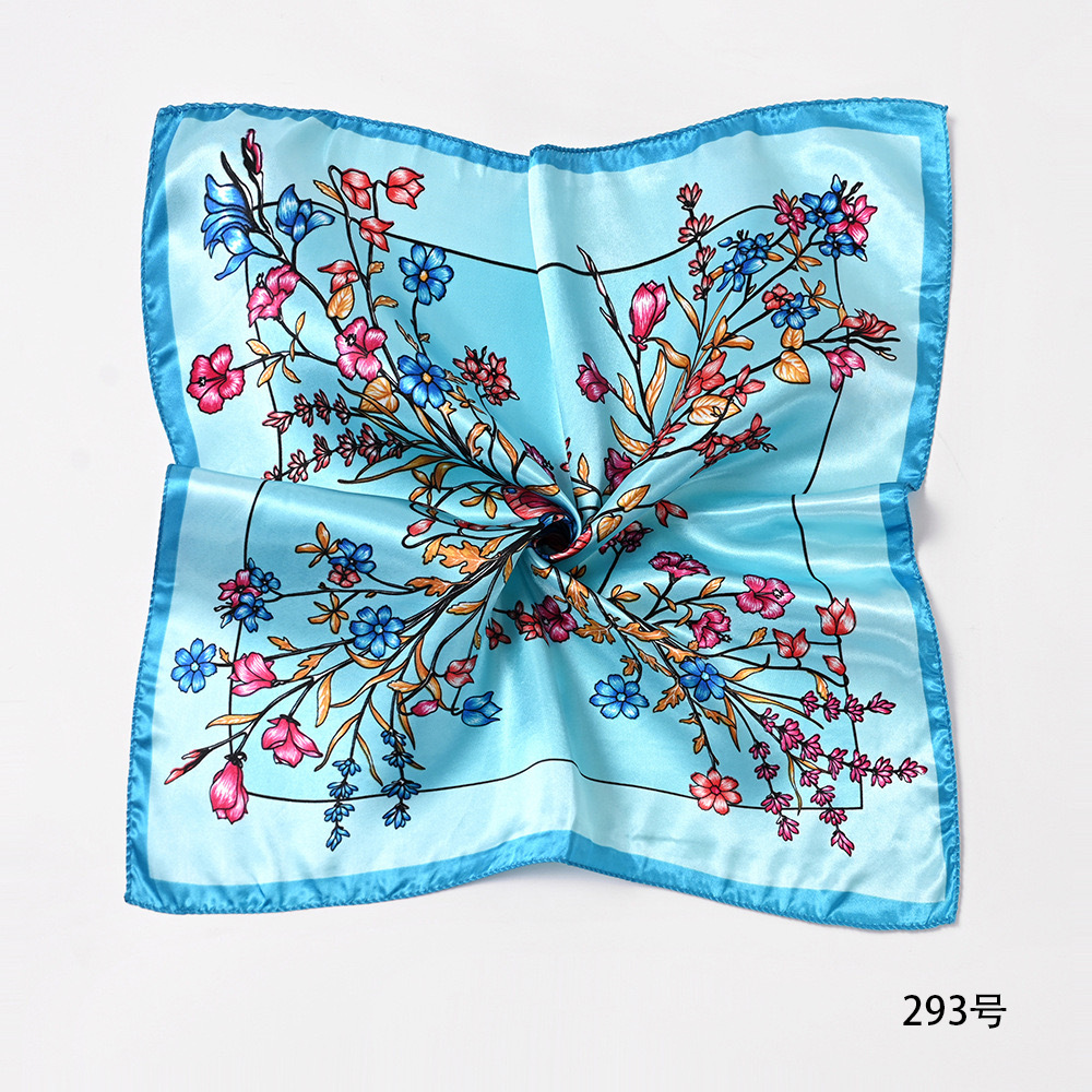 여성을위한 크로스 보더 50cm 새틴 캐슈 플라워 스퀘어 스카프 봄, 여름 유럽과 미국의 스트리트 힙합 장식 실크 스카프 프린트 스카프