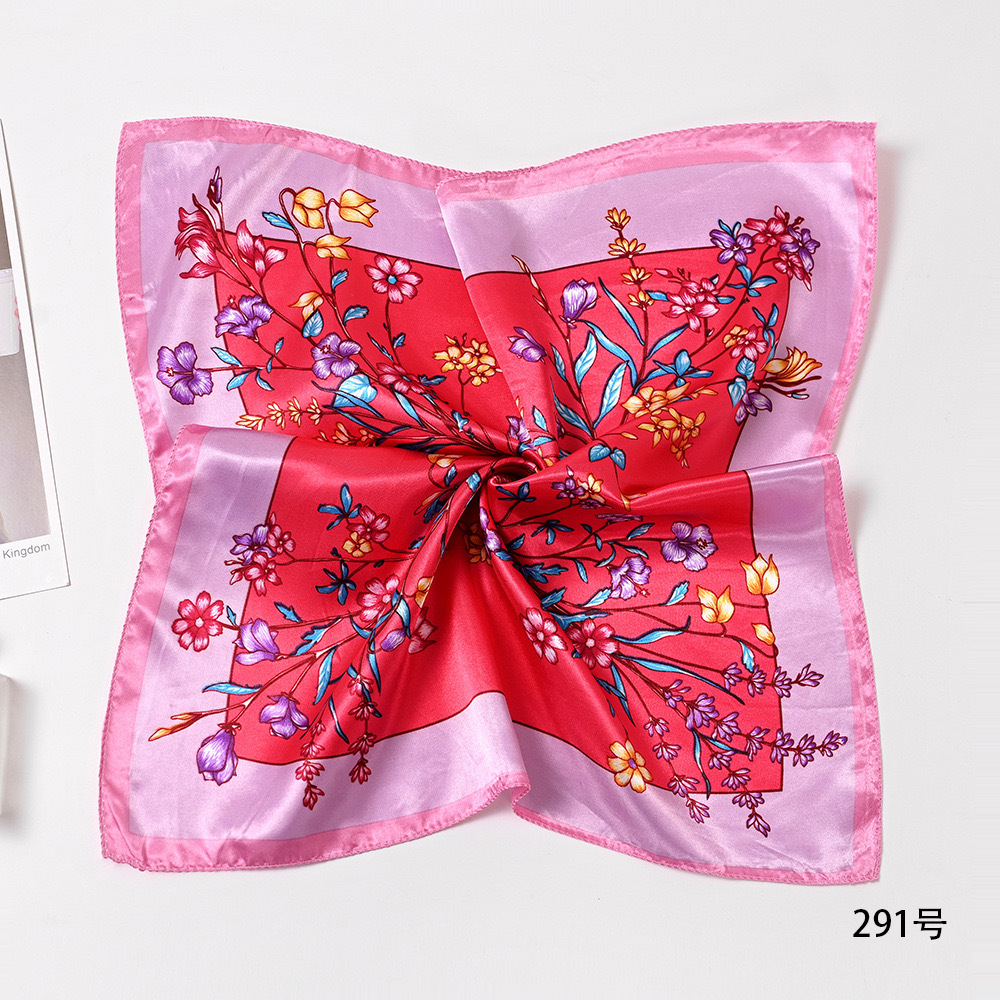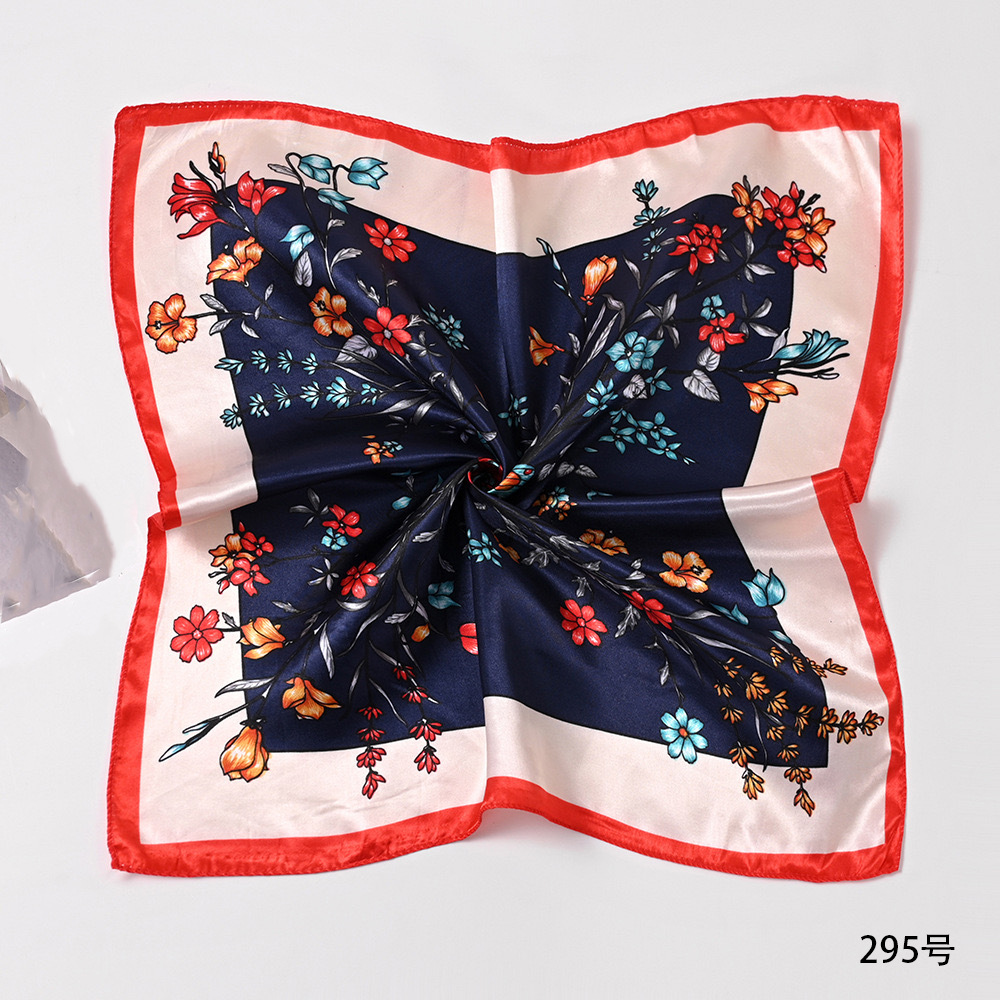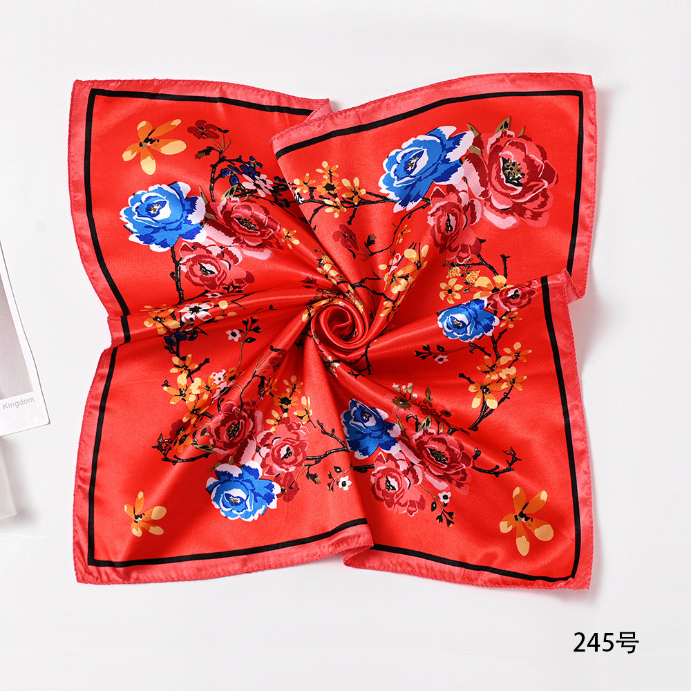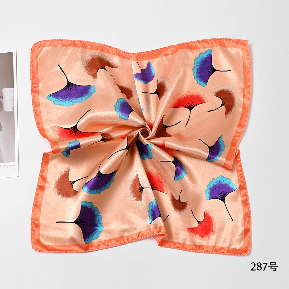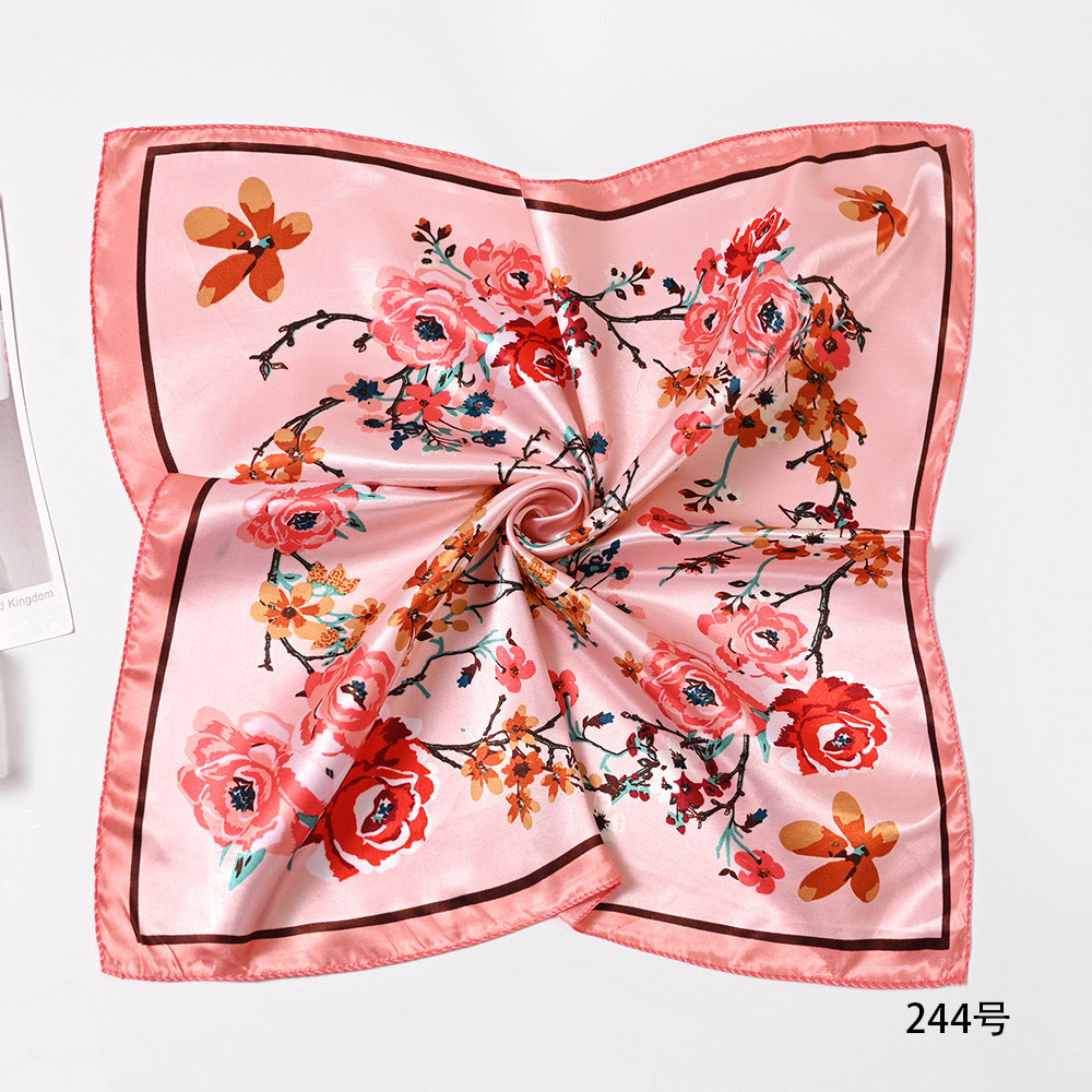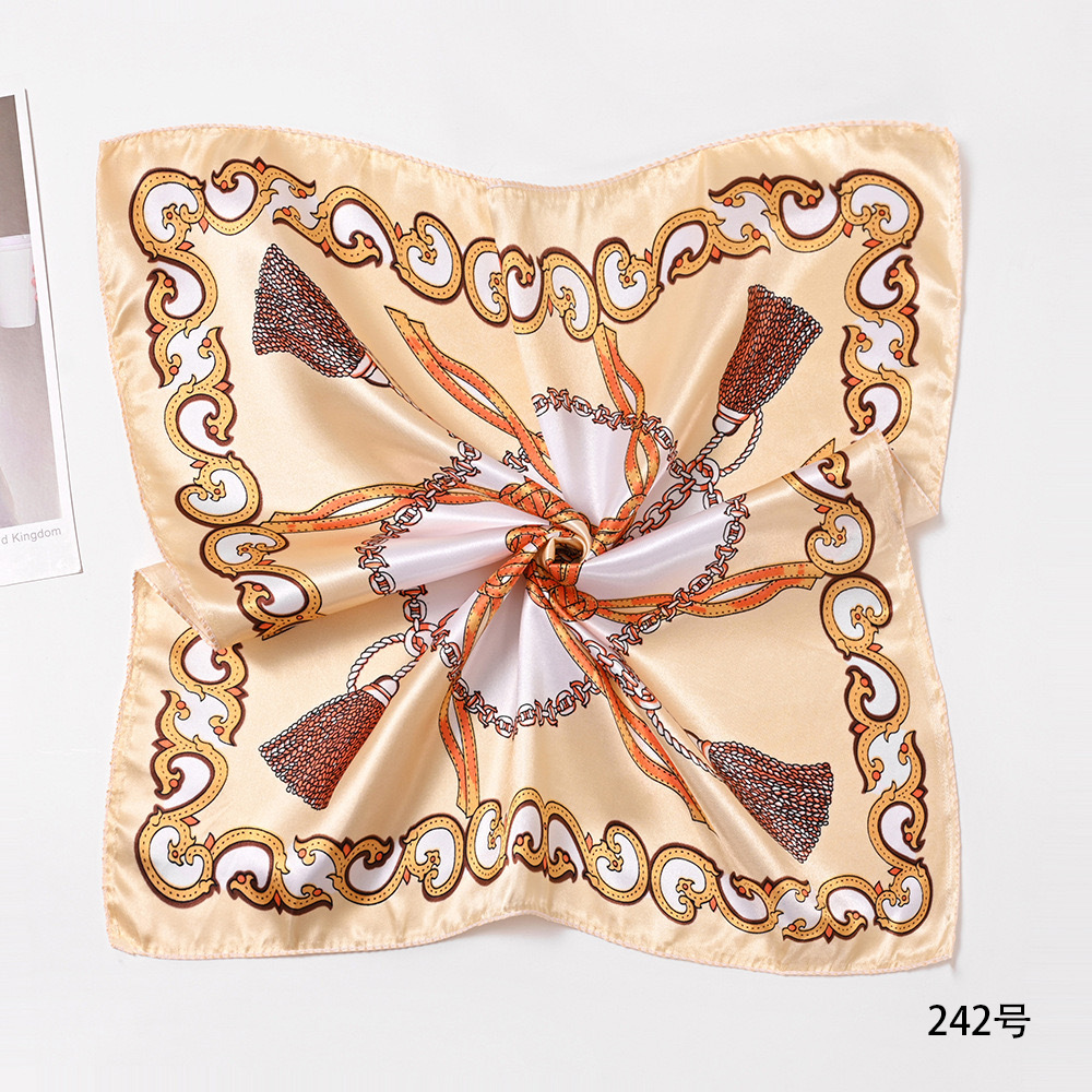 여성을위한 크로스 보더 50cm 새틴 캐슈 플라워 스퀘어 스카프 봄, 여름 유럽과 미국의 스트리트 힙합 장식 실크 스카프 프린트 스카프