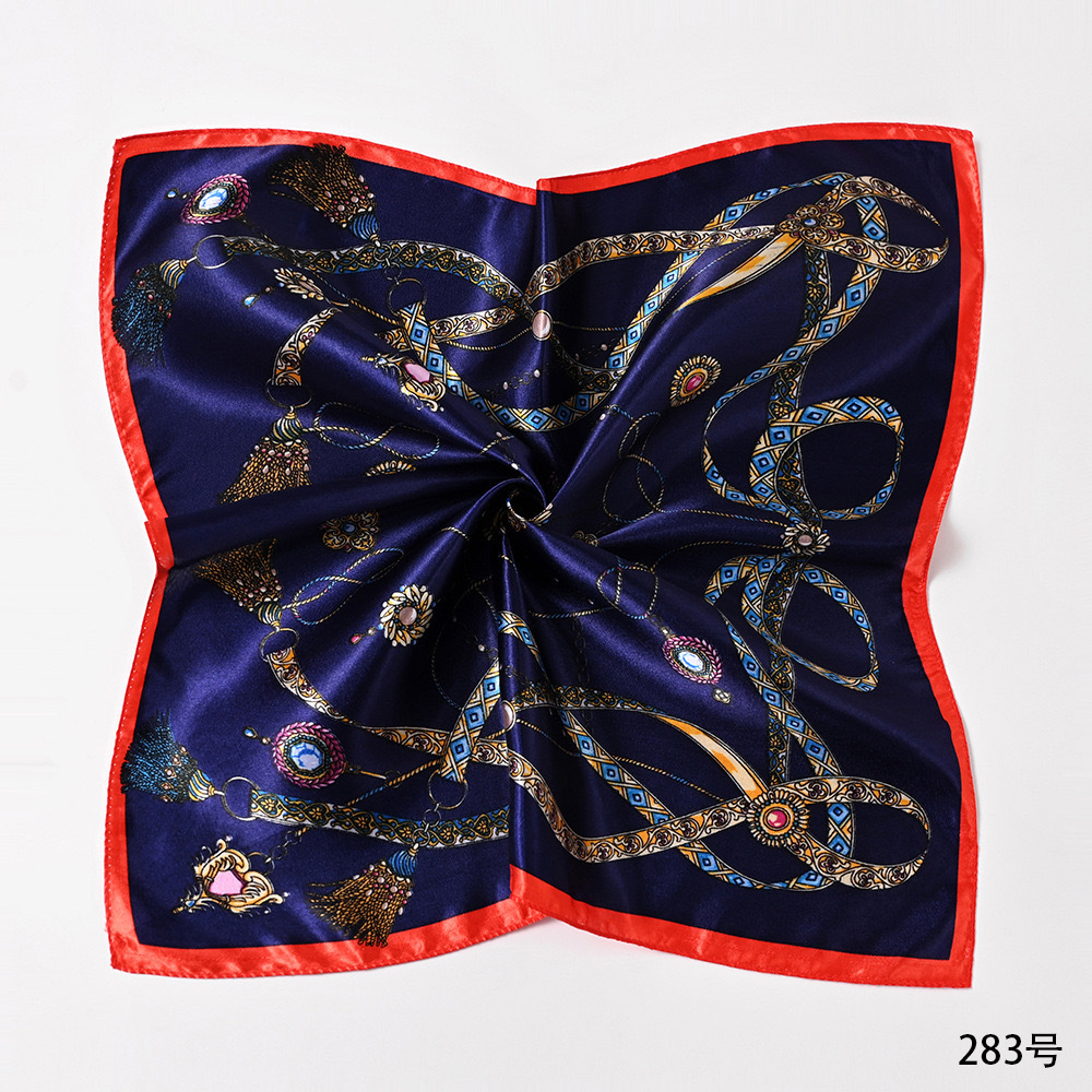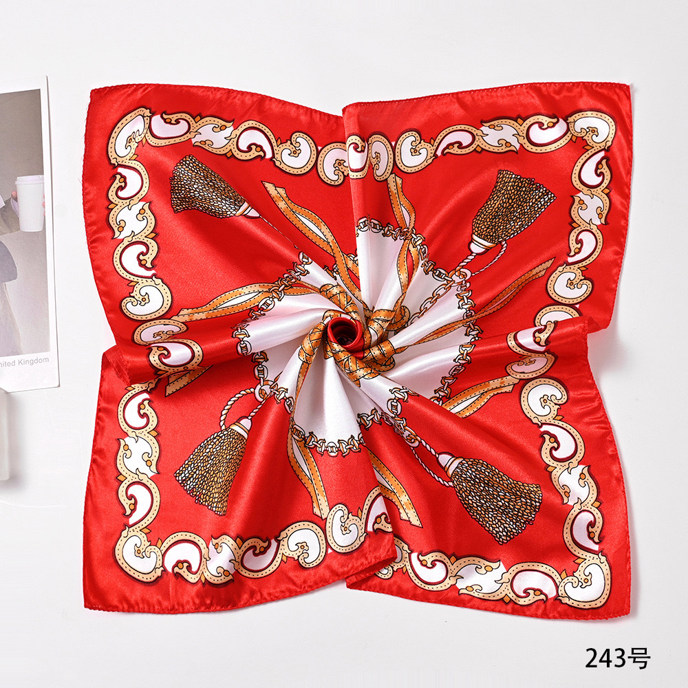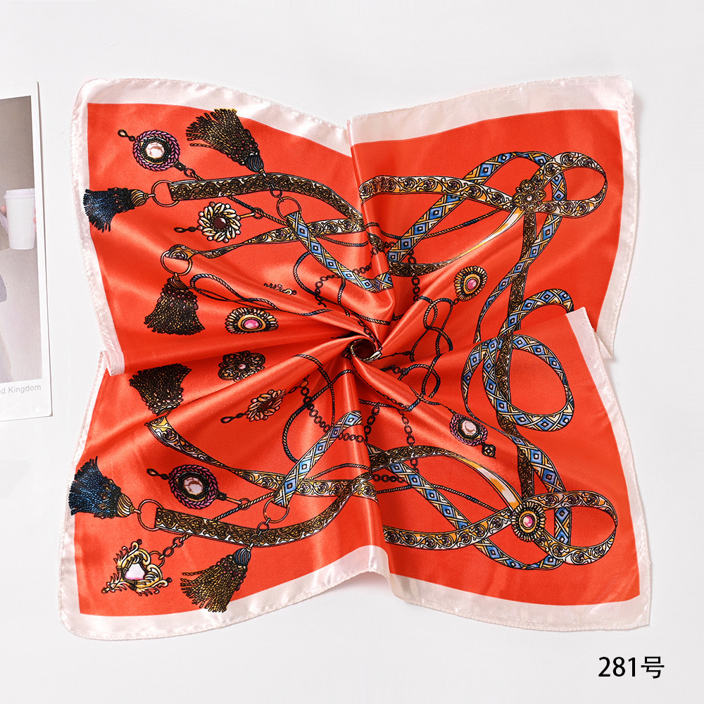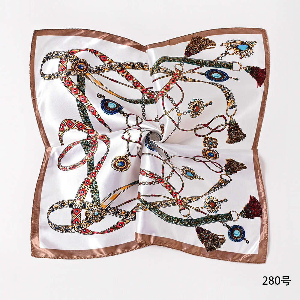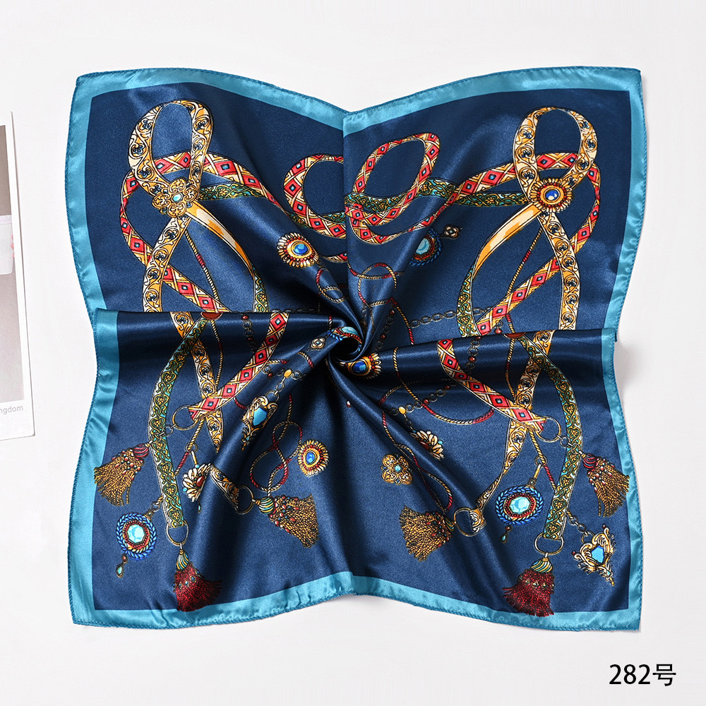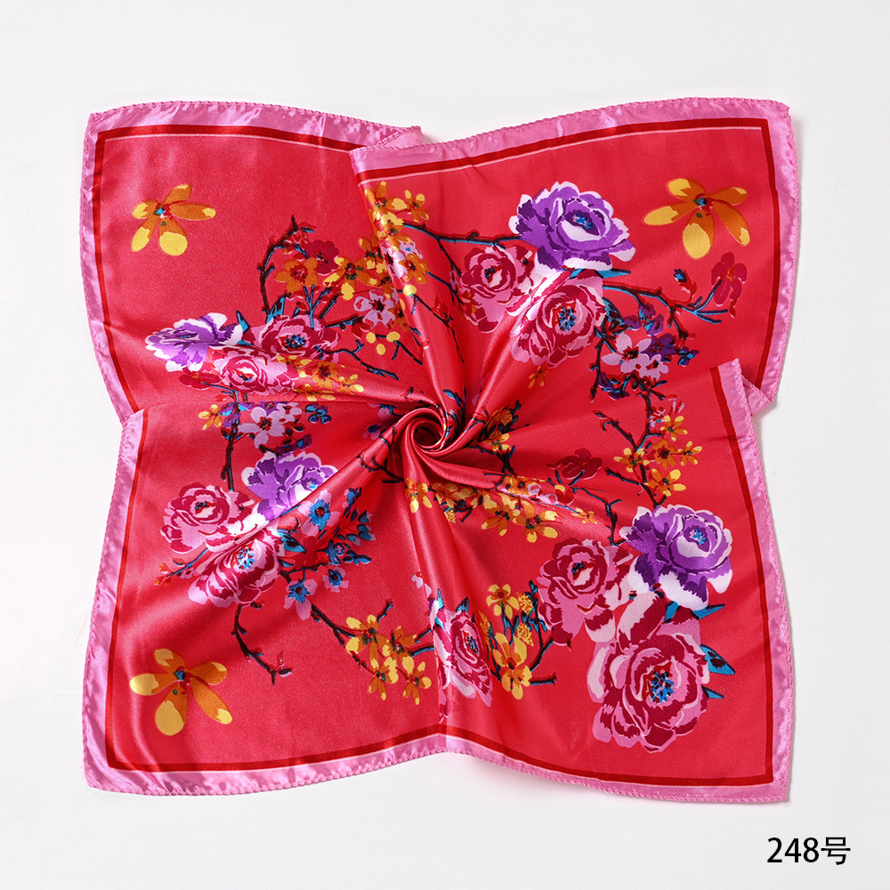 여성을위한 크로스 보더 50cm 새틴 캐슈 플라워 스퀘어 스카프 봄, 여름 유럽과 미국의 스트리트 힙합 장식 실크 스카프 프린트 스카프
