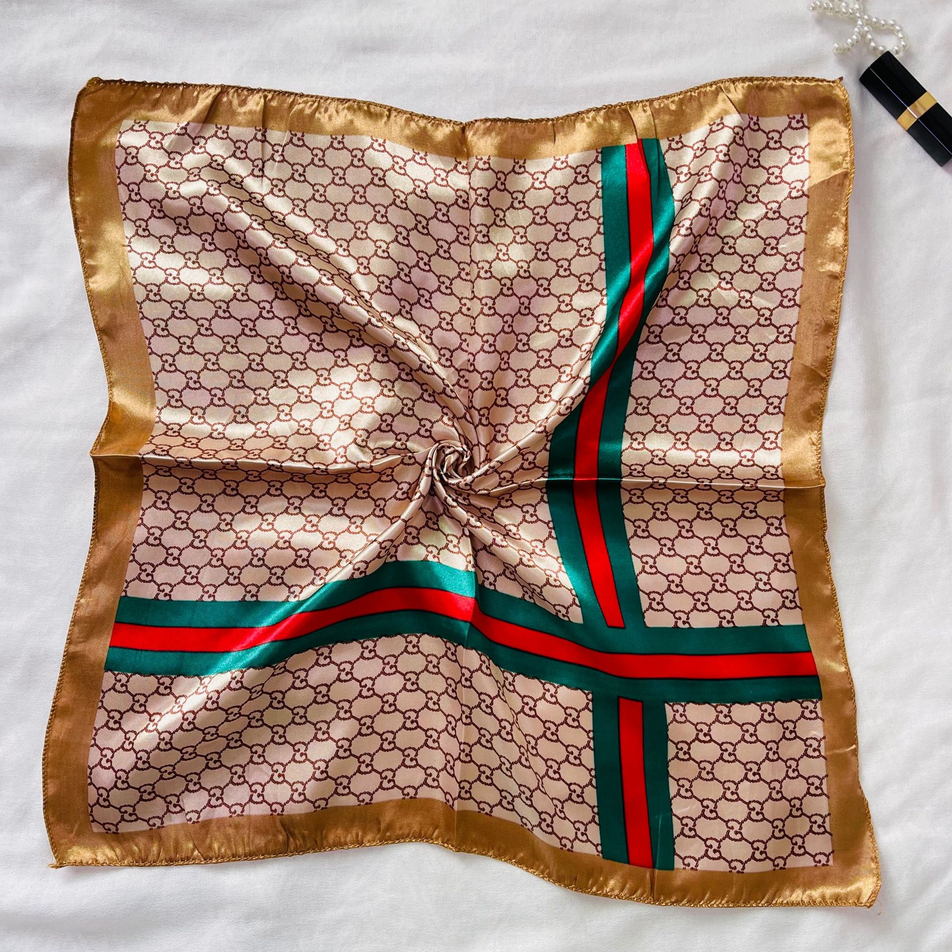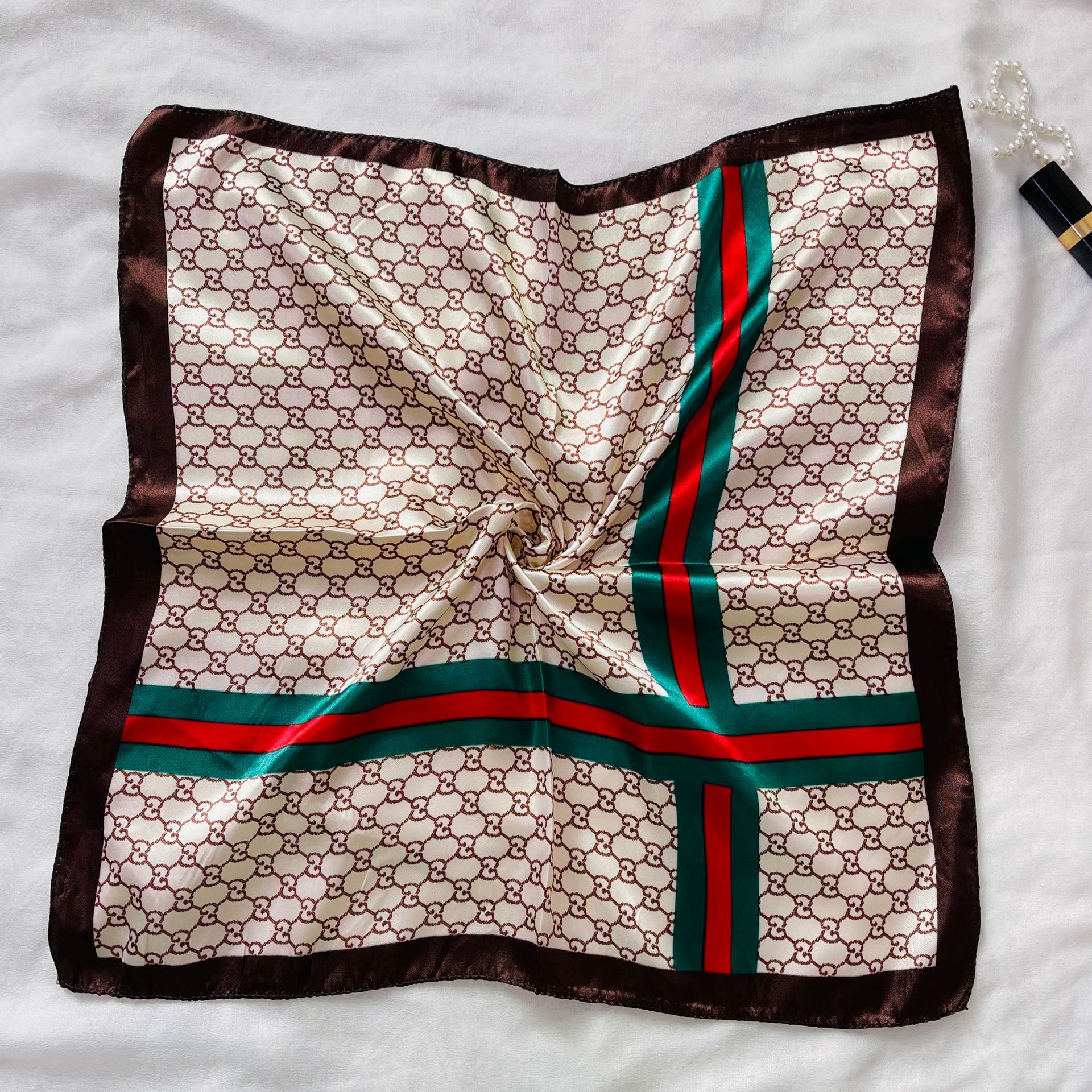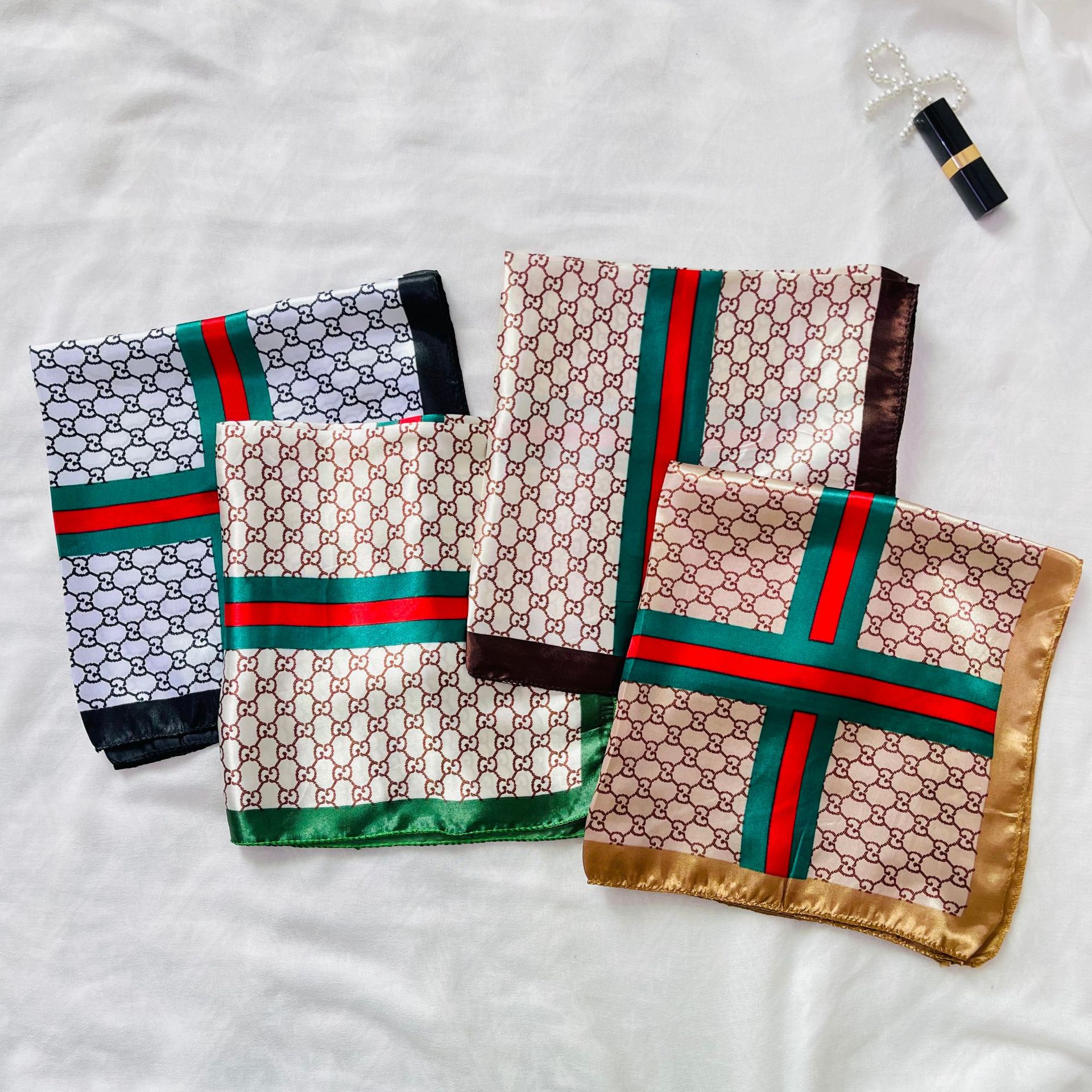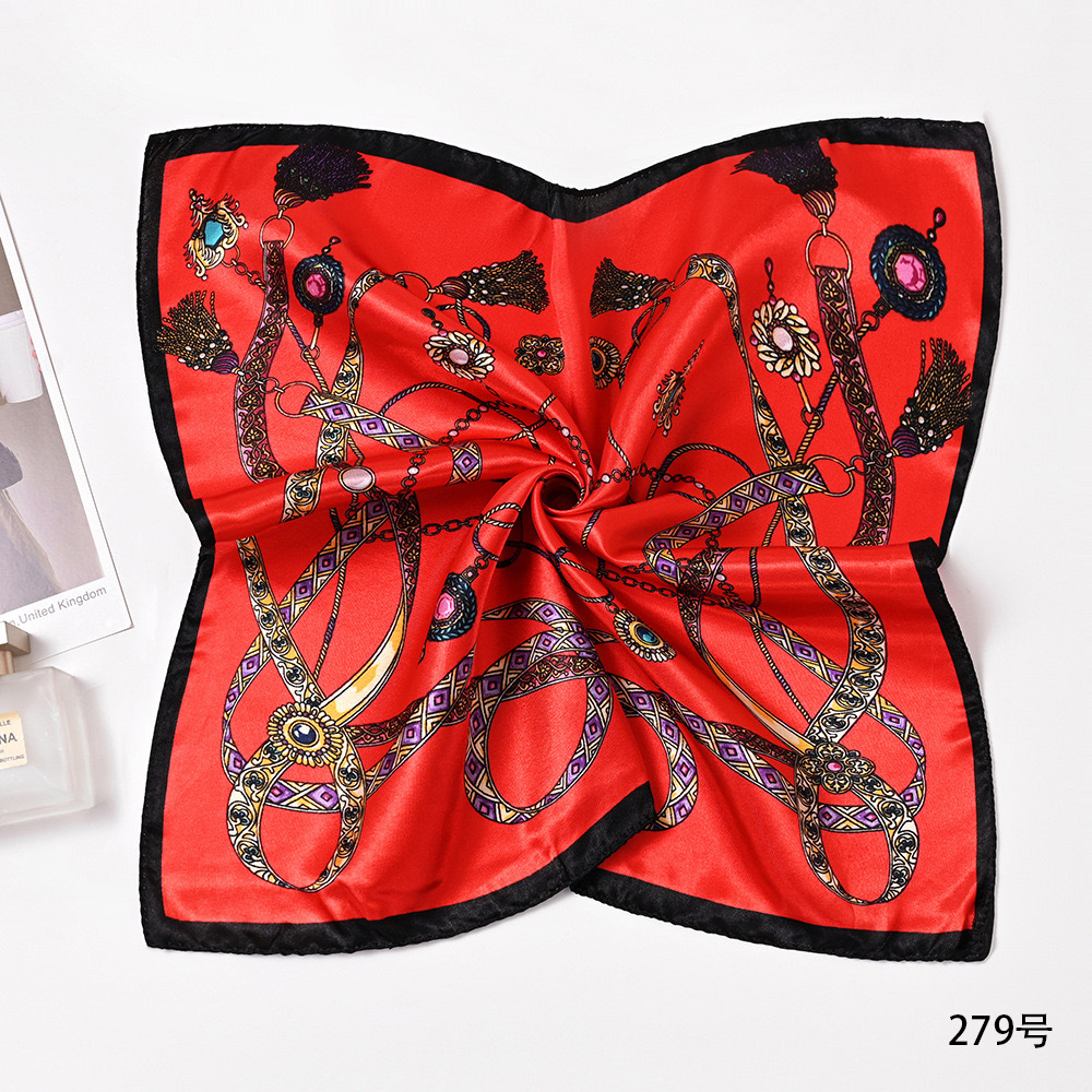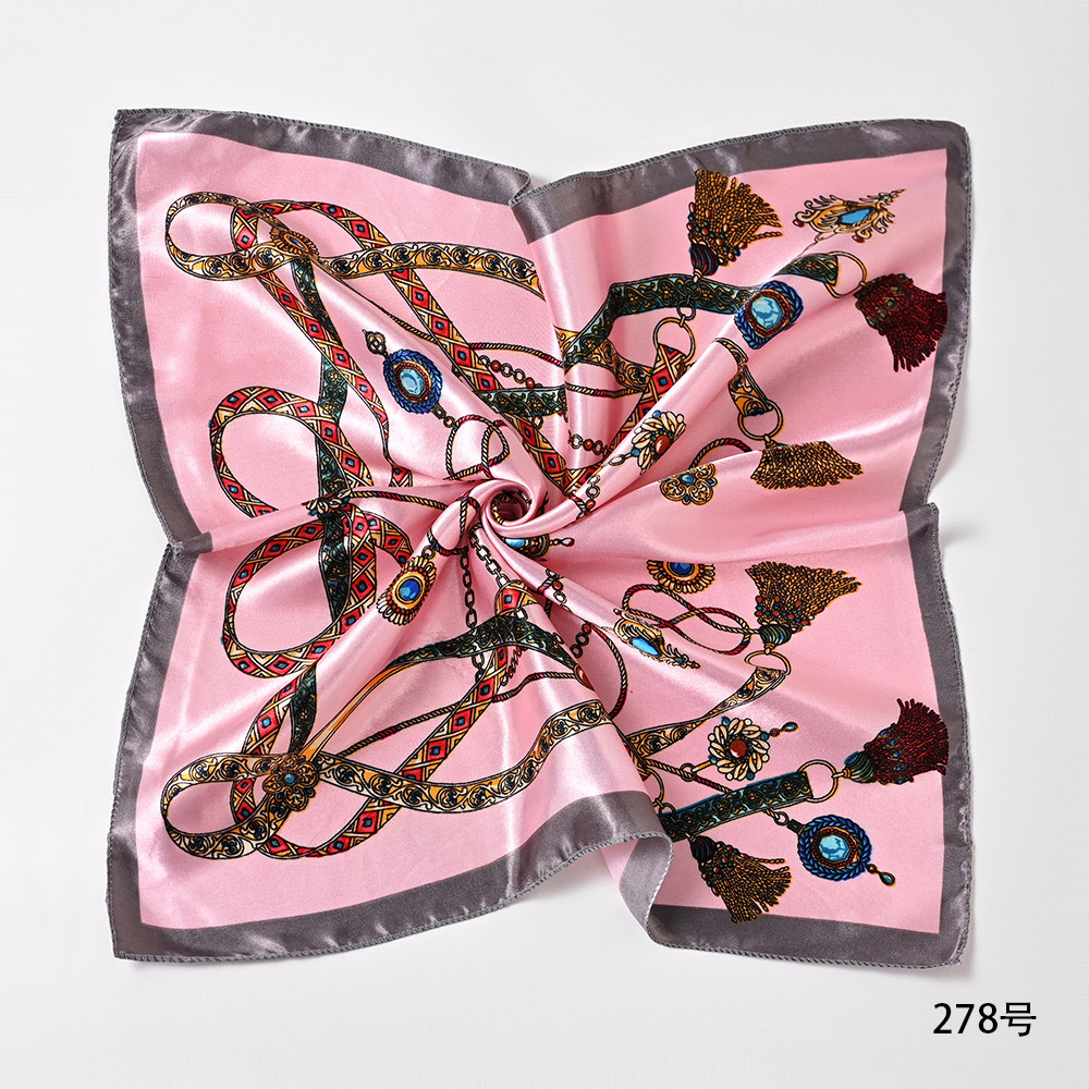여성을위한 크로스 보더 50cm 새틴 캐슈 플라워 스퀘어 스카프 봄, 여름 유럽과 미국의 스트리트 힙합 장식 실크 스카프 프린트 스카프