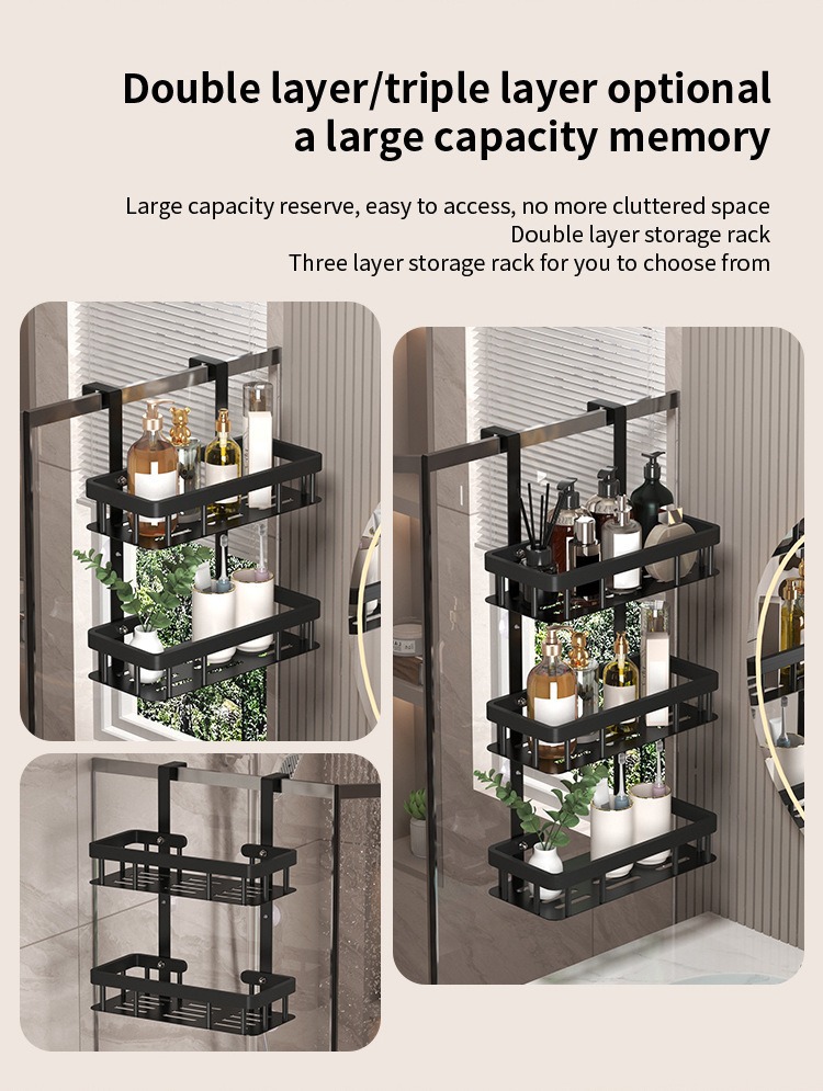 뒷면 후크가 있는 욕실 문 뒤 걸이, 다기능 욕실 용품 보관 랙, 화장실 벽걸이형 다층 보관 유물