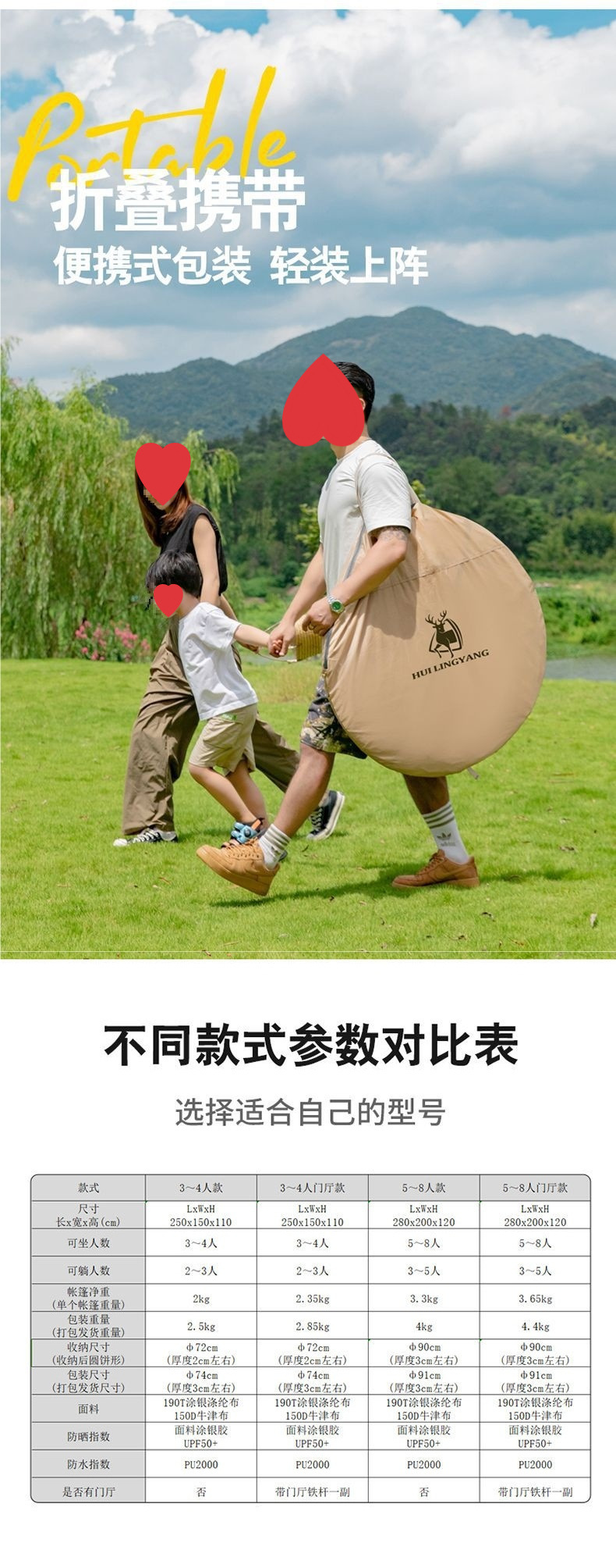 1초 속도로 완전 자동 텐트 야외 휴대용 접이식 캠핑 방수 두꺼운 은색 코팅 태양 보호 창고