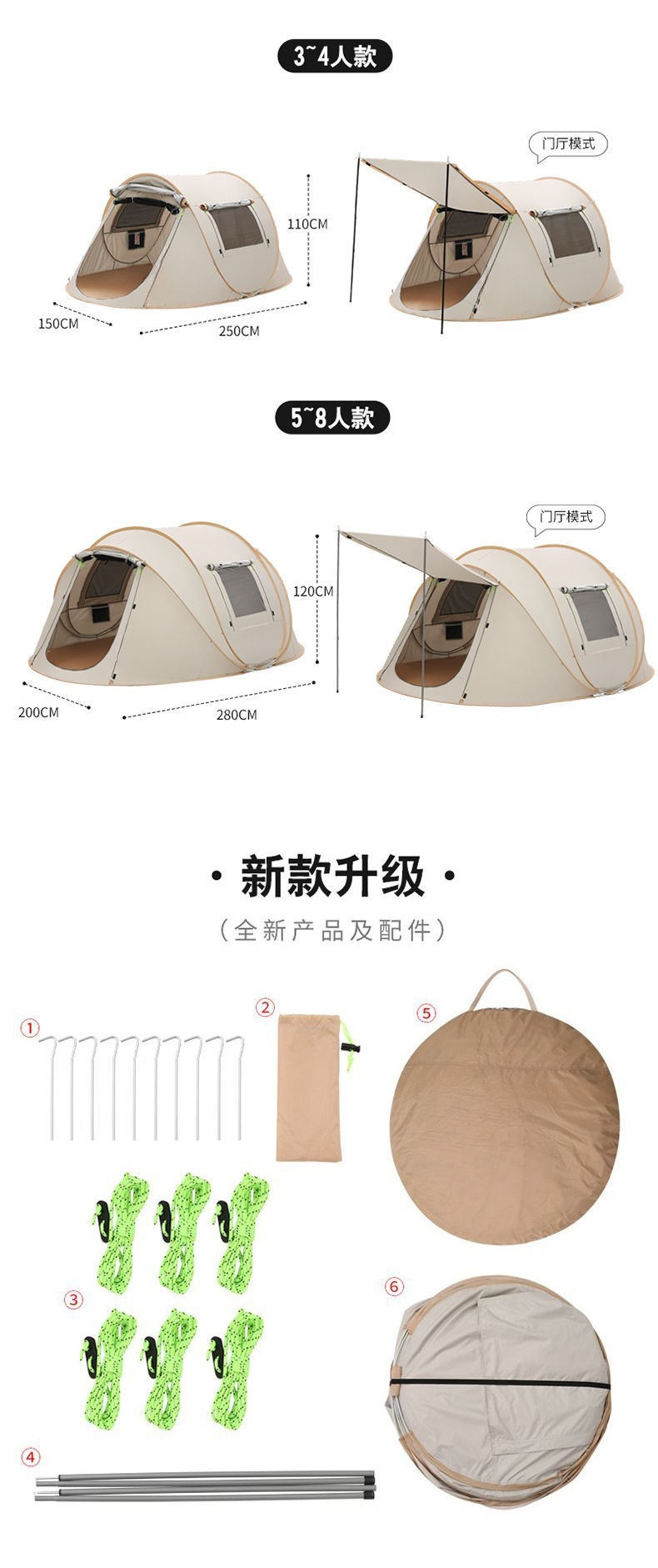1초 속도로 완전 자동 텐트 야외 휴대용 접이식 캠핑 방수 두꺼운 은색 코팅 태양 보호 창고스토어 가기