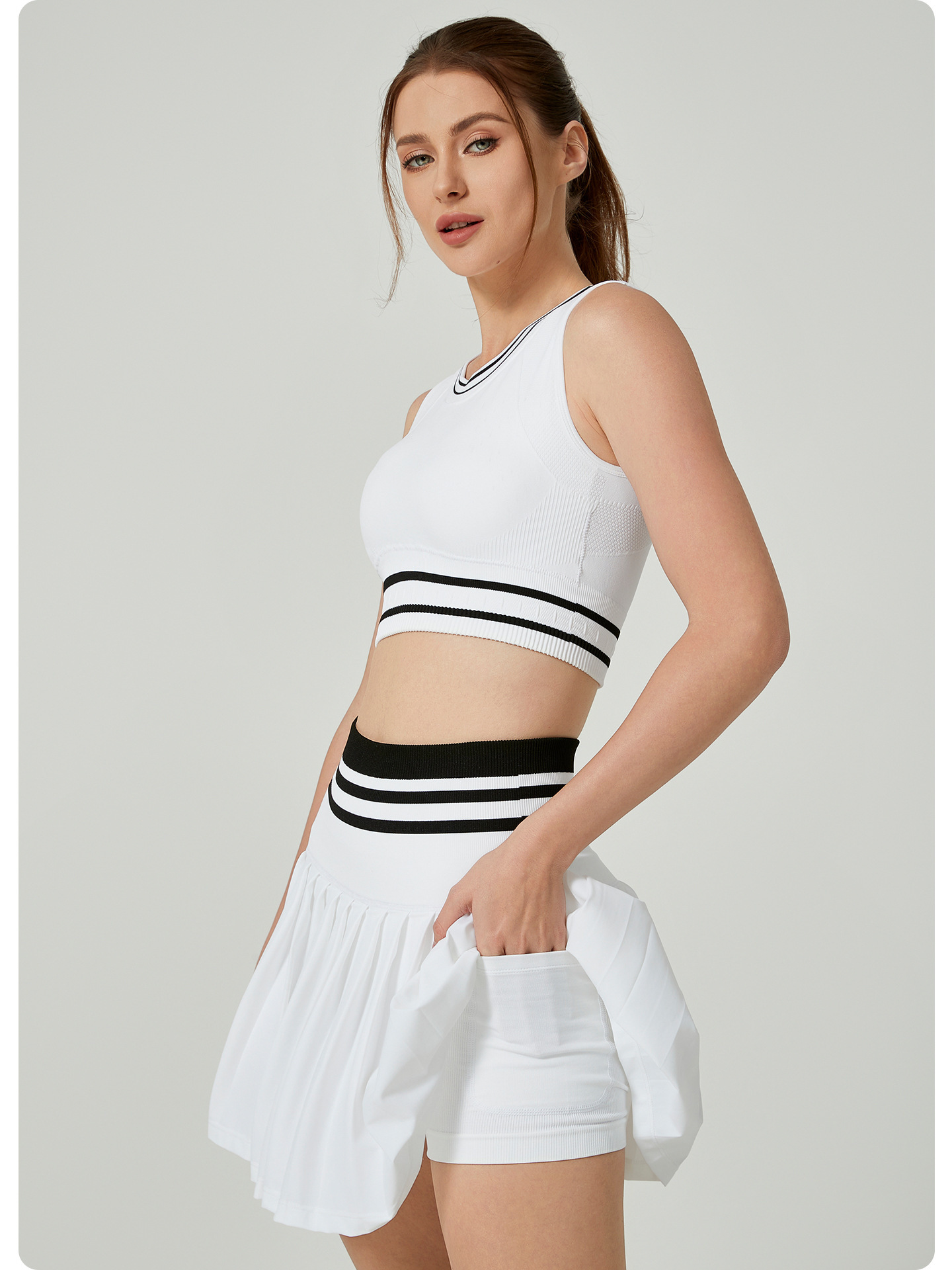 새로운 속건성 피트니스 조끼 스포츠 테니스 스커트 세트 야외 통기성 노출 방지 하이 웨이스트 아름다운 등 요가 스커트스토어 가기