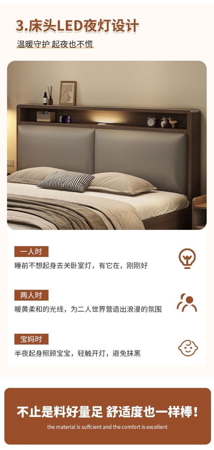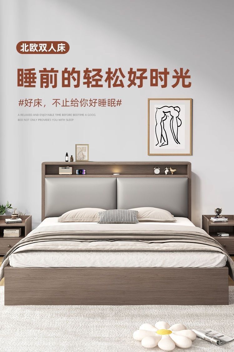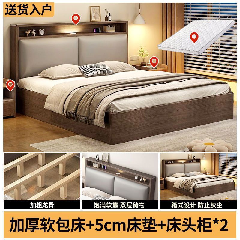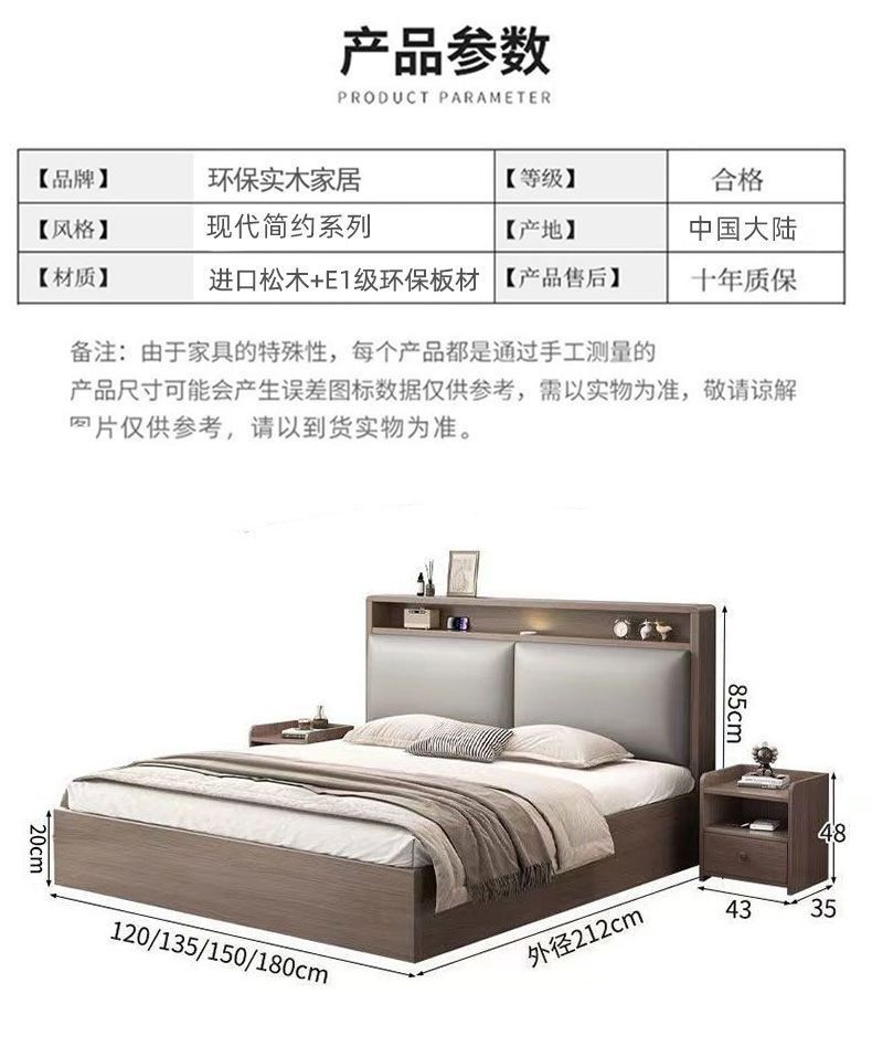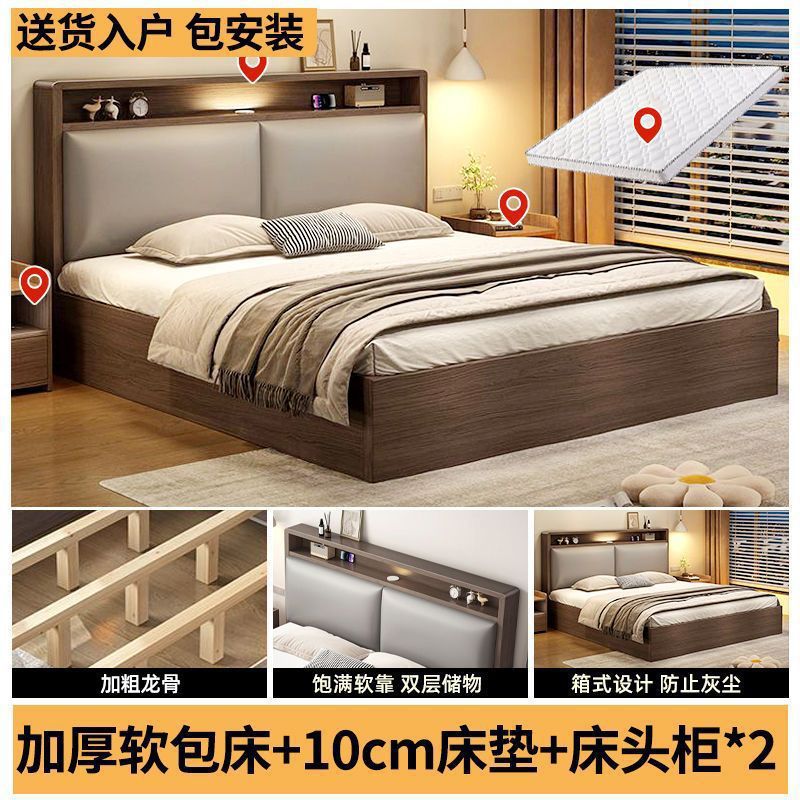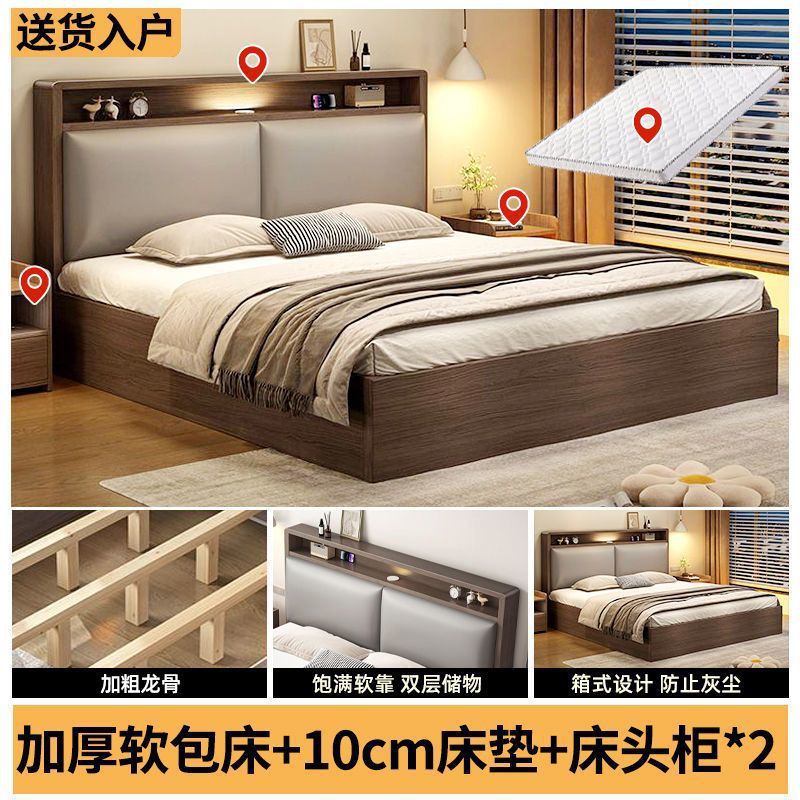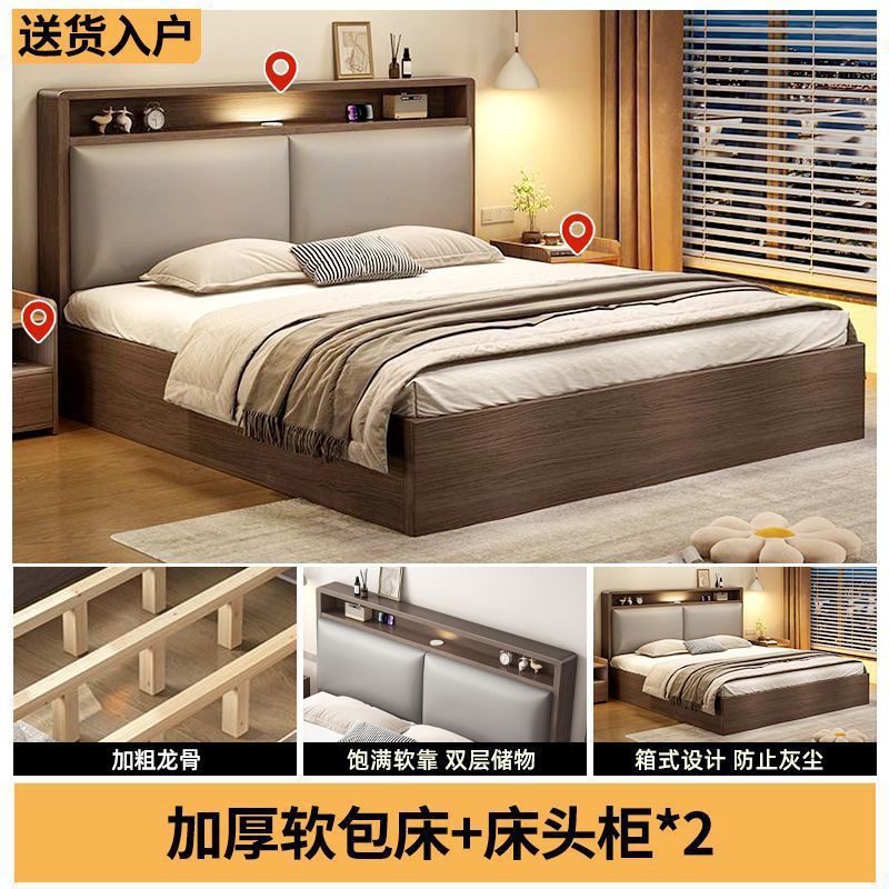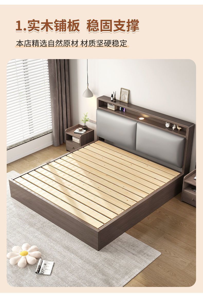 원목 침대 더블 1.8x 2m 마스터 침실 대형 침대 홈 1.5m 소형 아파트 임대 1.2m 수납 싱글 침대