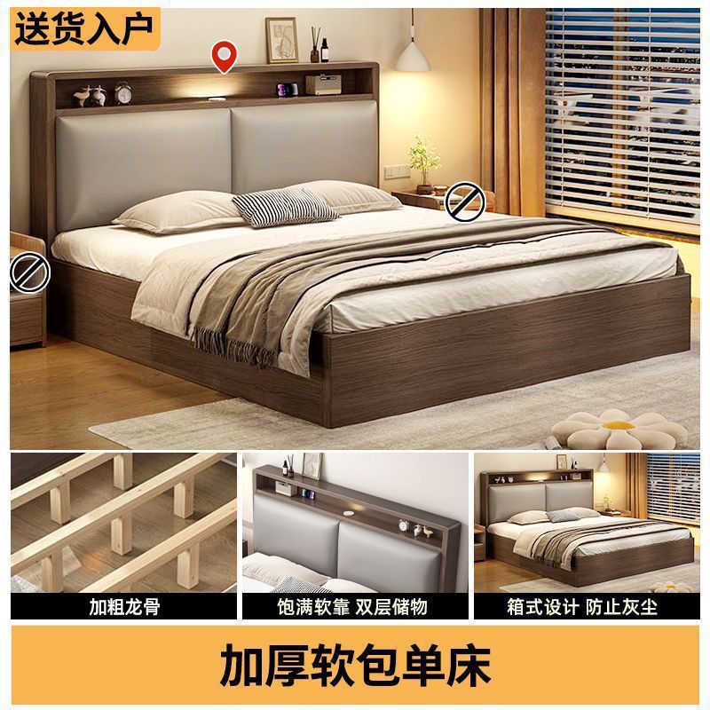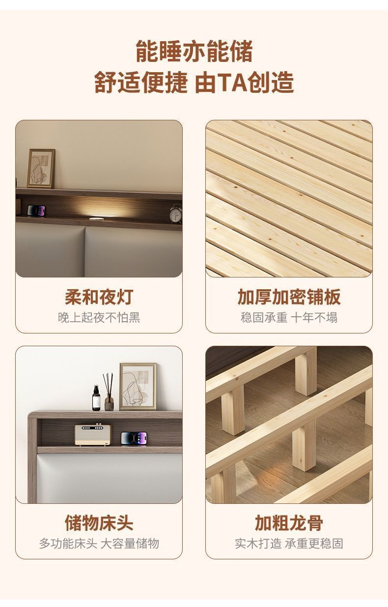 원목 침대 더블 1.8x 2m 마스터 침실 대형 침대 홈 1.5m 소형 아파트 임대 1.2m 수납 싱글 침대스토어 가기