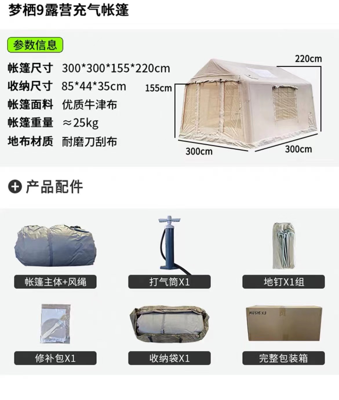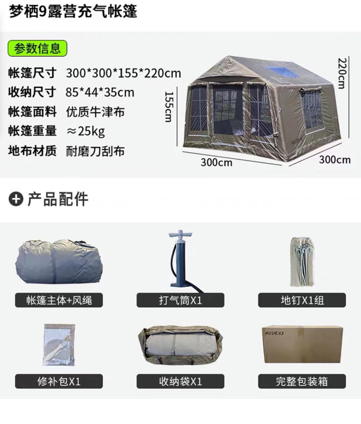 Mengqi 9 평방 미터 야외 캠핑 풍선 텐트 넓은 공간 캠핑 야외 캠프 가족 휴대용 여행 간단스토어 가기