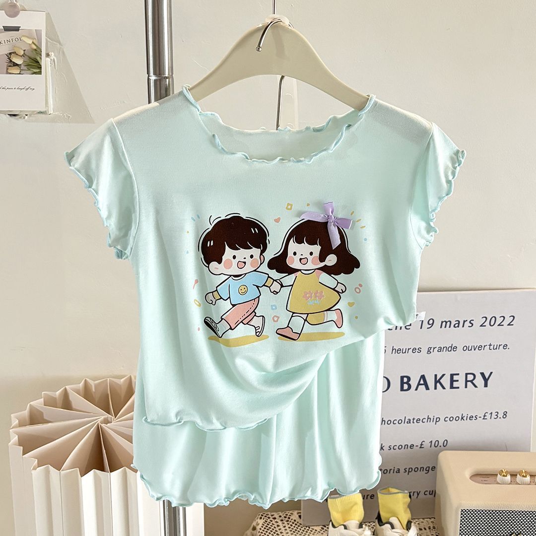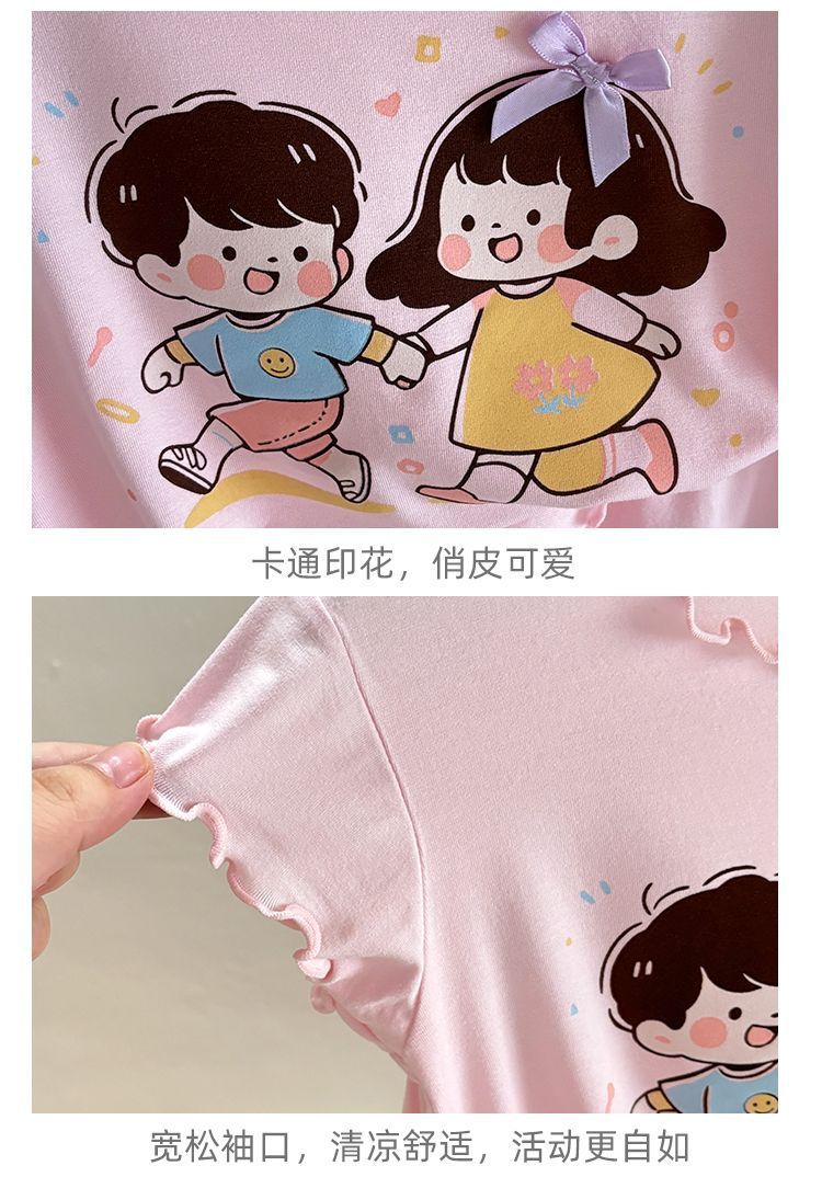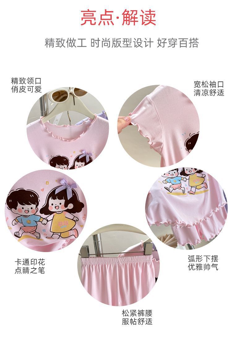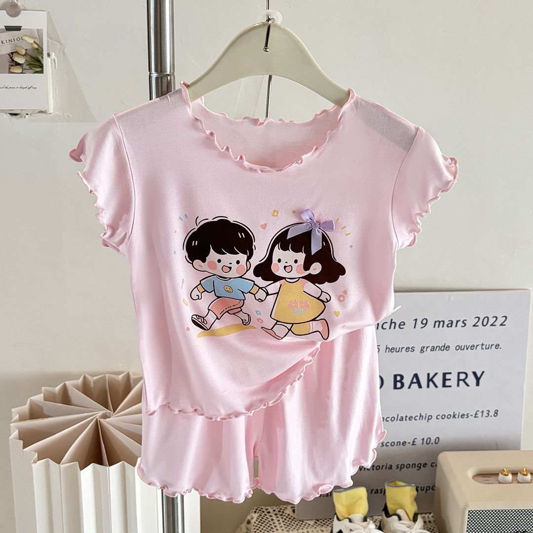 반팔 에어컨 가정복 투피스 반바지 만화 캐릭터 정장 아동 잠옷 소녀 여름 얇은 중대형