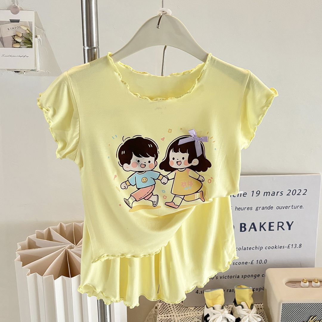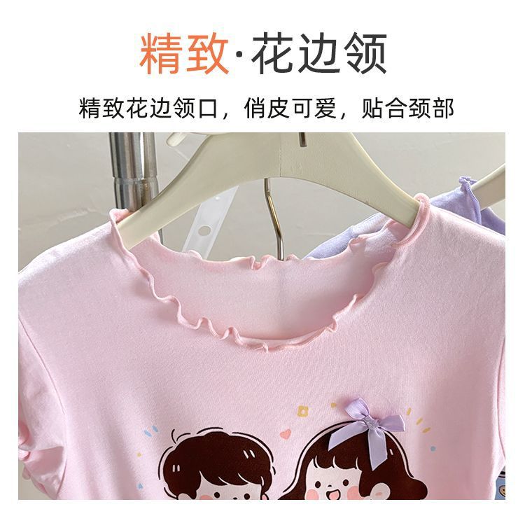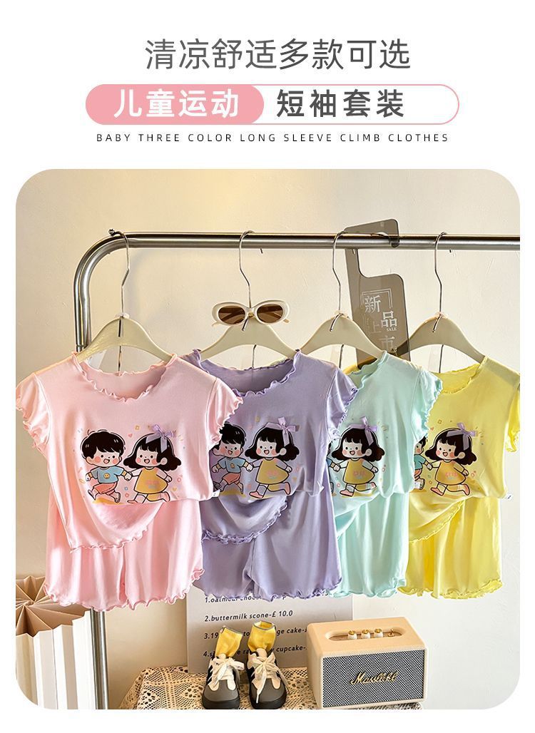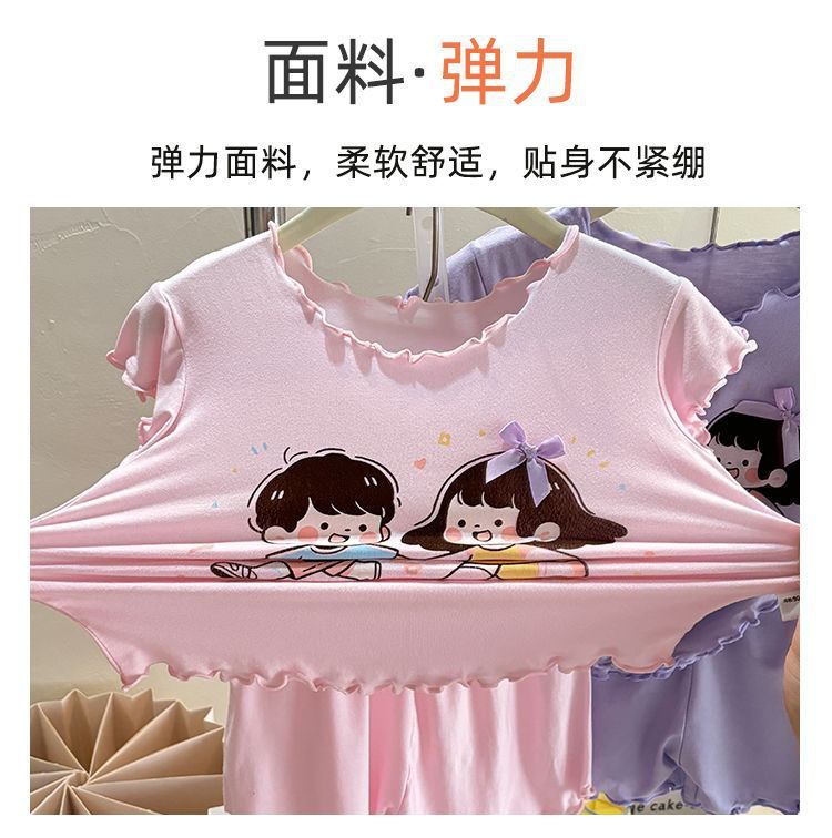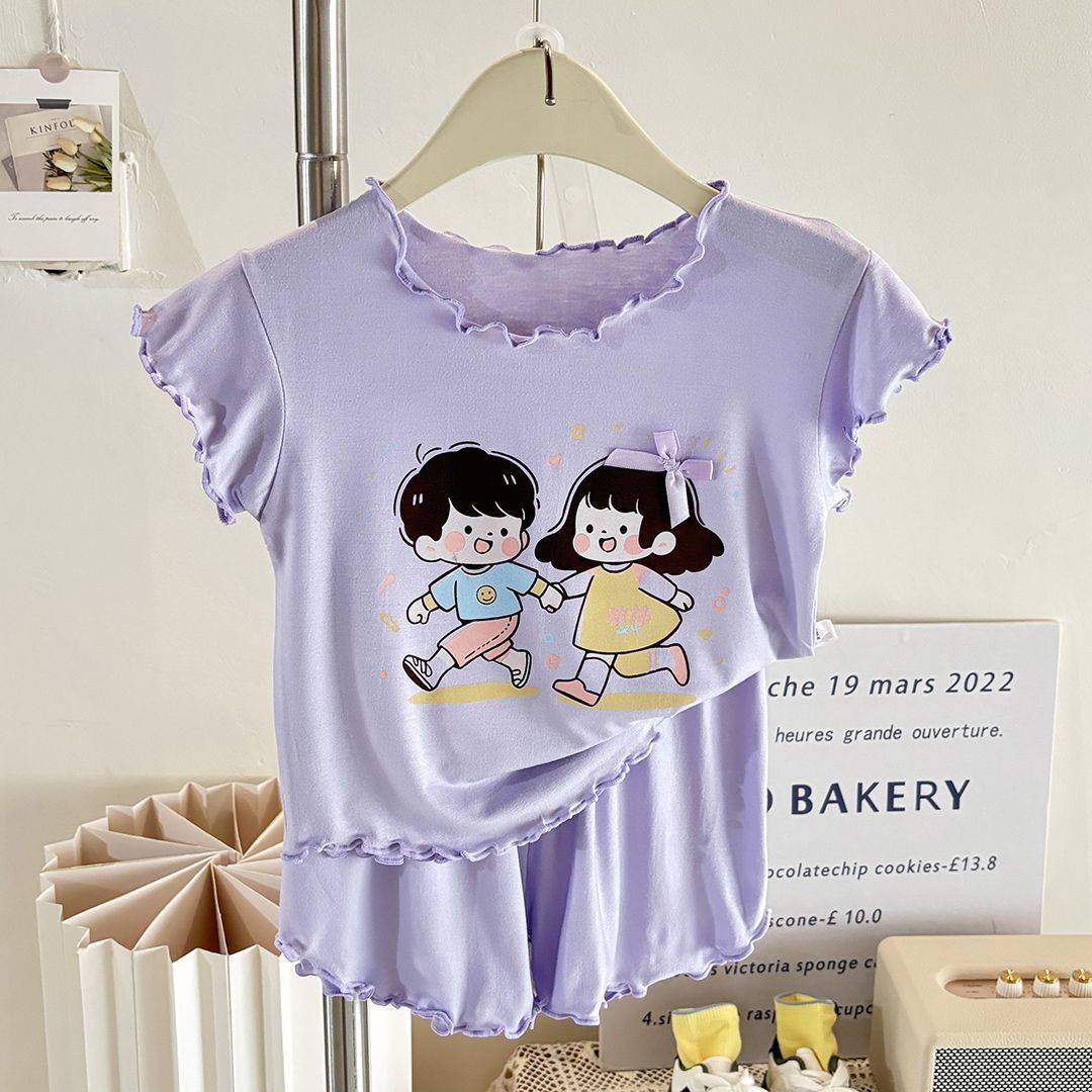 반팔 에어컨 가정복 투피스 반바지 만화 캐릭터 정장 아동 잠옷 소녀 여름 얇은 중대형