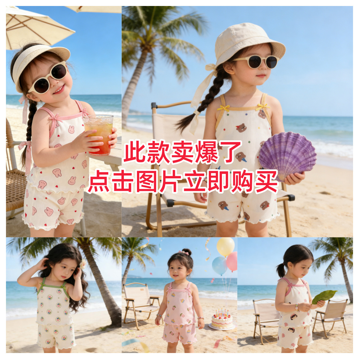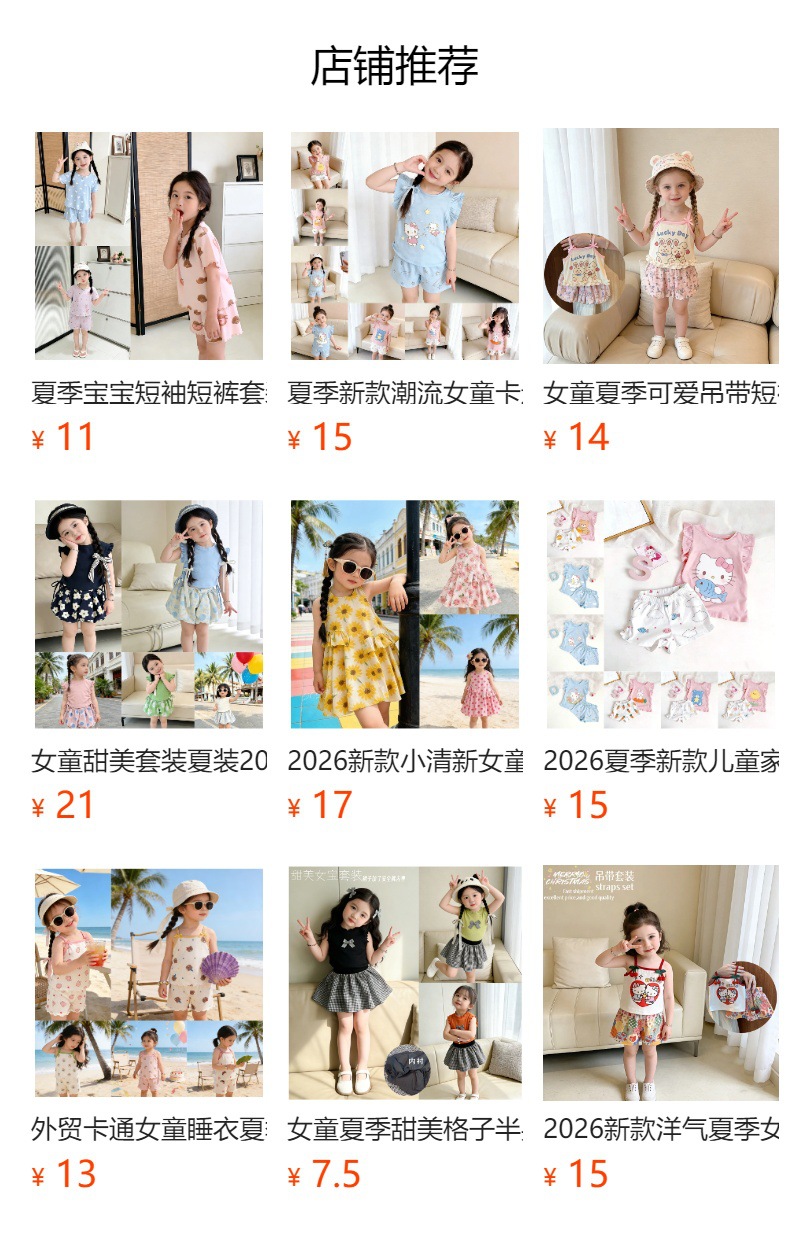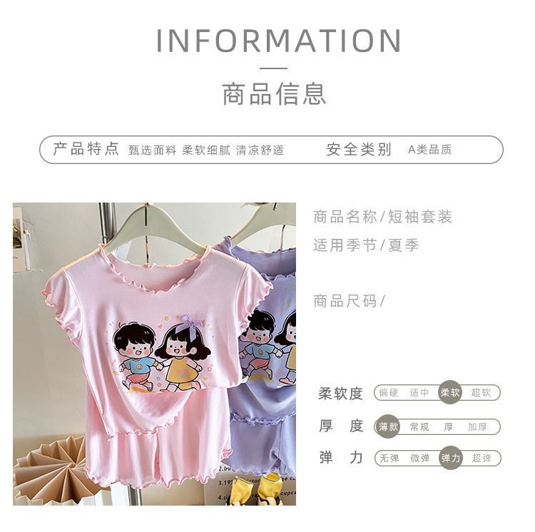 반팔 에어컨 가정복 투피스 반바지 만화 캐릭터 정장 아동 잠옷 소녀 여름 얇은 중대형스토어 가기