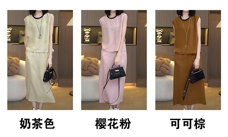 여성을위한 패션 정장 2025 새로운 여름 느슨한 슬림 민소매 셔츠 솔리드 컬러 슬릿 스커트 투피스 세트스토어 가기