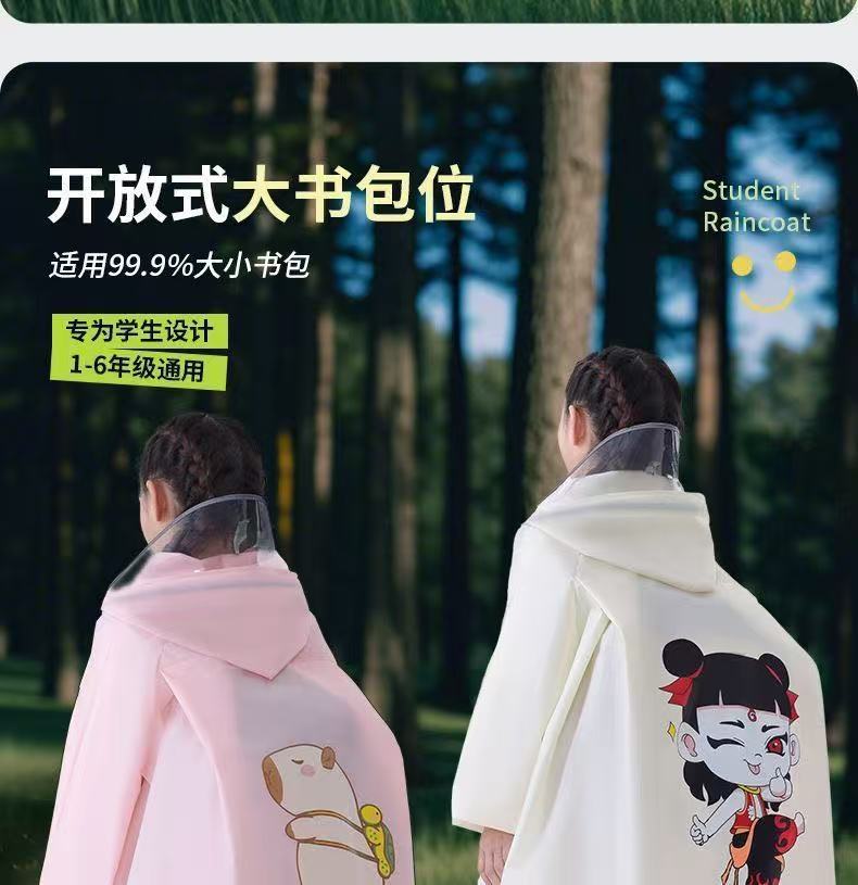 새로운 Nezha 어린이 비옷 전체 방수 남성과 여성 초등 및 중등 학교 학생 배낭 하이킹 및 사이클링 비옷 무료 배송