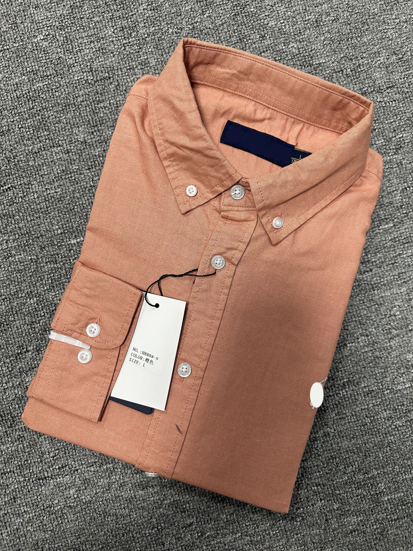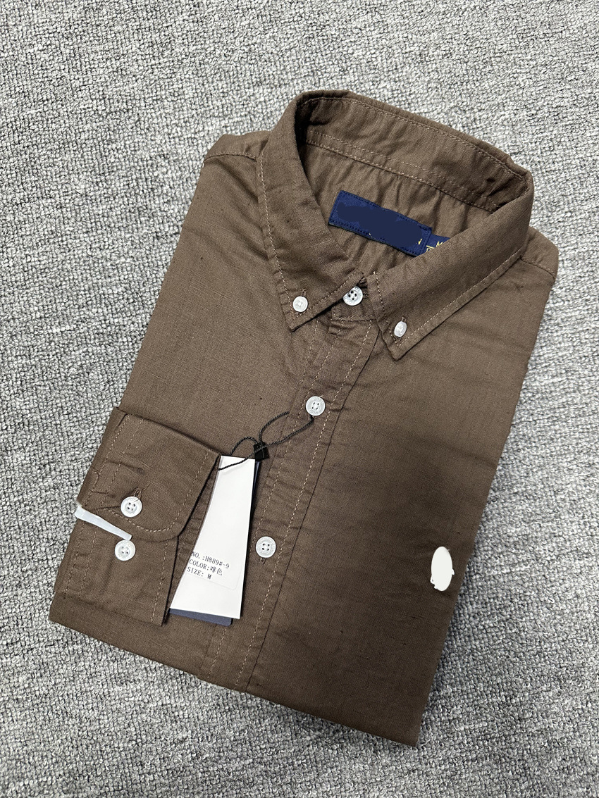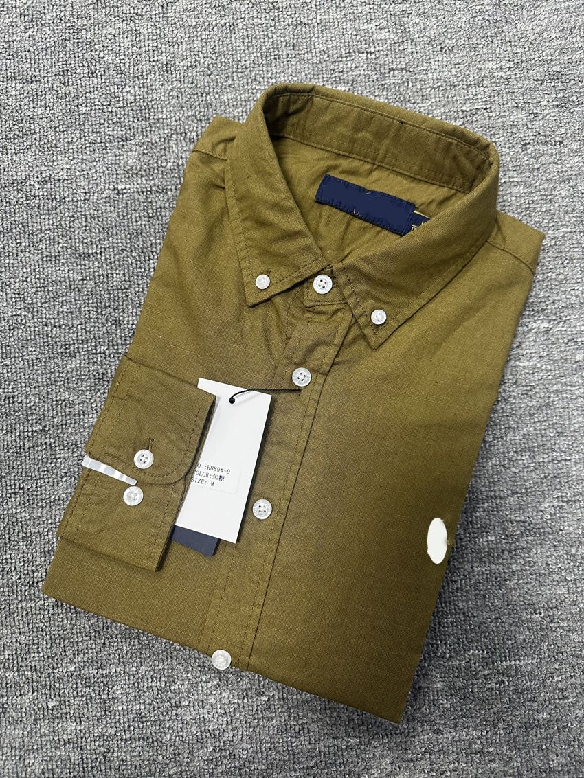 크로스보더 RL 봄/여름 남성 비즈니스 캐주얼 셔츠 면/린넨 소재 얇은 긴팔 셔츠 폴로 말 자수 로고스토어 가기