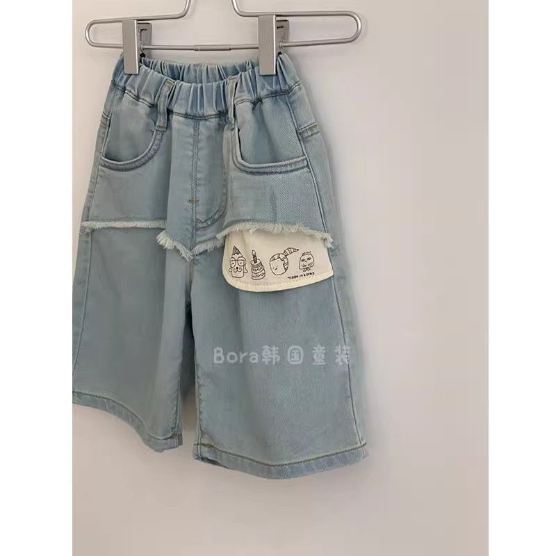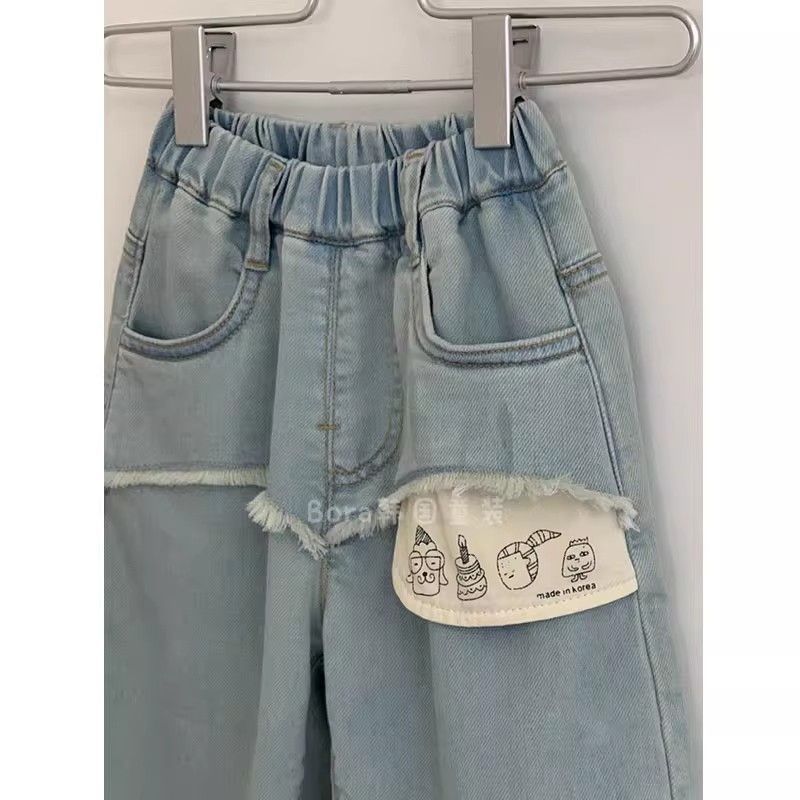 2025 봄 신작 아동 데님 스트레이트 팬츠, 남녀 아기를 위한 멋지고 세련된 한국 루즈 청바지스토어 가기