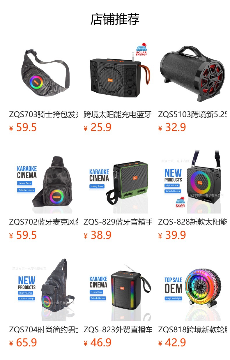 ZQS-779新款氛围灯蓝牙音箱便捷户外手提车载低音炮TWS炫彩小音箱