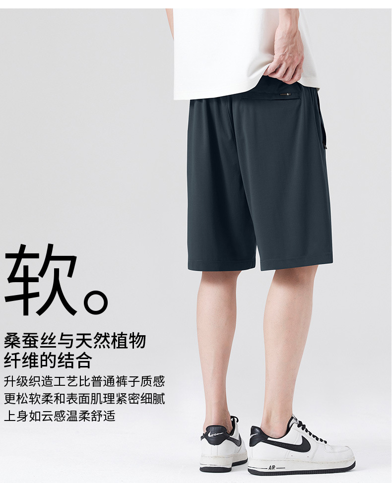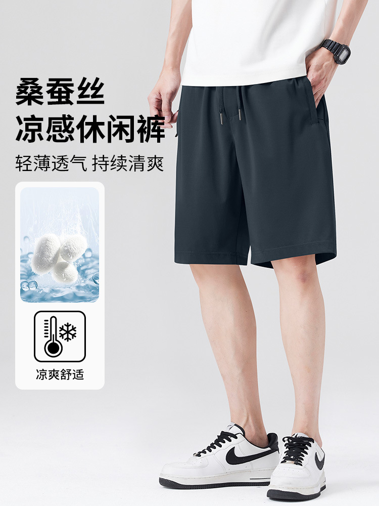 [고급 멀버리 실크] 남성용 캐주얼 반바지 여름 아이스 실크 얇은 2025 새로운 스타일 속건성 루즈한 남성용 5부 바지스토어 가기