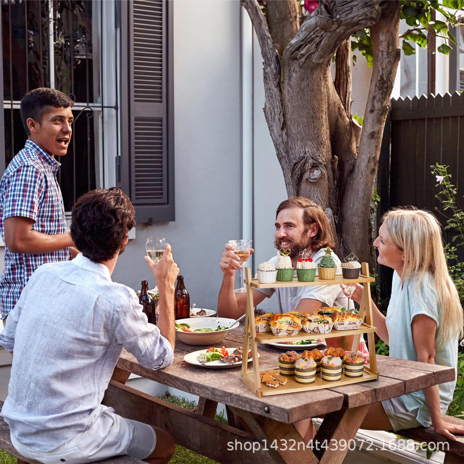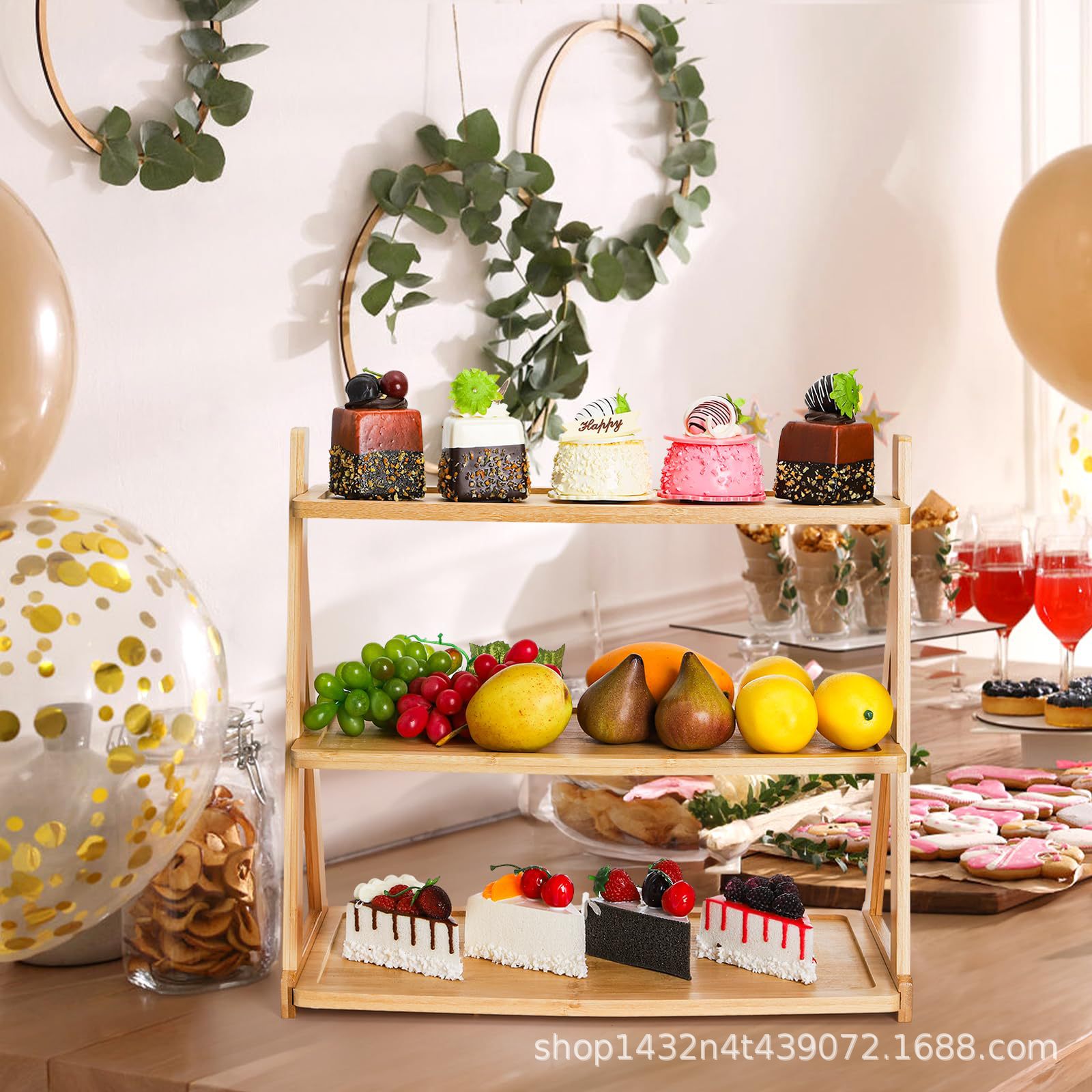 단단한 나무 3층 대나무 트레이 탁상용 테이블은 목재 케이크 접시, 목재 탁상용 과일 접시, 제조업체에서 직접 공급합니다.스토어 가기
