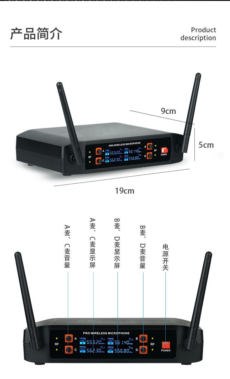 국경 간 무선 마이크 1-4 UHF 노래 라이브 사운드 카드 야외 휴대용 마이크 무대 대외 무역 마이크
