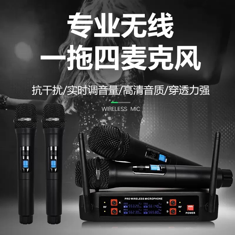 국경 간 무선 마이크 1-4 UHF 노래 라이브 사운드 카드 야외 휴대용 마이크 무대 대외 무역 마이크스토어 가기