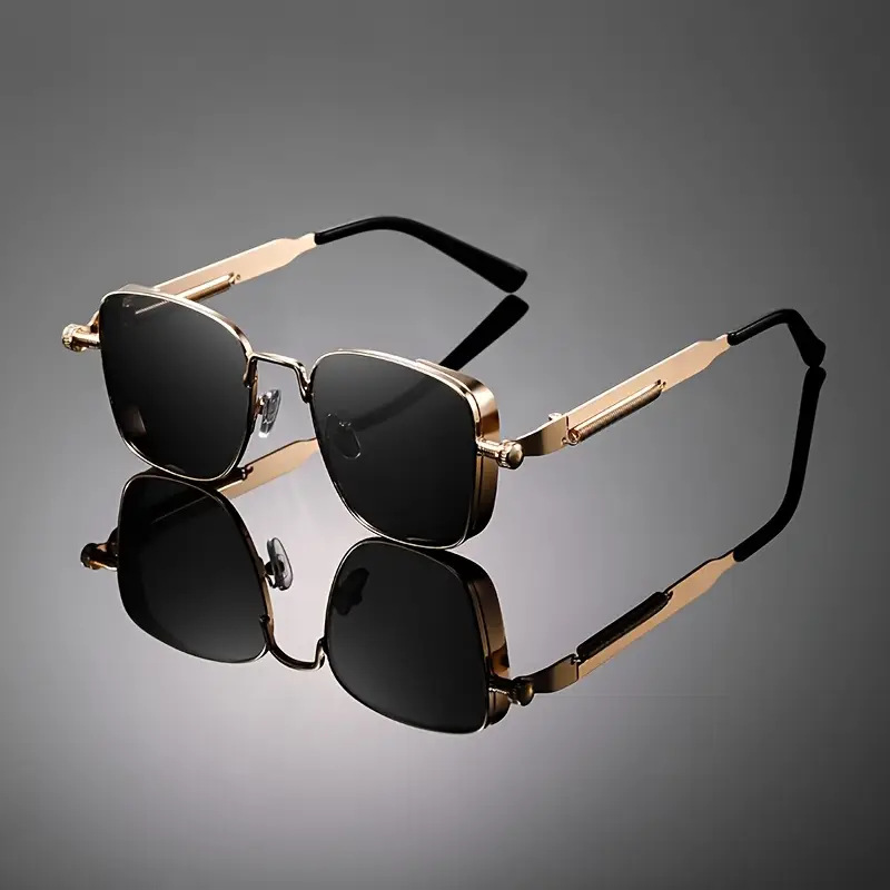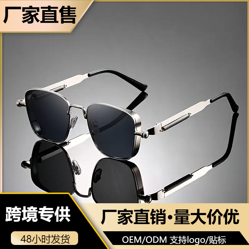 새로운 크로스 보더 레트로 스퀘어 프레임 스프링 레그 선글라스 안티 UV 실버 선글라스 남자 펑크 스타일 선글라스