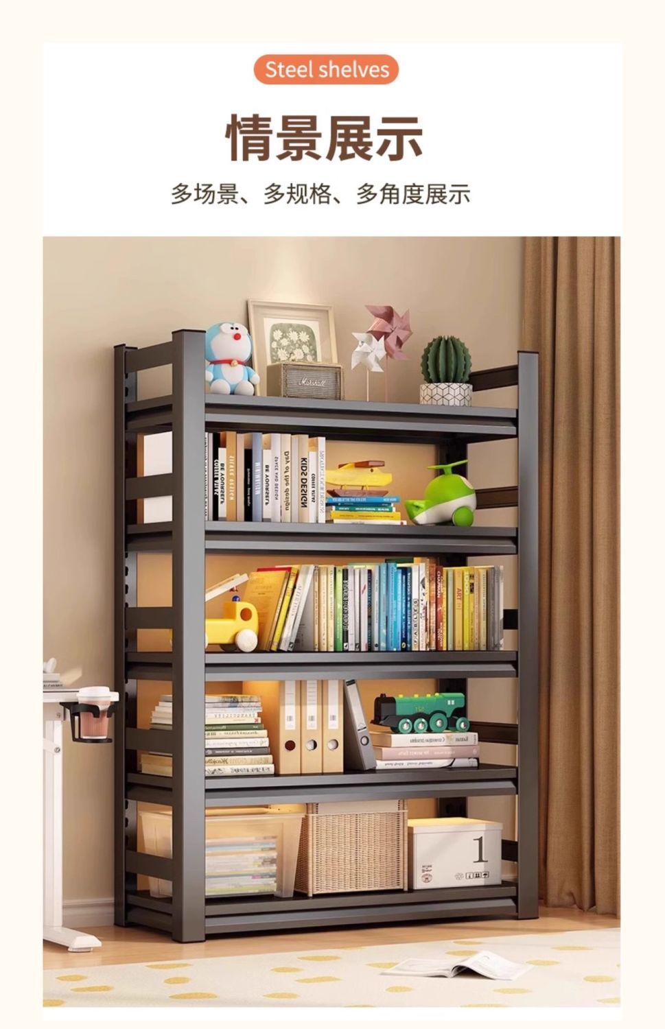 맞춤형 가정용 책장, 철제 가정용 선반, 두꺼운 강철 책장, 탈착식 및 조절 가능한 책장, 보관 선반