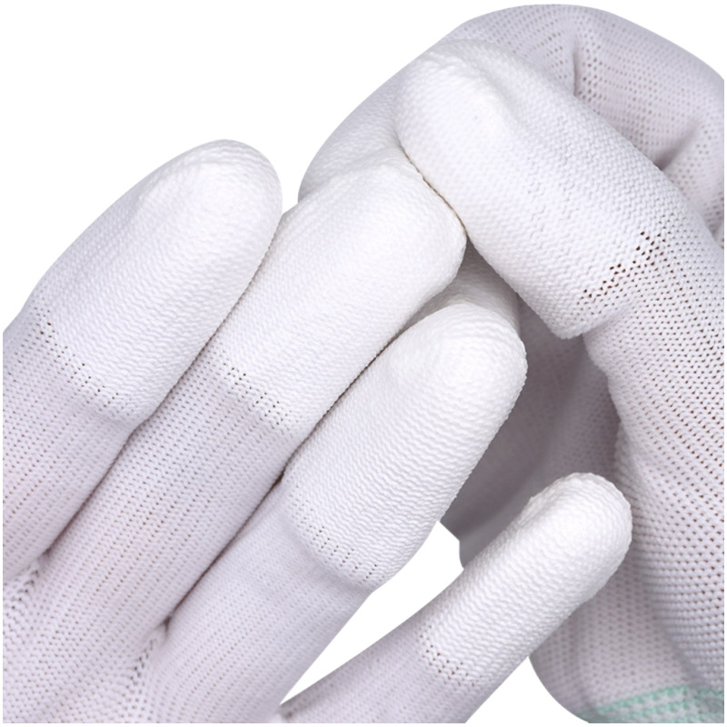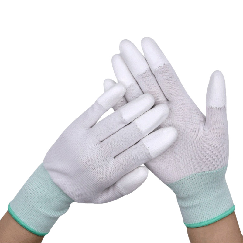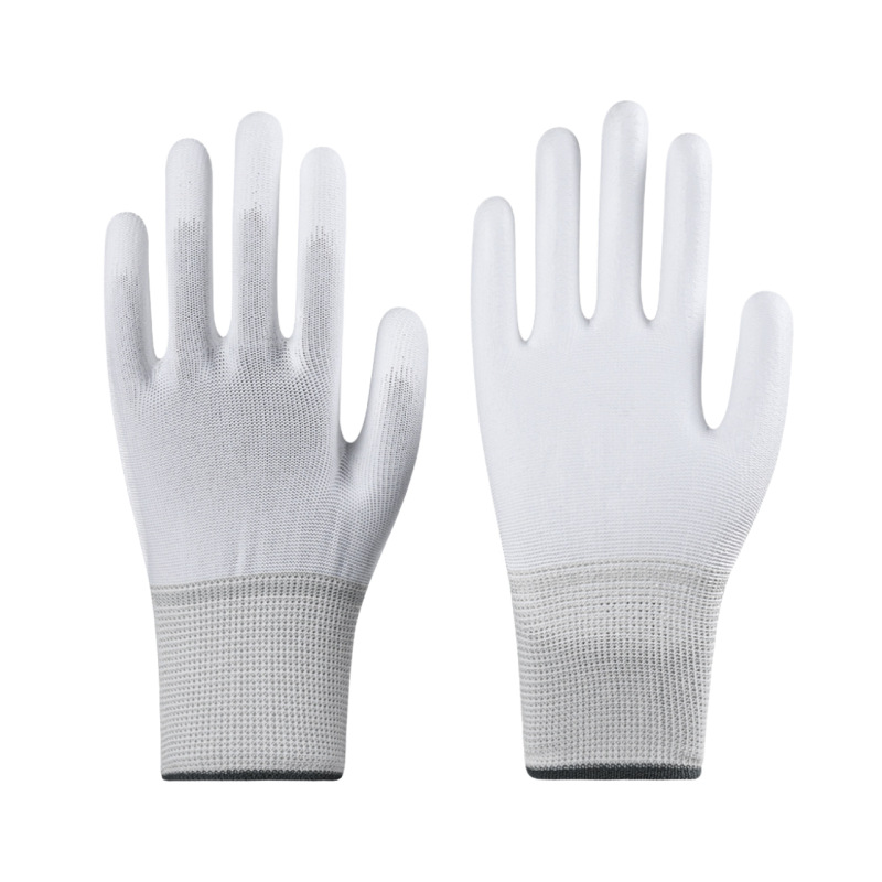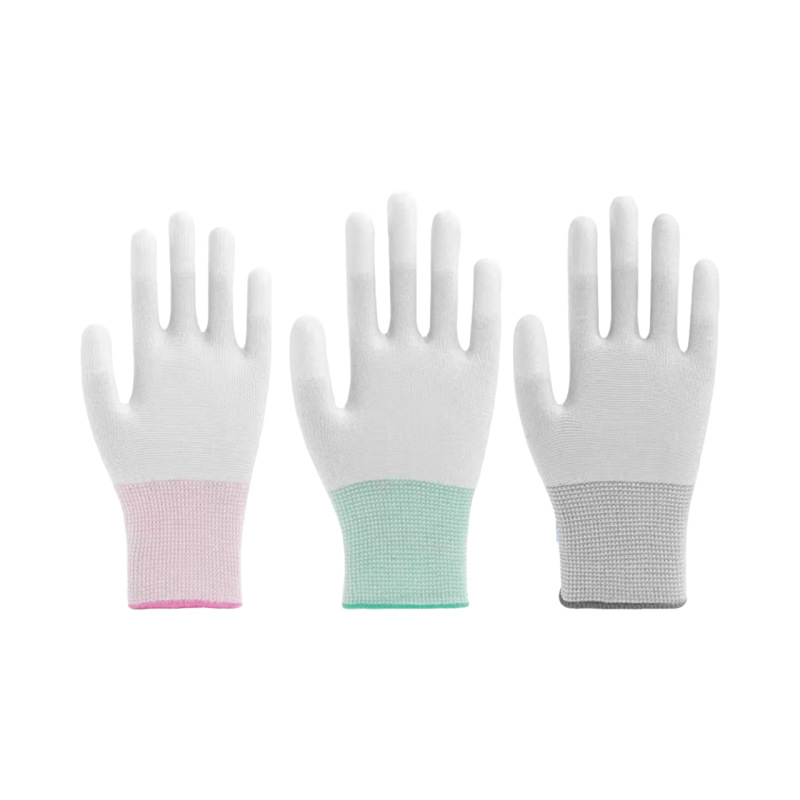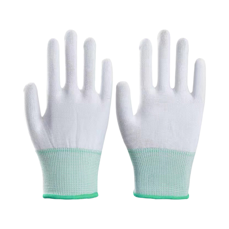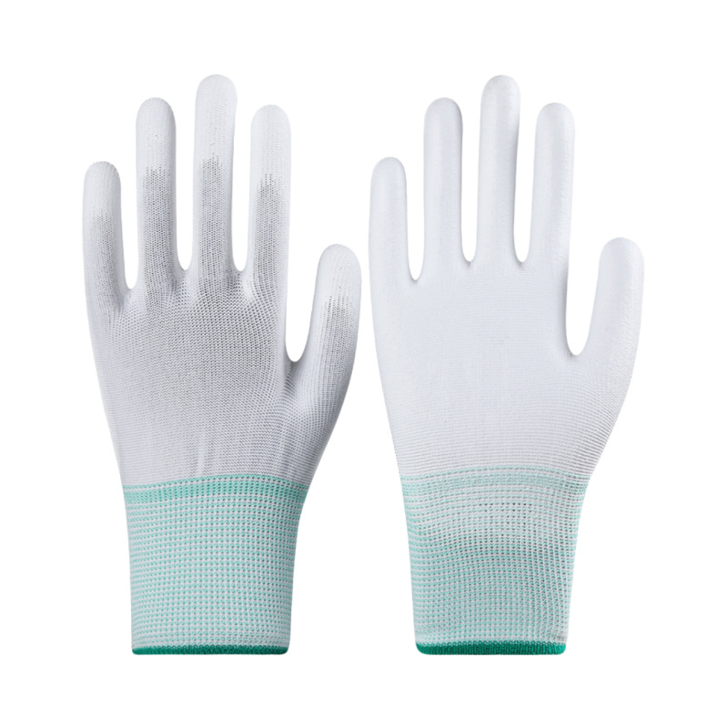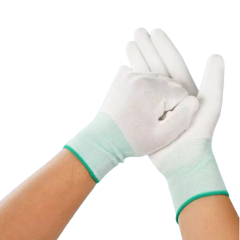 맞춤형 13바늘 나일론 탄소 섬유 PU 침지 손가락 및 손바닥 고무 장갑 정전기 방지 손가락 및 손바닥 고무 노동 보호 장갑
