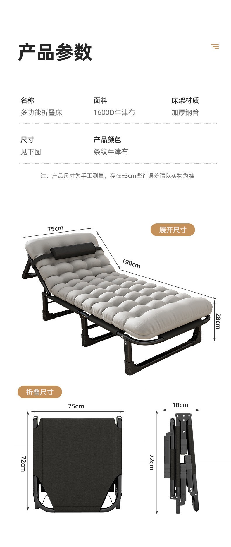 2025년 새로운 고급스럽고 가벼운 접이식 침대, 두꺼워진 새로운 이중 목적 안락 의자, 사무실 점심 시간 확장형 게으른 침대